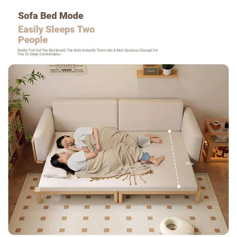 Free Shipping in Hong Kong: Multi-Functional Solid Wood Sofa Bed - Space-Saving, Foldable Design for Small Apartments - Stylish and Versatile Pull-Out Sofa for Your Living Room