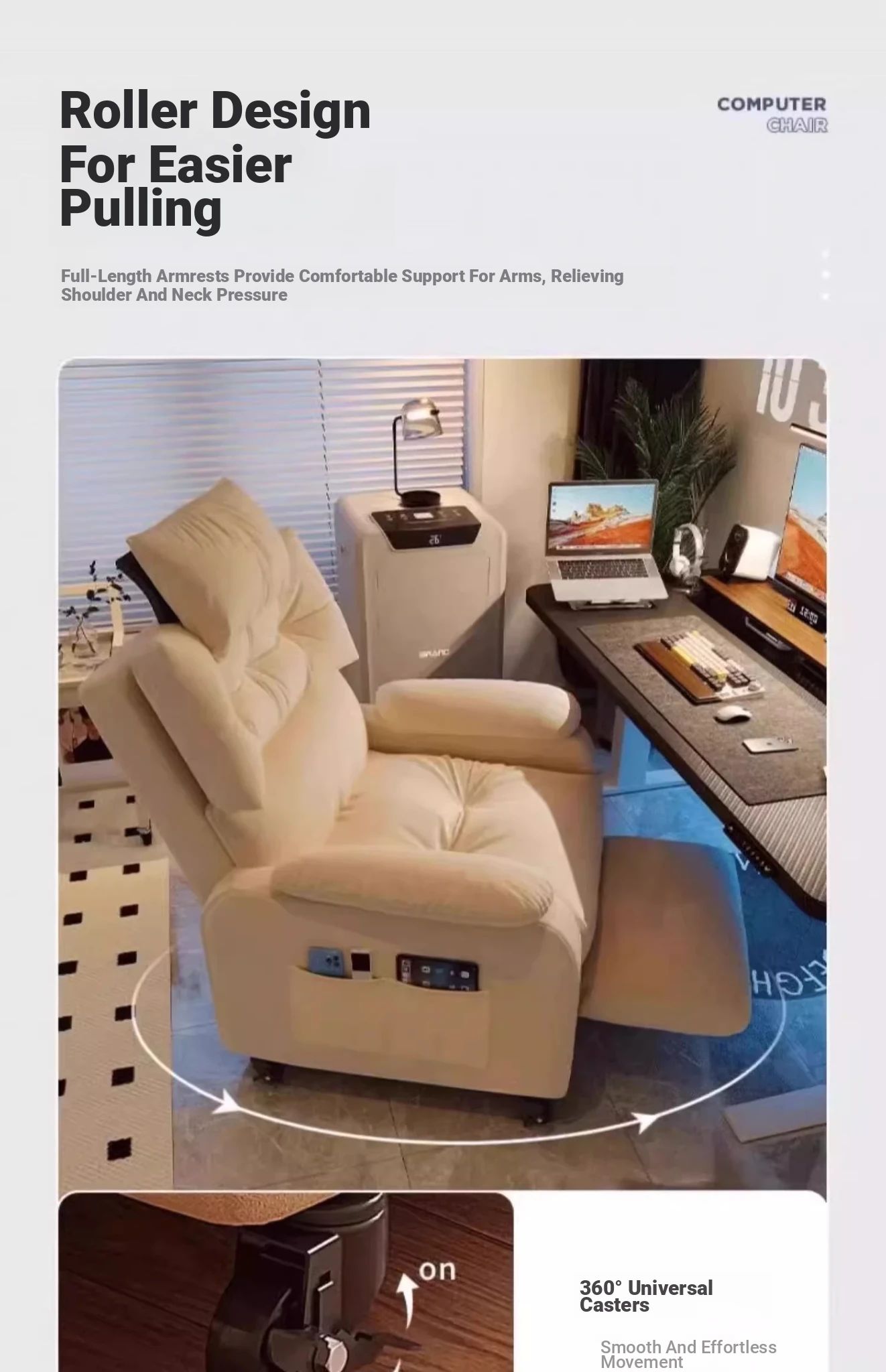 ⭐Straight down 20 yuan⭐Increased version [pulley] Pearl White + headrest + pedal