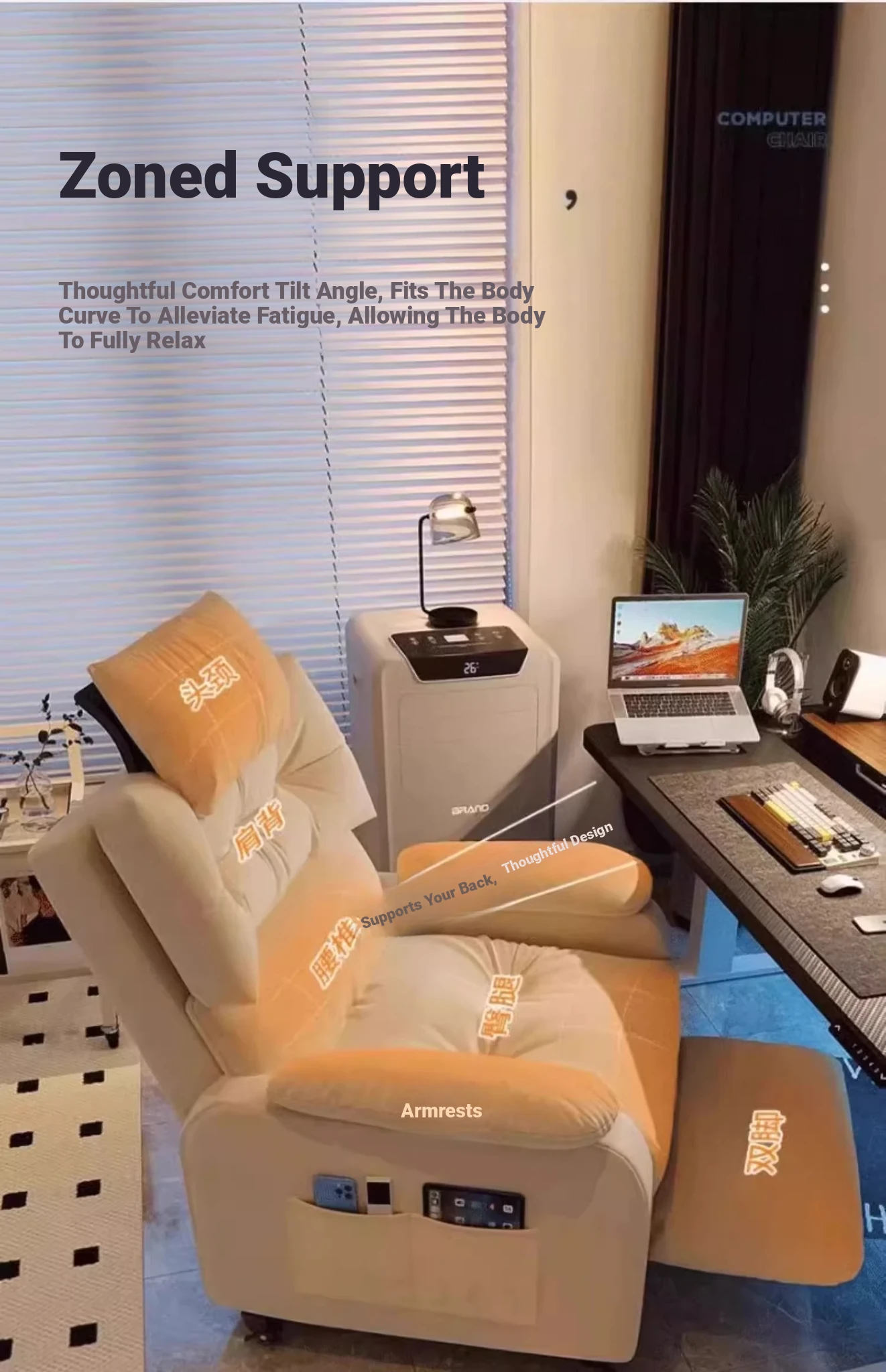 The enlarged version [fixed leg] Chixia Orange + headrest + pedal (delivered to your home)