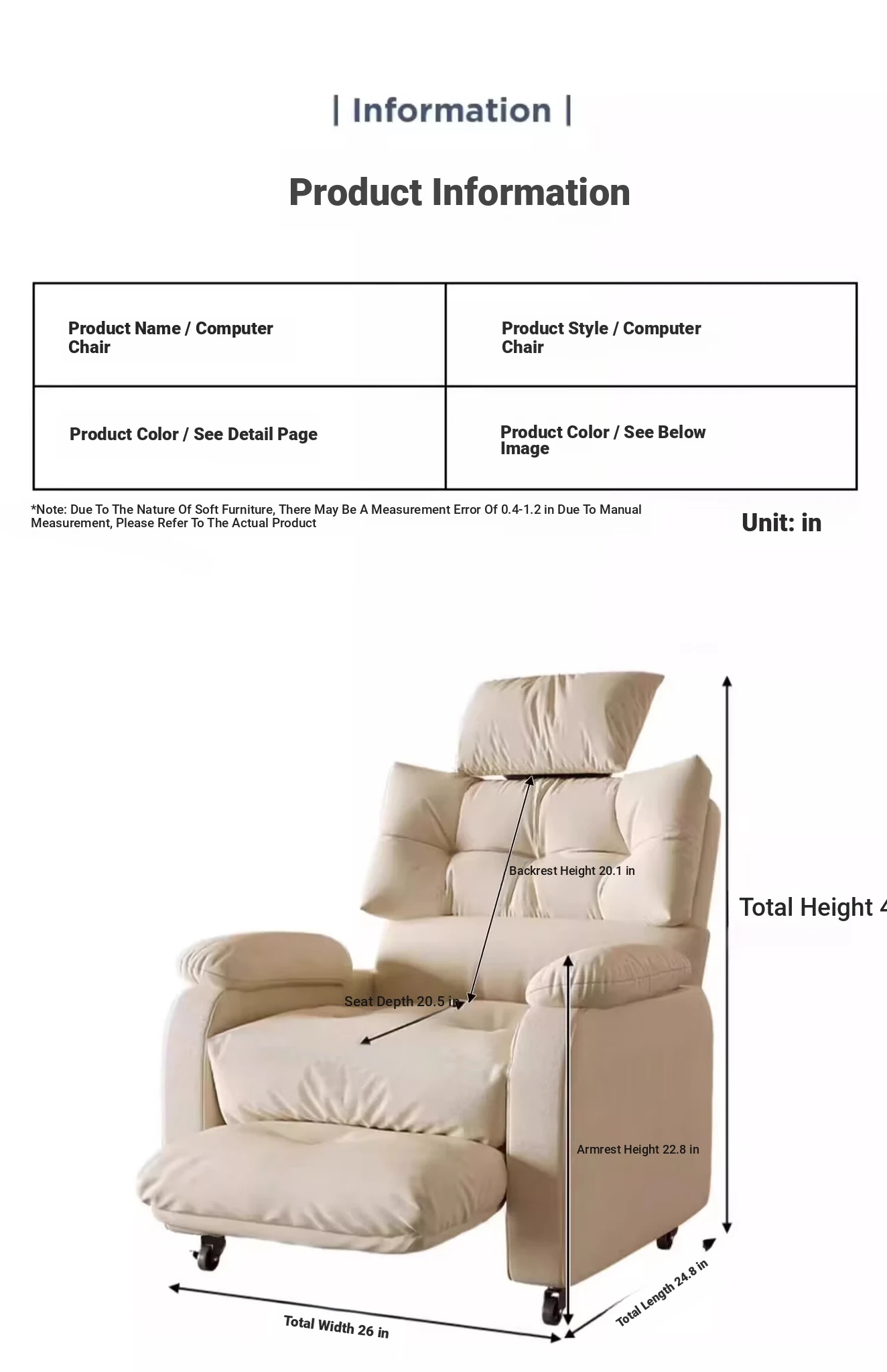 Plus version [fixed leg] Pearl White + headrest (home delivery)