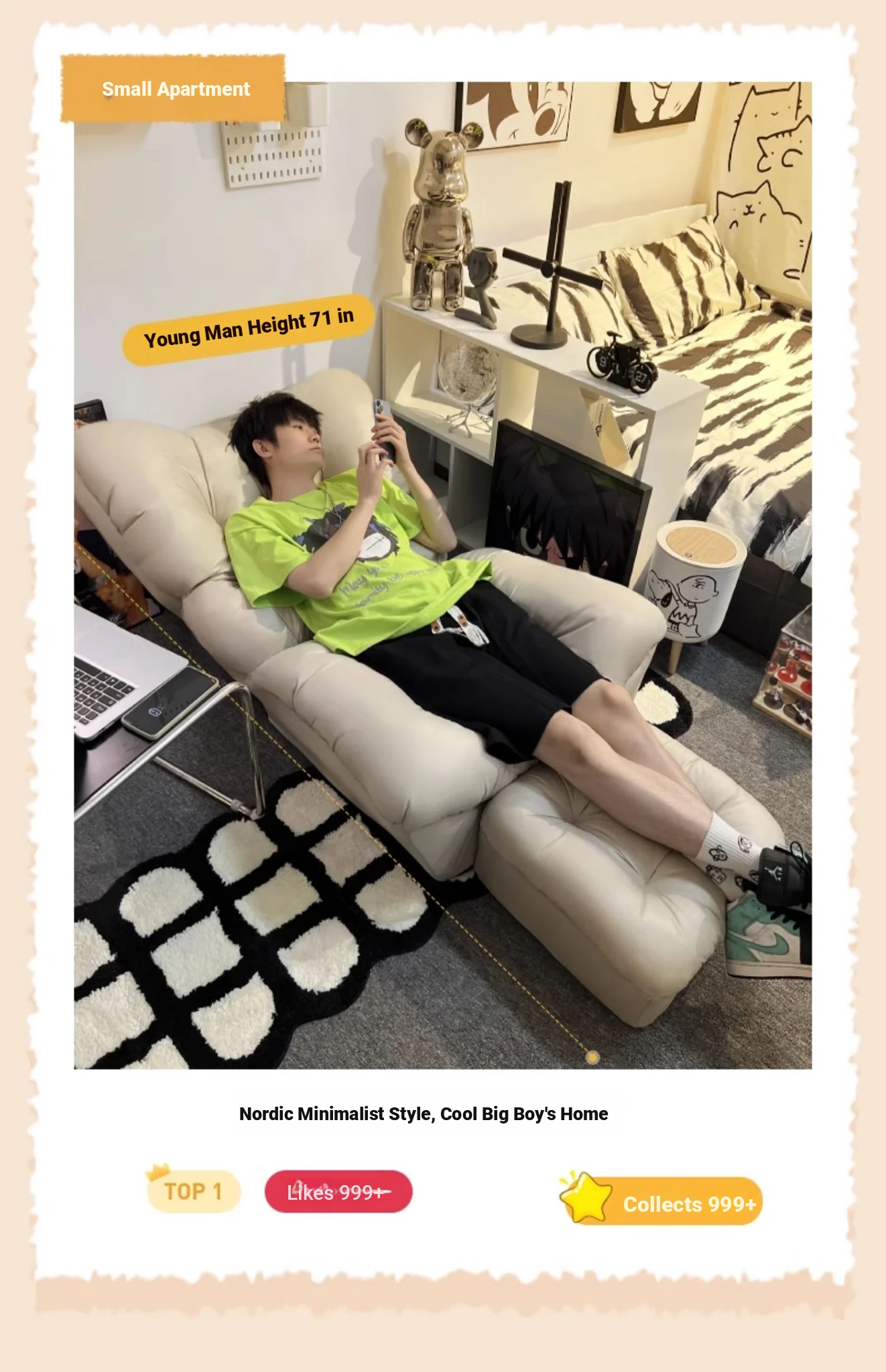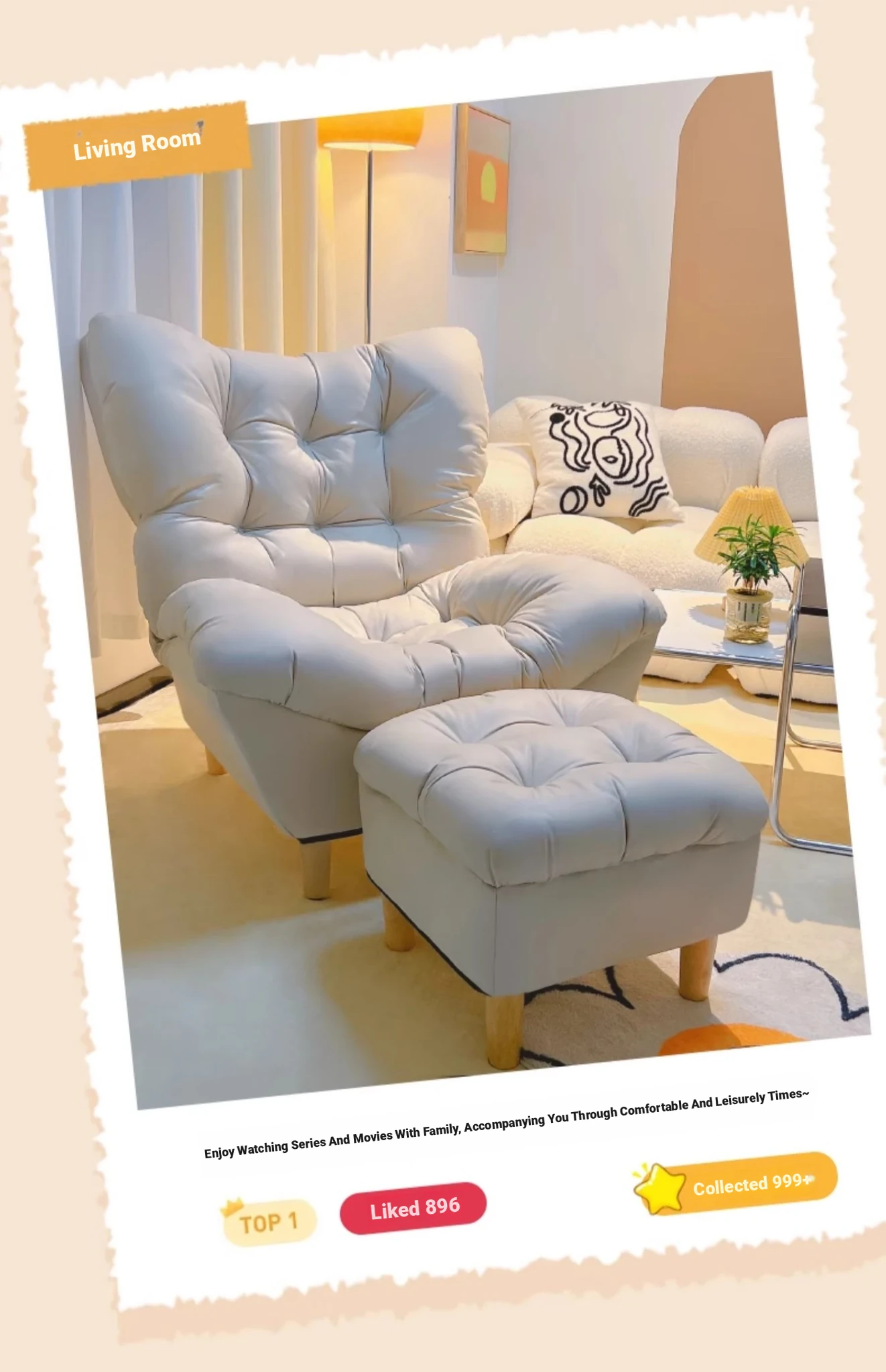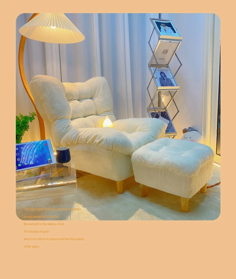 Sofa chair [milk white + pedal] Comfortable Cashmere