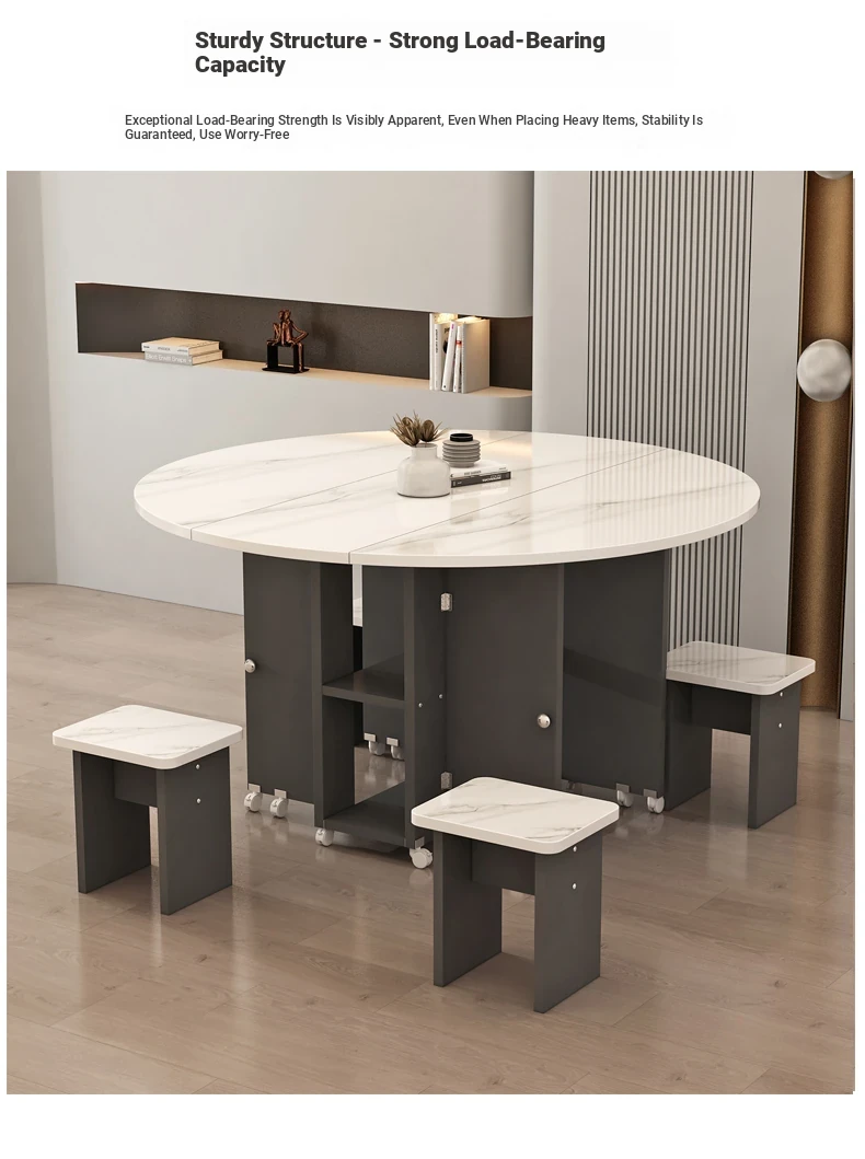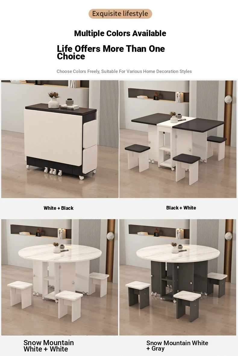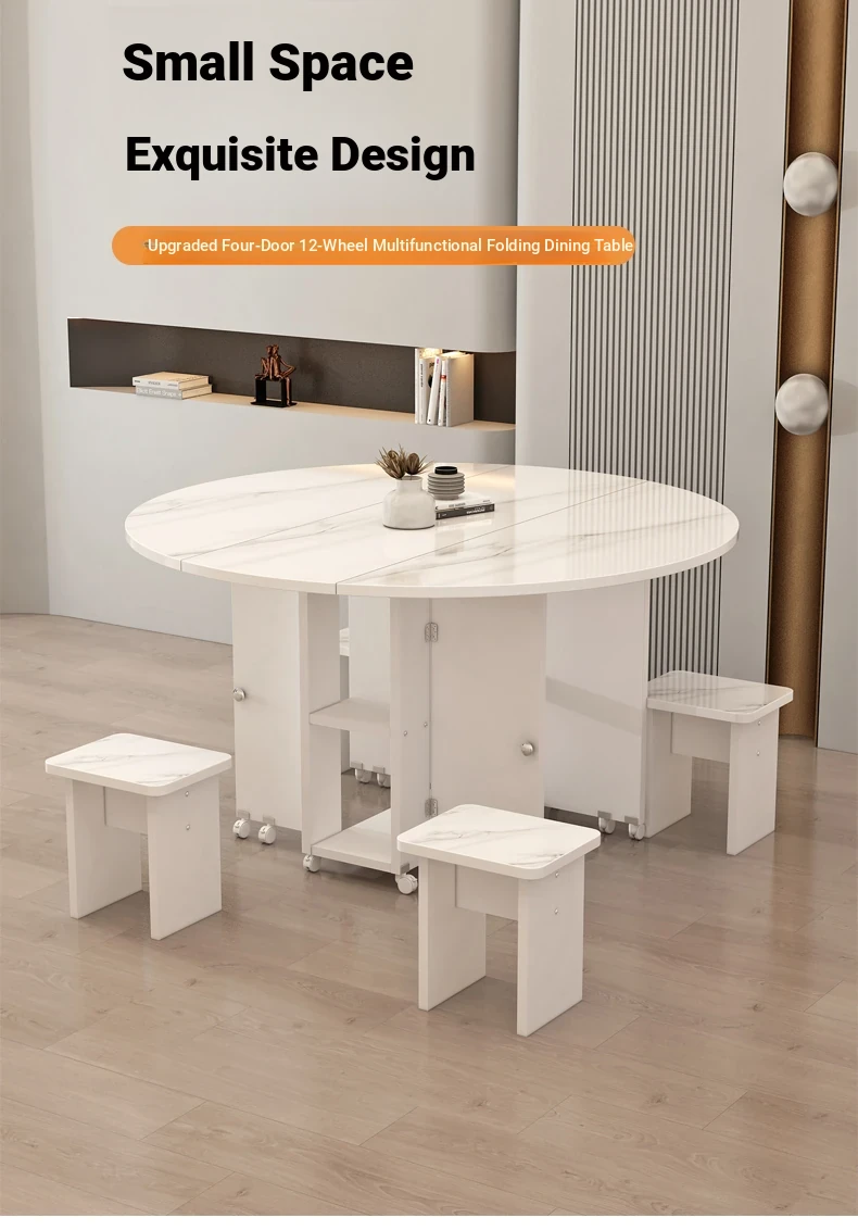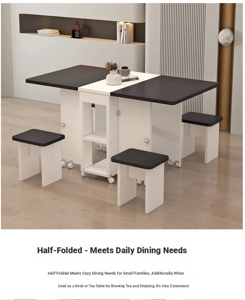 [Free Shipping to Hong Kong] Versatile Folding Dining Table and Chair Set - Space-Saving, Expandable Rectangular & Round Designs for Small Homes