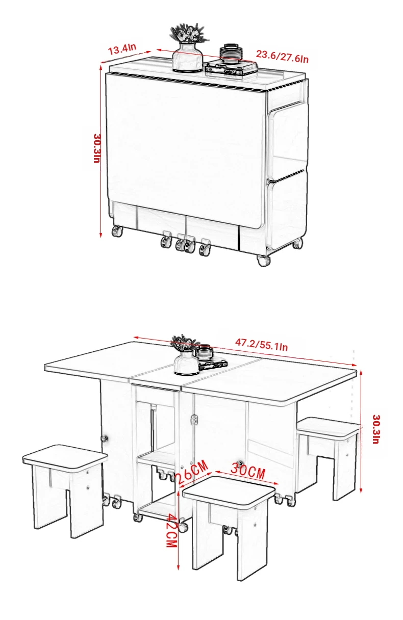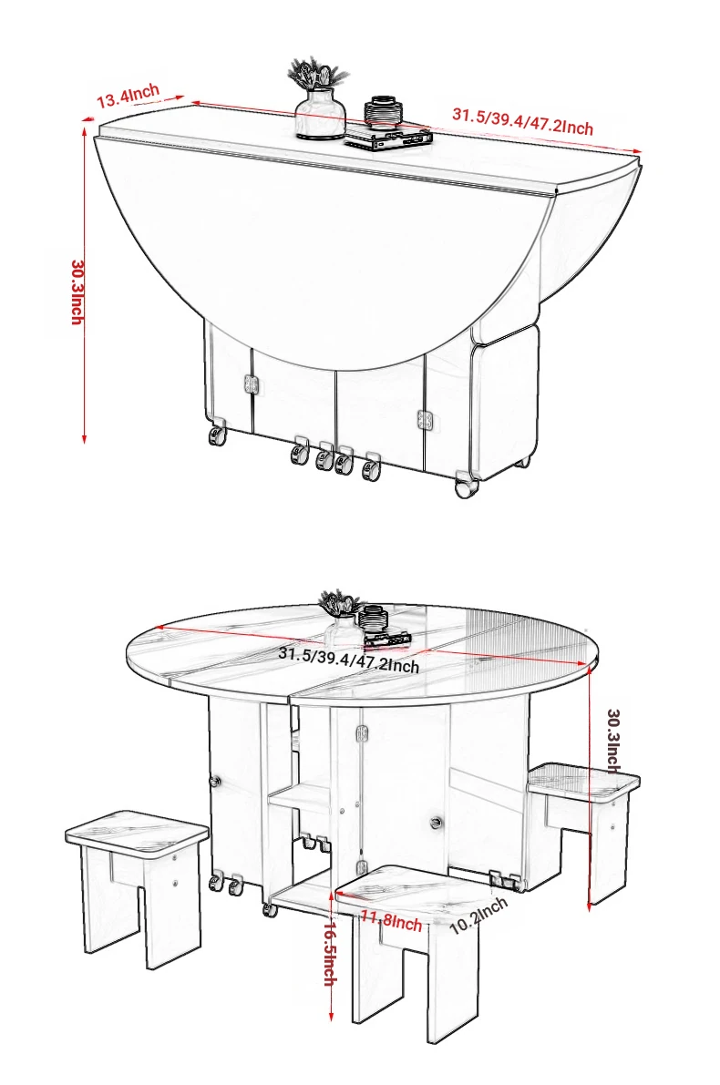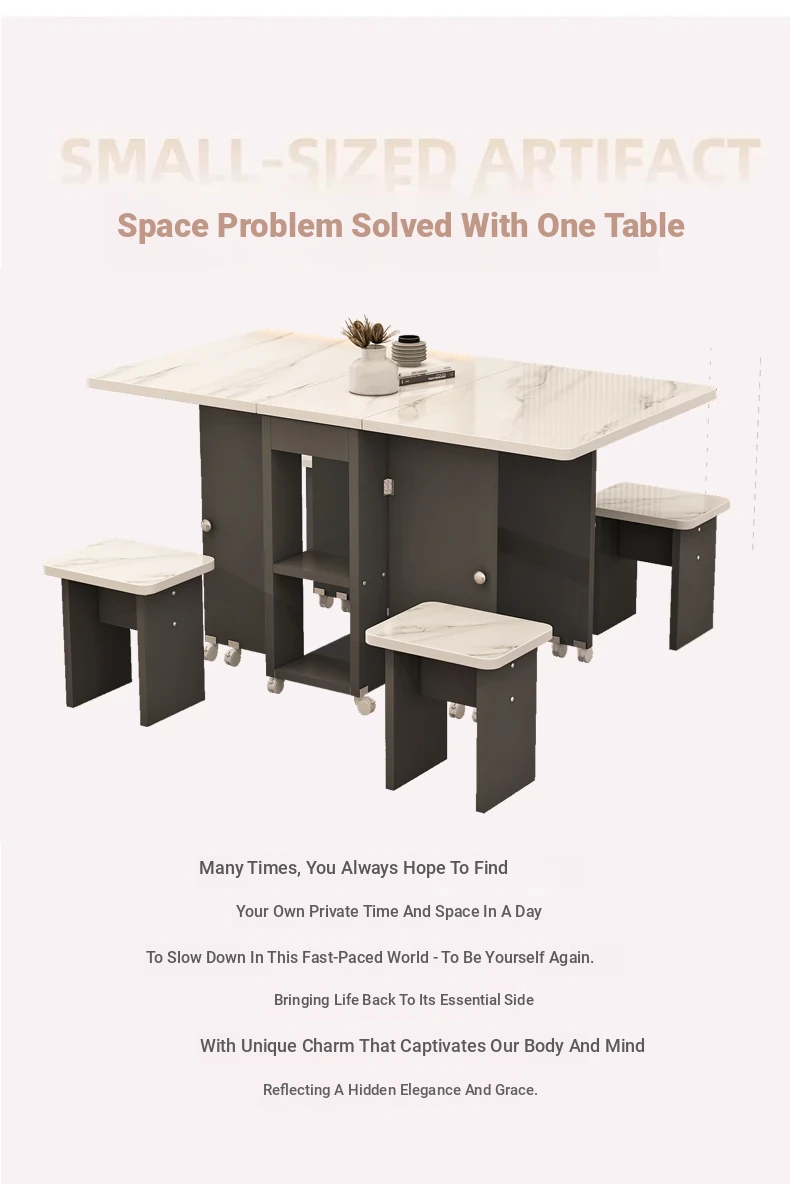 [Free Shipping to Hong Kong] Versatile Folding Dining Table and Chair Set - Space-Saving, Expandable Rectangular & Round Designs for Small Homes