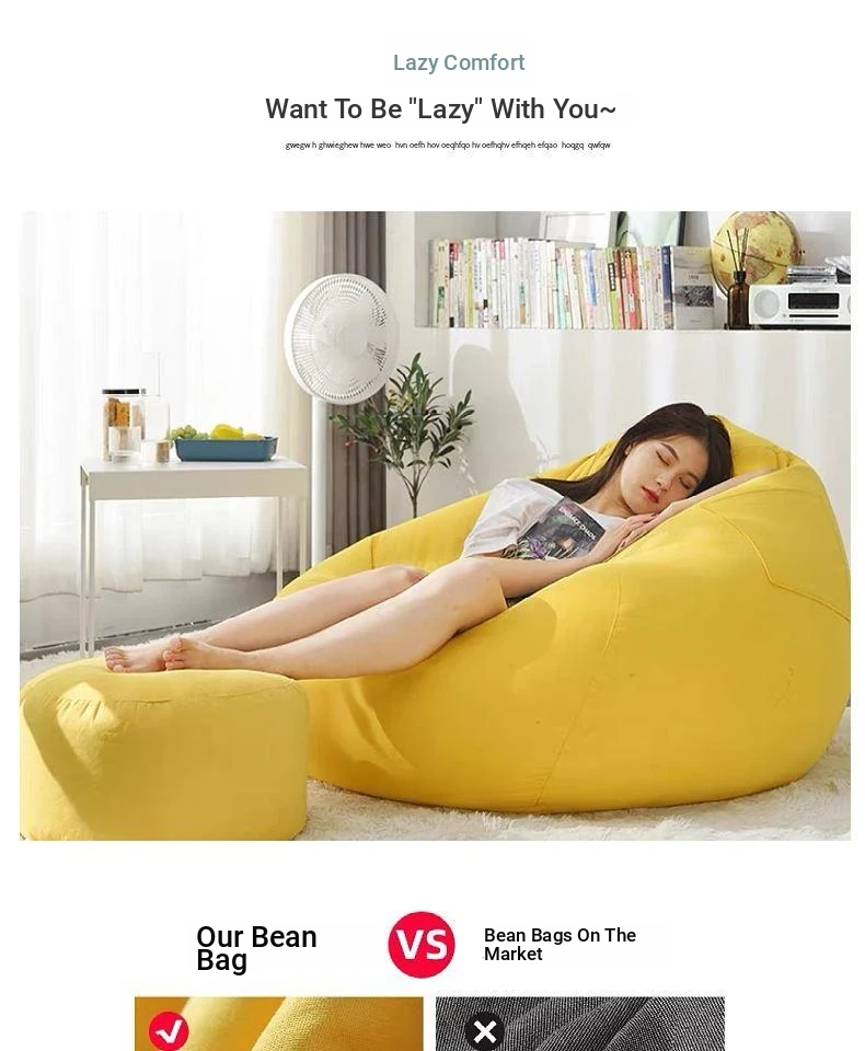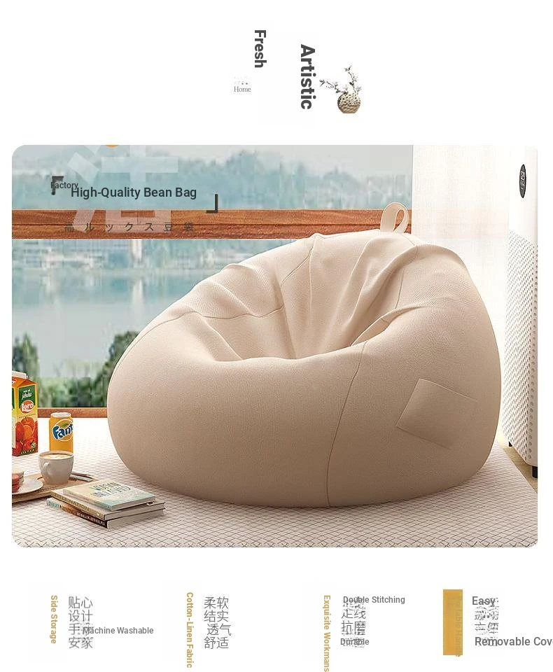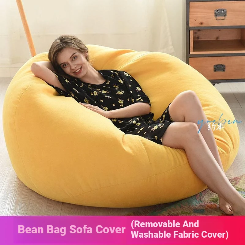 Giant Cotton Bean Bag Cover - Removable and Washable, Round Shape for One Person - Versatile Lounge Chair for Relaxing and Sleeping