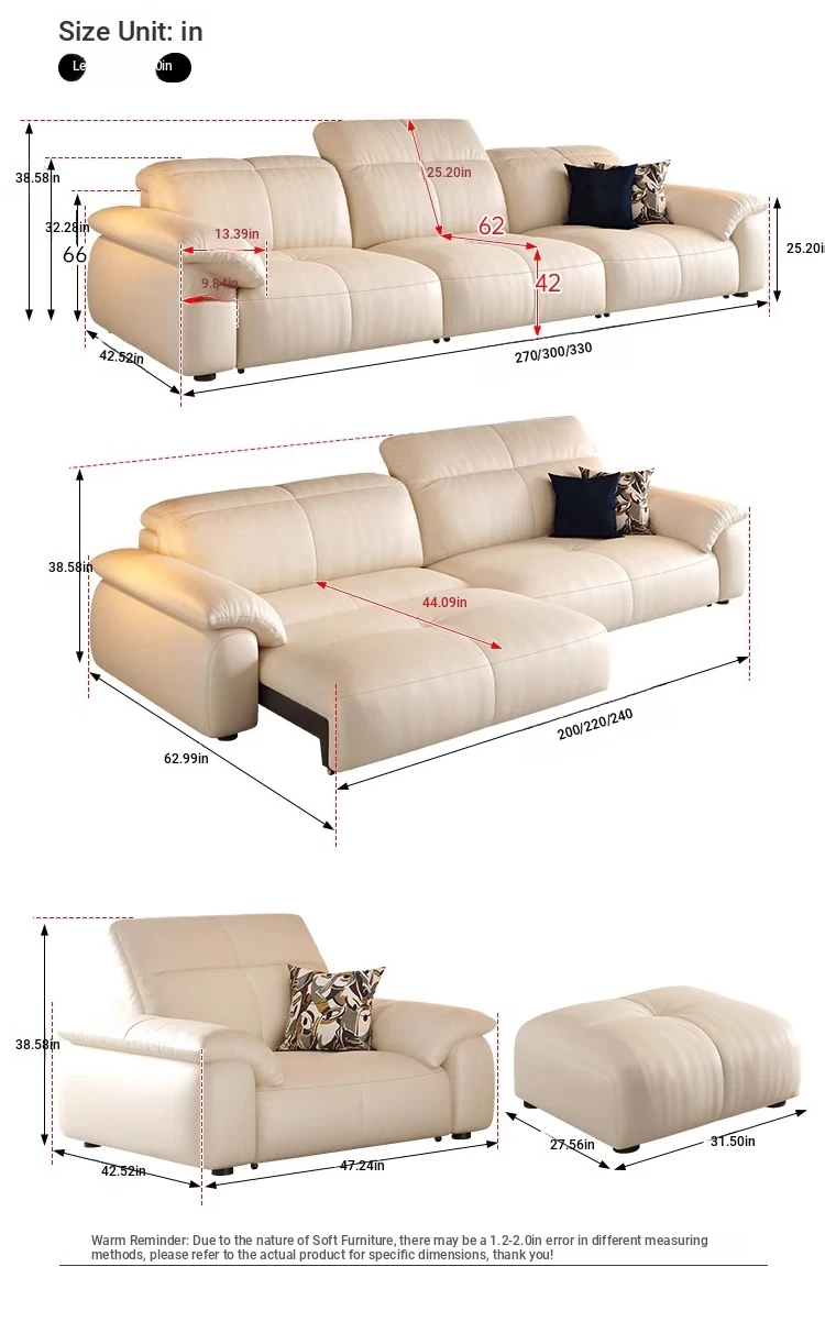 Thickened top layer cowhide + ceiling grade pine frame [lifetime warranty of frame motor]]