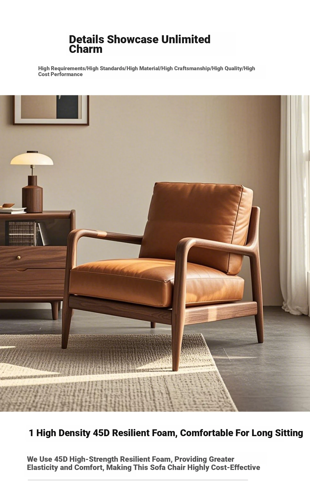 High-End Modern Walnut Wood Sofa Chair - Designer Style, Solid Wood, Minimalist Design for Home Relaxation
