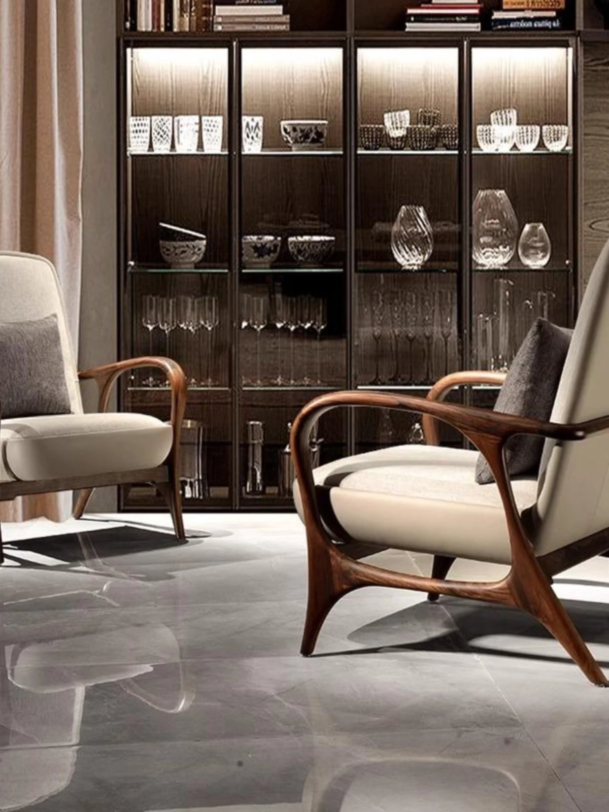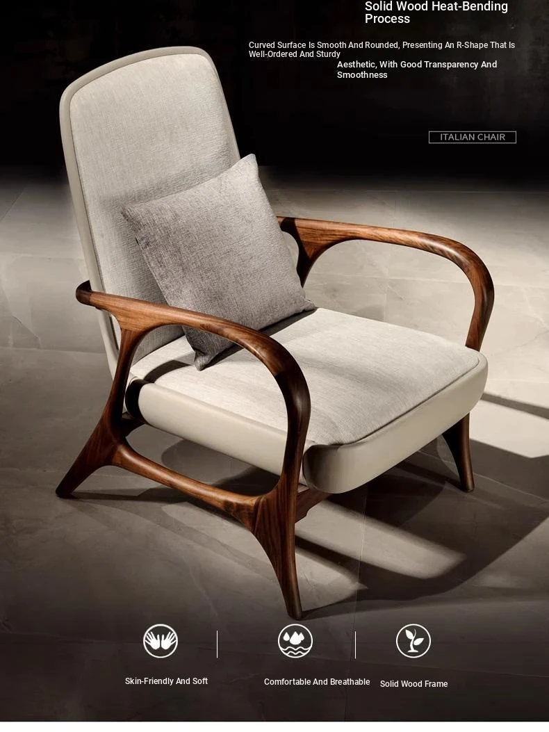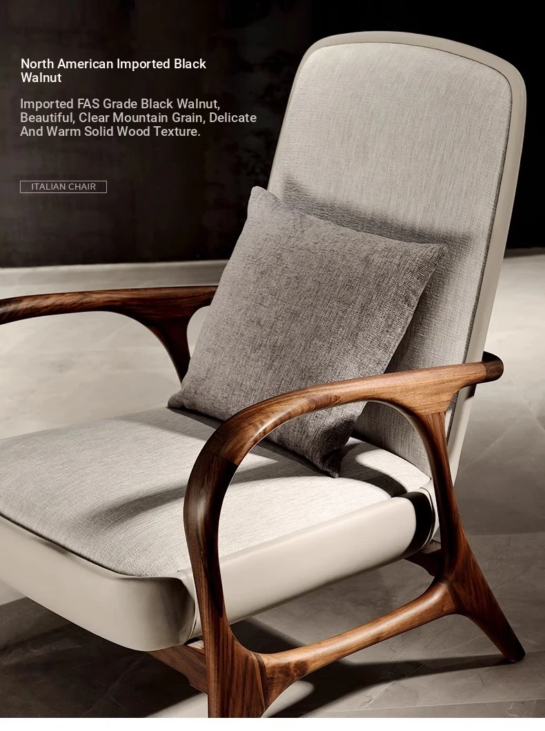 Huangjia 2025 New Style Neo-Chinese Walnut Wood Armchair - Premium Single Sofa Chair for Living Room, Crafted from North American Black Walnut and Genuine Leather for Ultimate Comfort and Elegance.