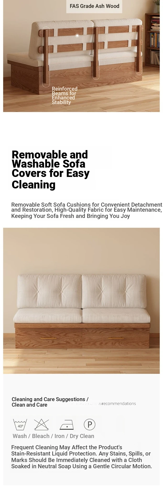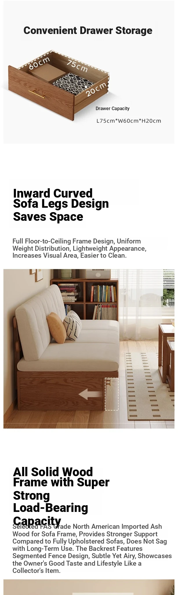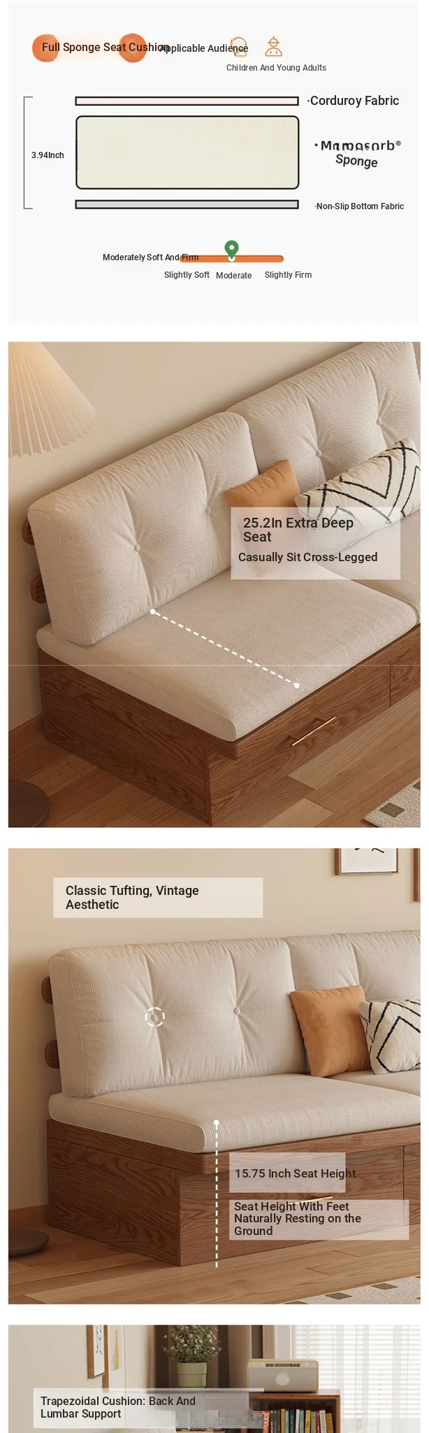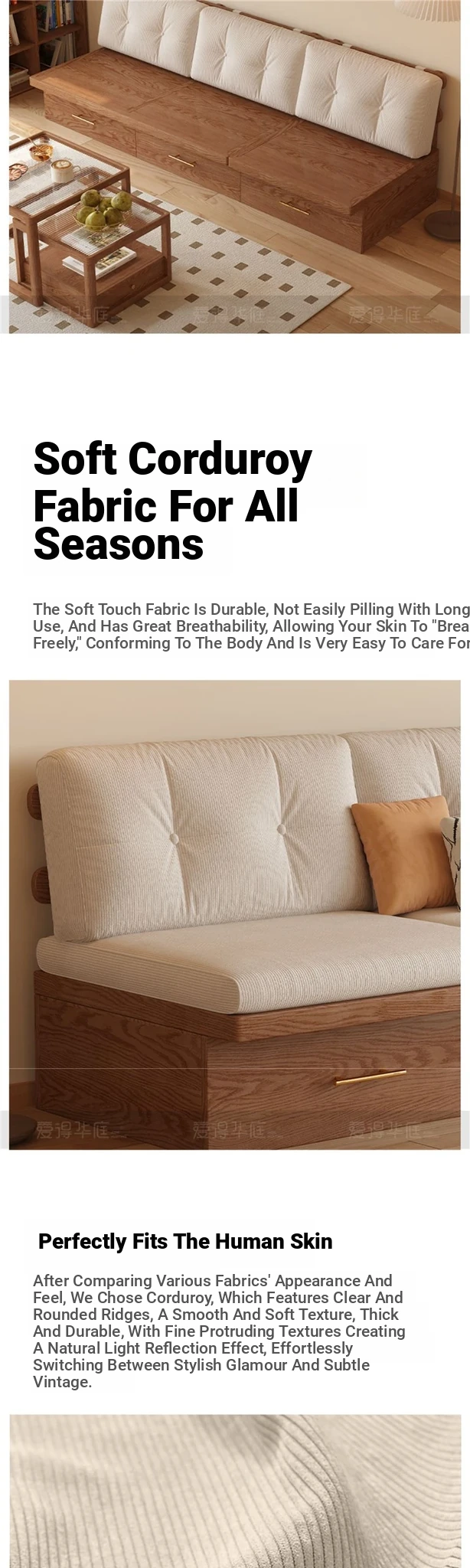 Japanese Style Solid Wood Sofa - Versatile for All Seasons, Perfect for Small Living Rooms, Drawer Storage, Armless Design, Straight Platform Sofa