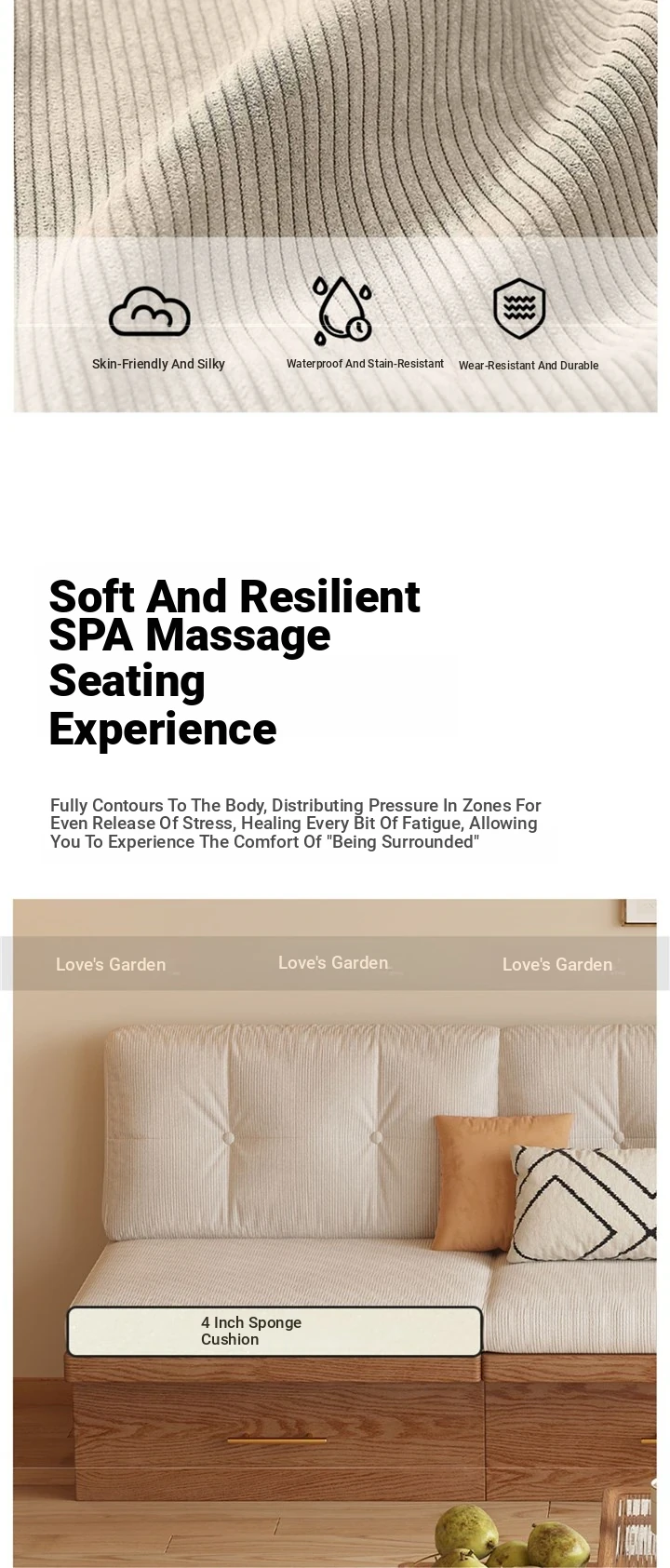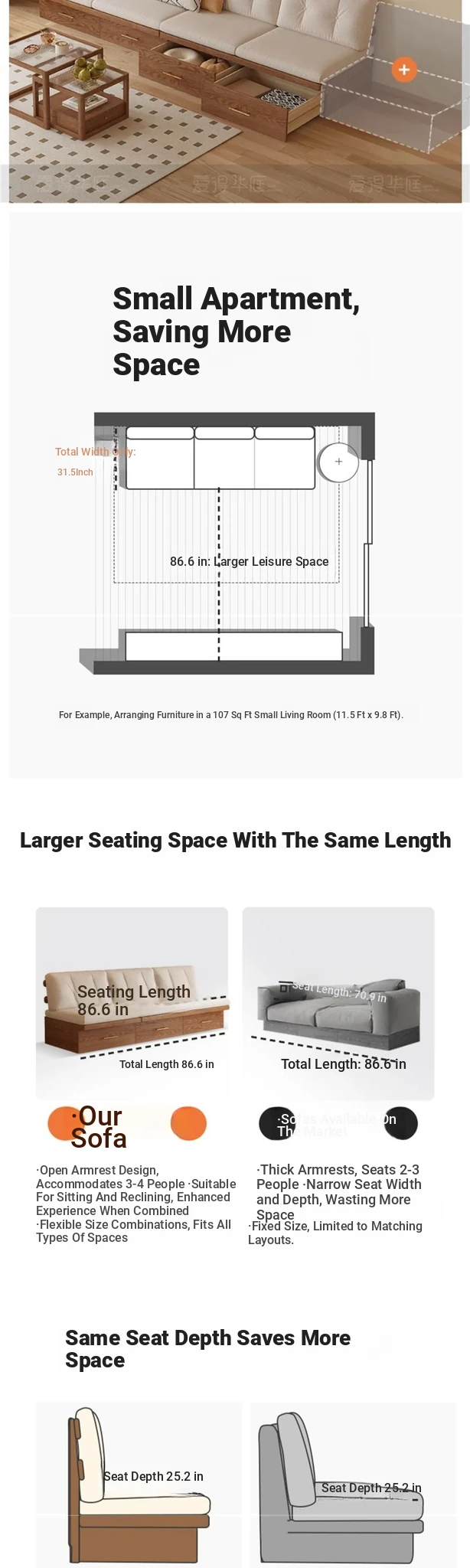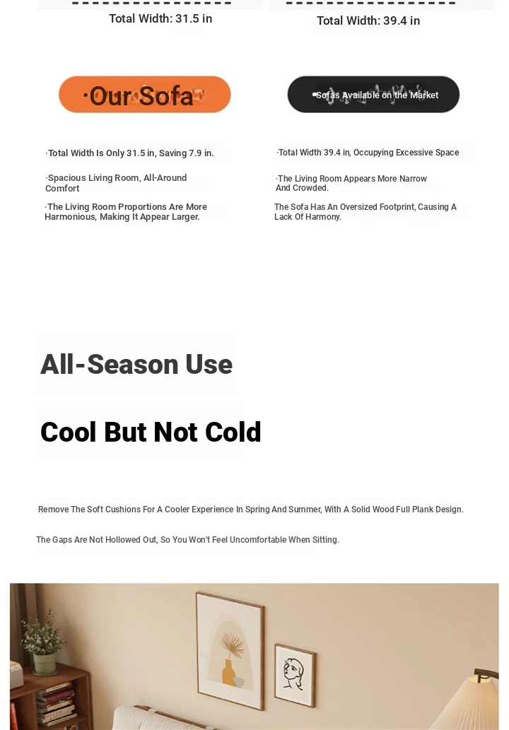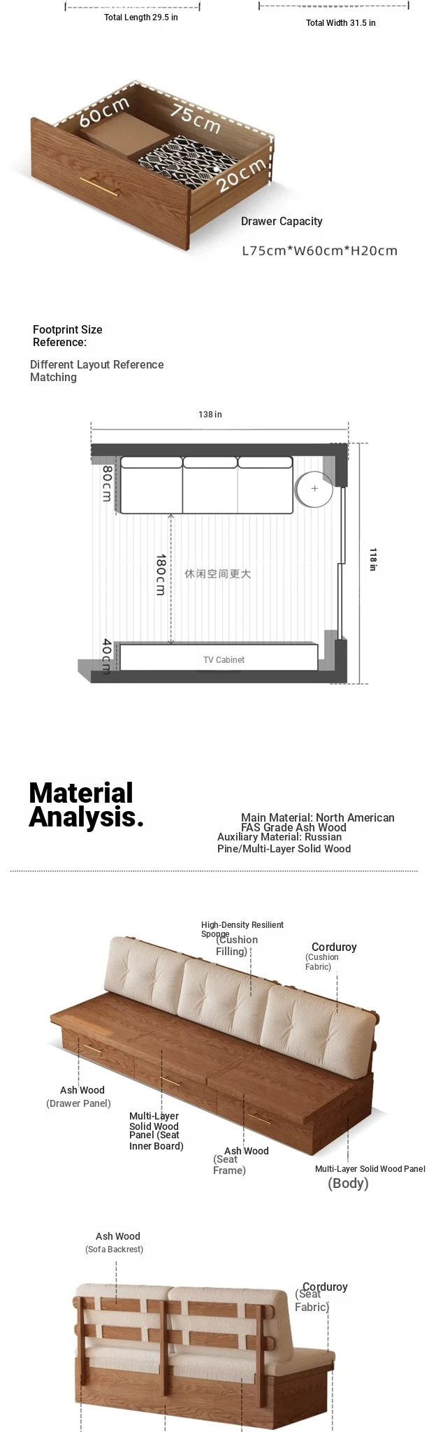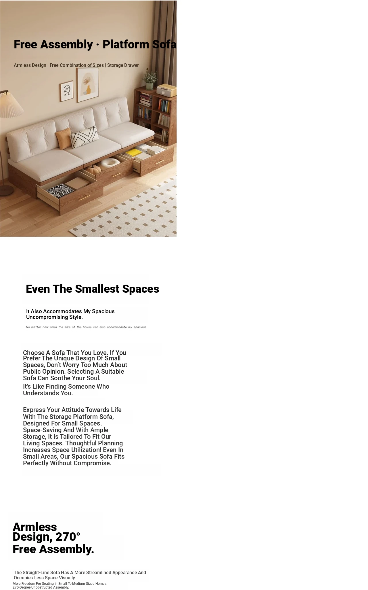 Japanese Style Solid Wood Sofa - Versatile for All Seasons, Perfect for Small Living Rooms, Drawer Storage, Armless Design, Straight Platform Sofa