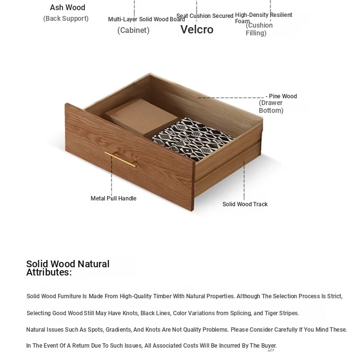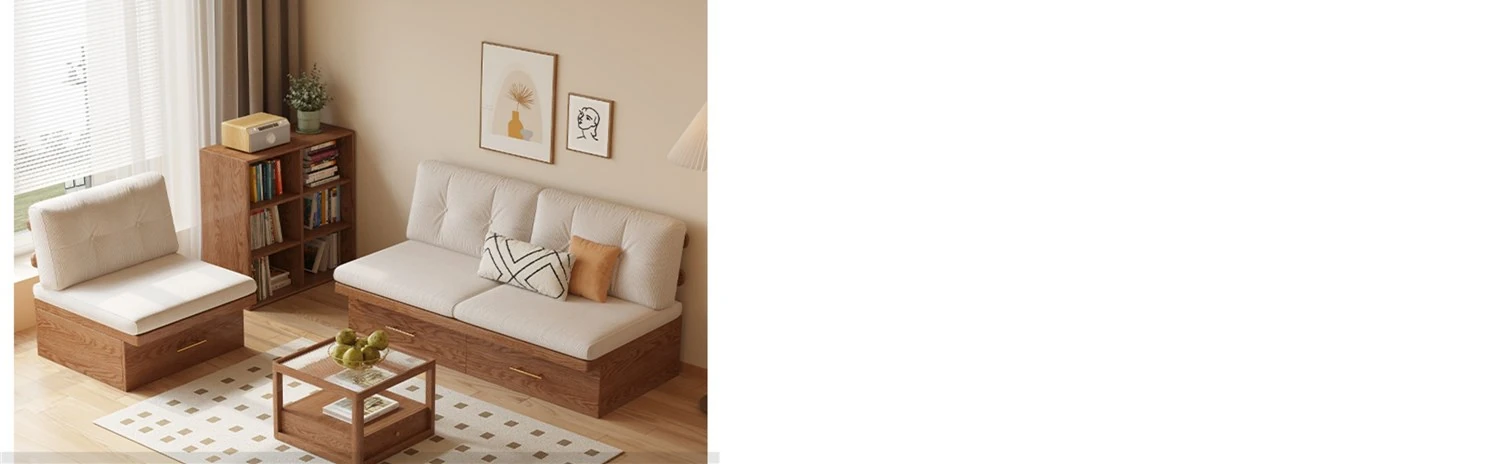 Single + double 88.58 in (sponge seat bag + walnut frame) with storage drawer