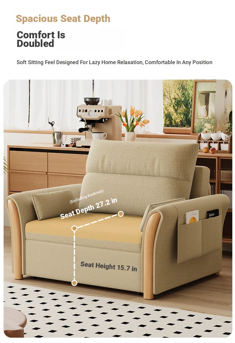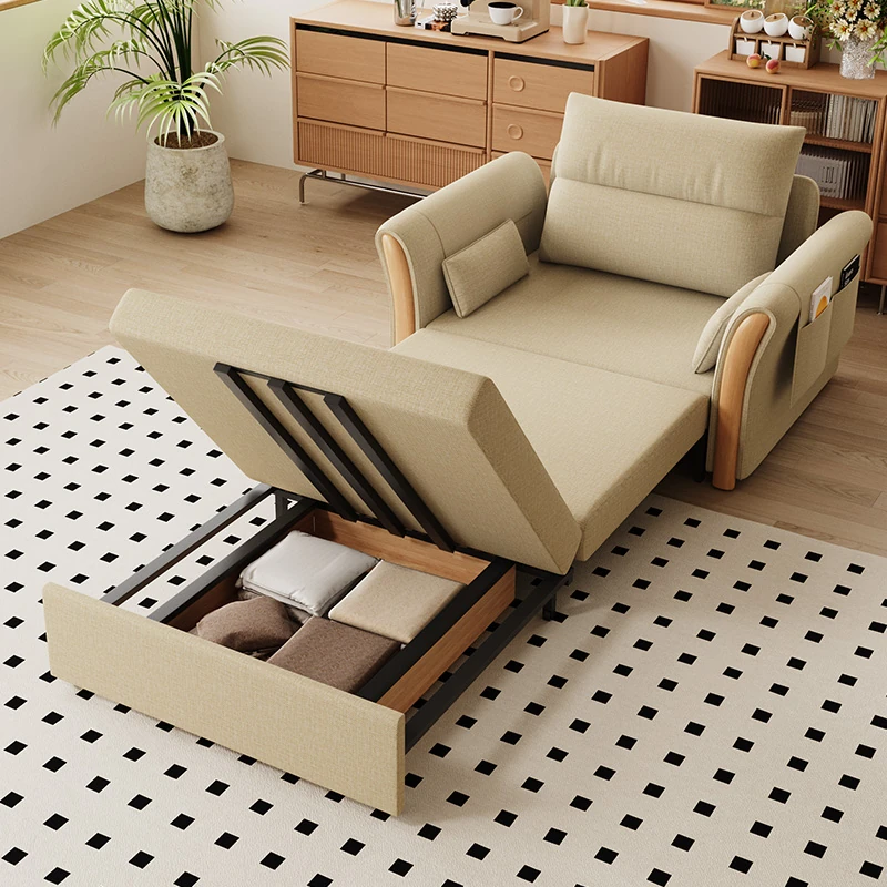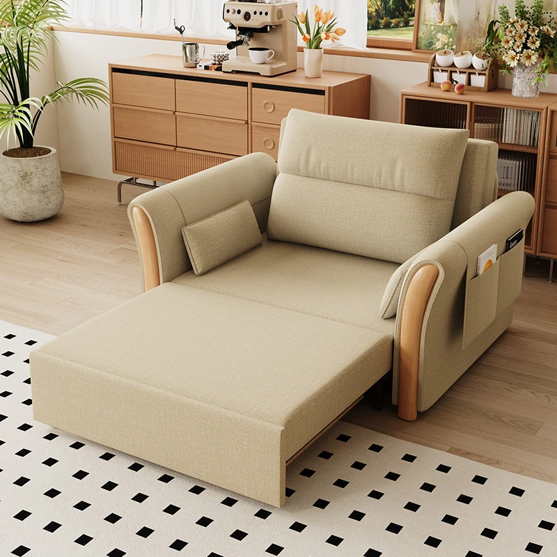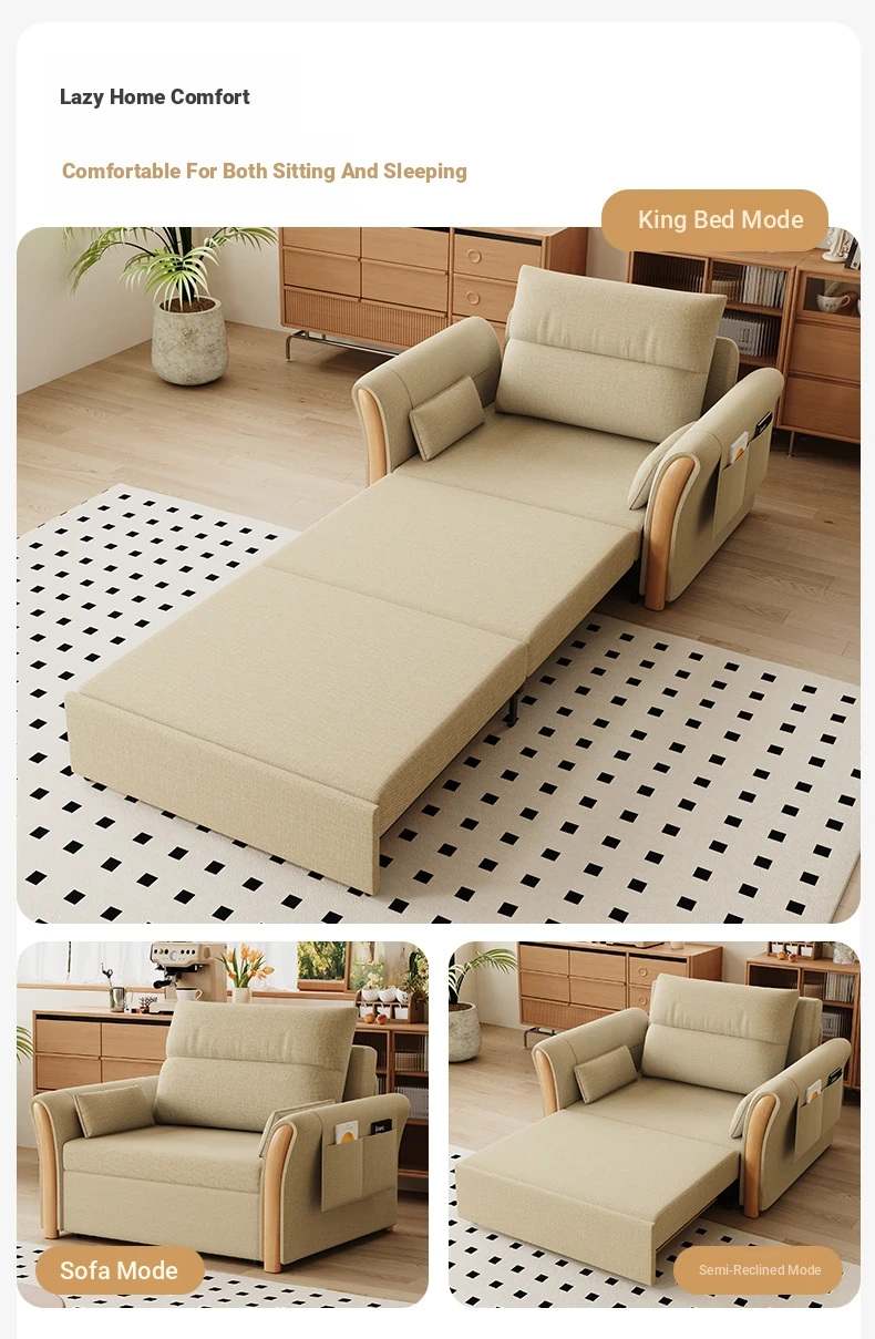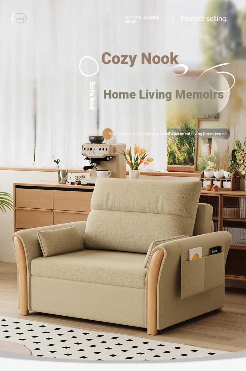 Kailai Star Cream Multifunctional Folding Sofa Bed - Space-saving Lazy Sofa with Storage for Small Apartments, Easy to Pull Out and Convert into Bed