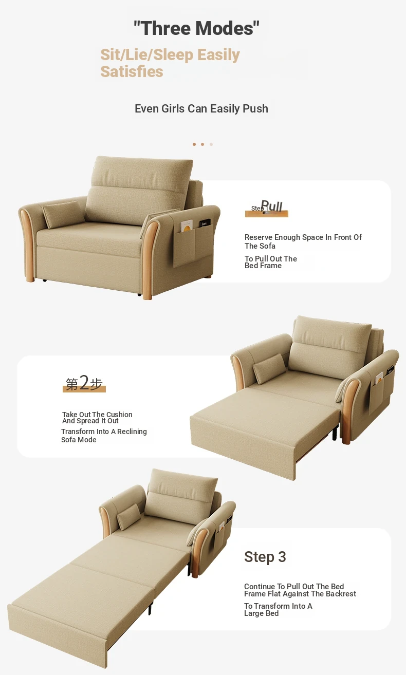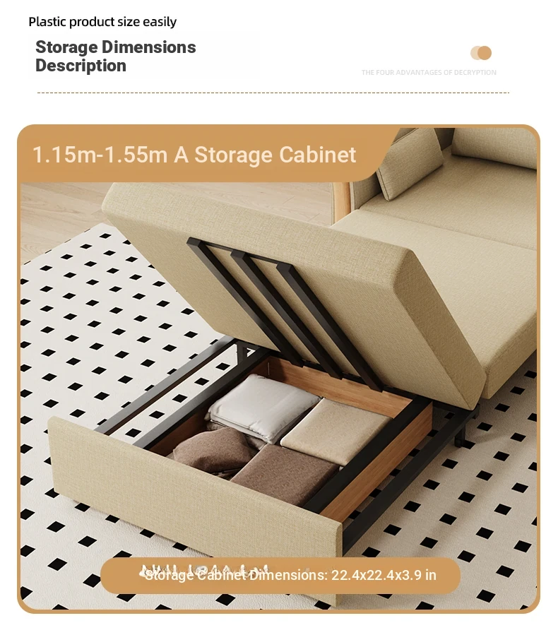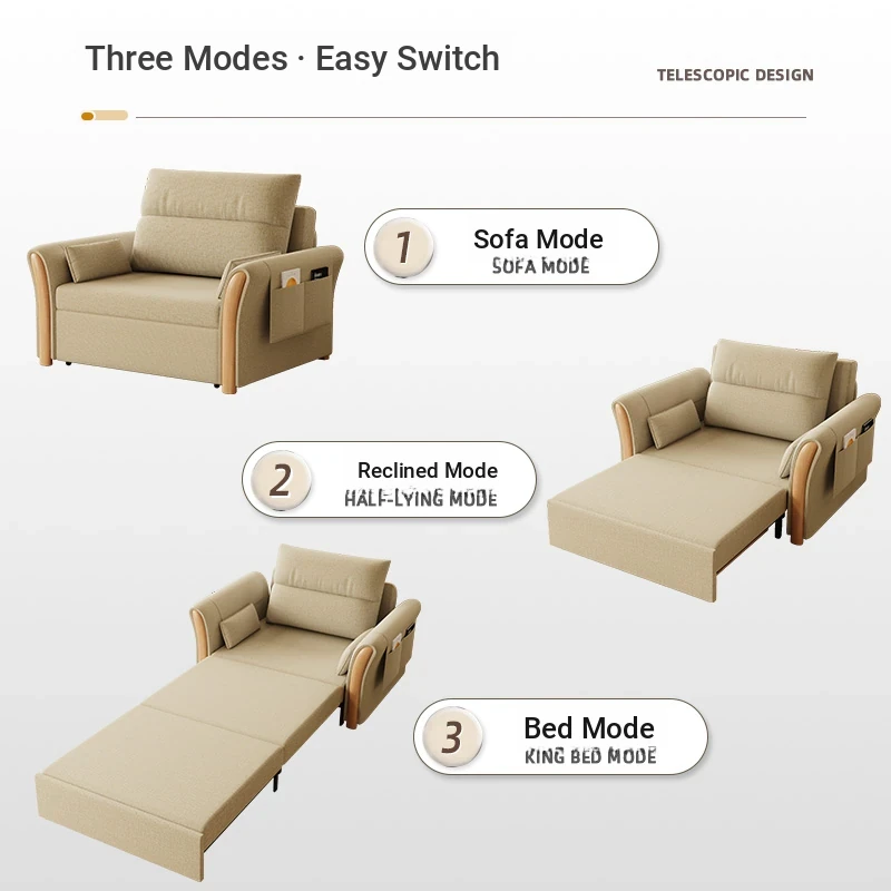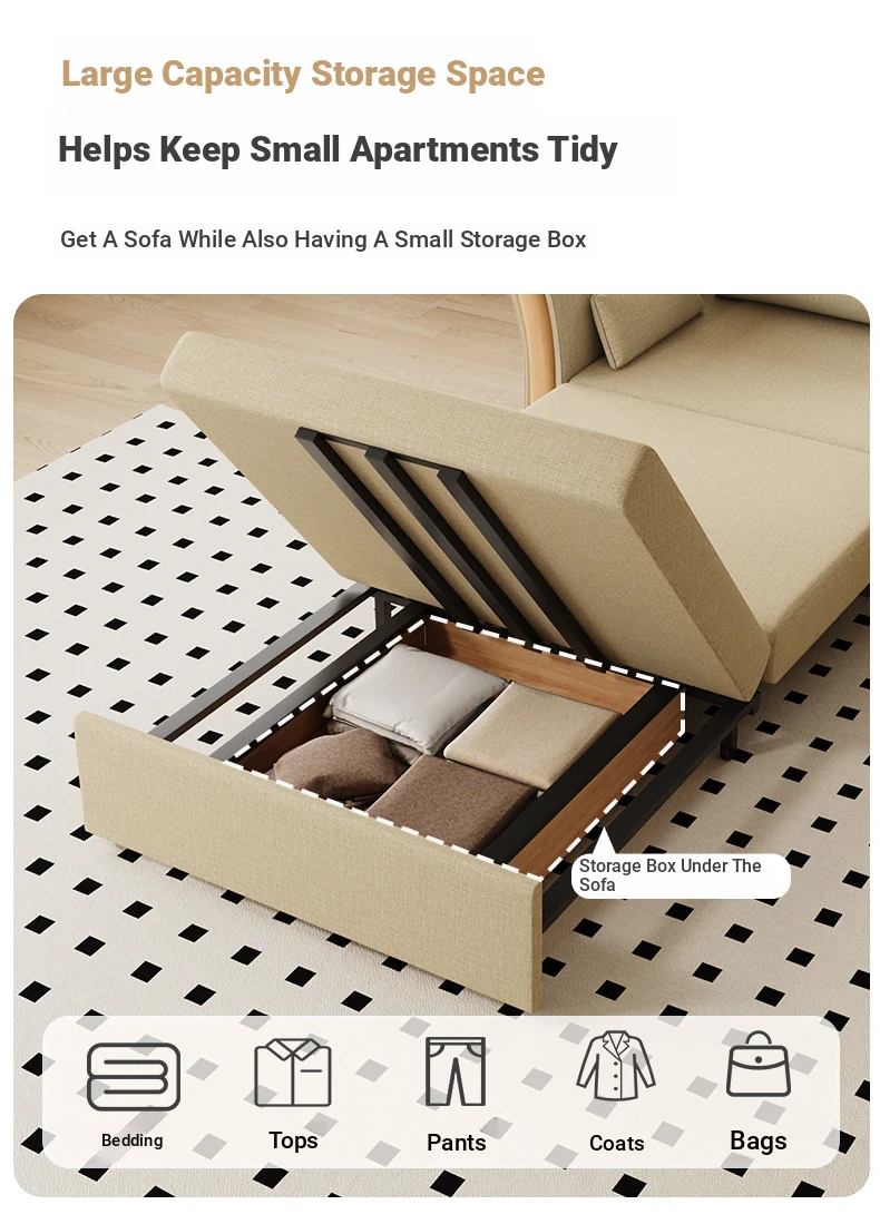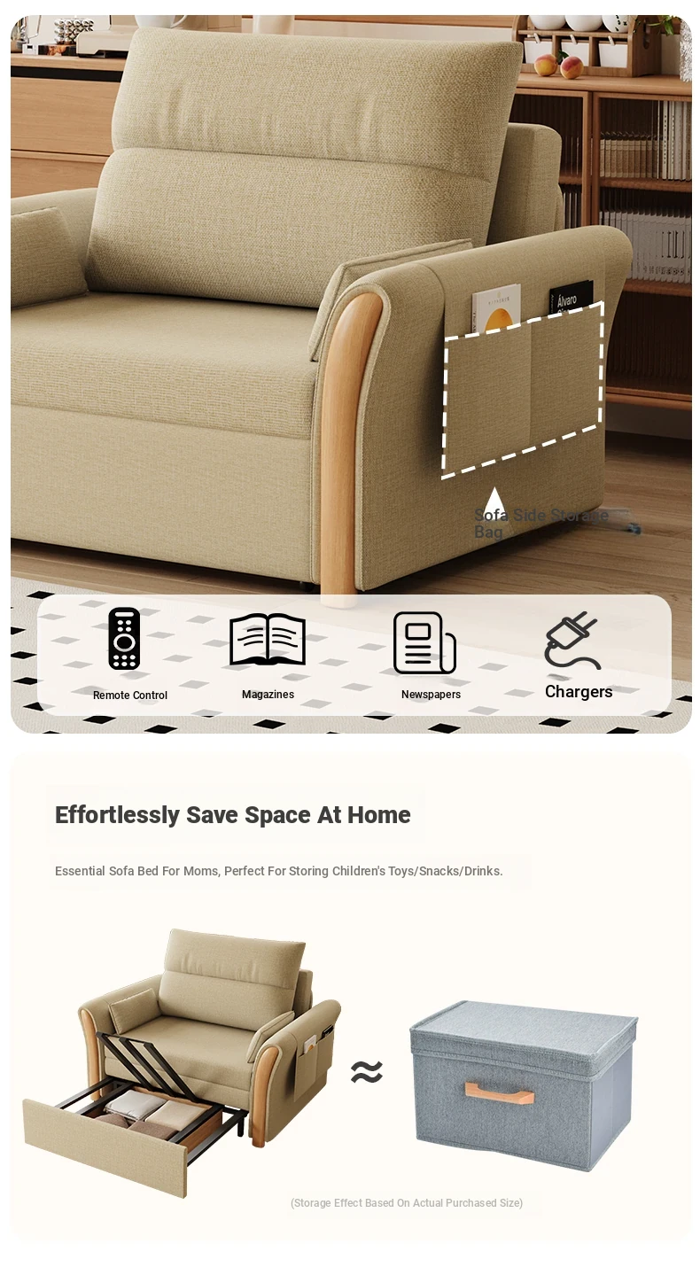 Kailai Star Cream Multifunctional Folding Sofa Bed - Space-saving Lazy Sofa with Storage for Small Apartments, Easy to Pull Out and Convert into Bed