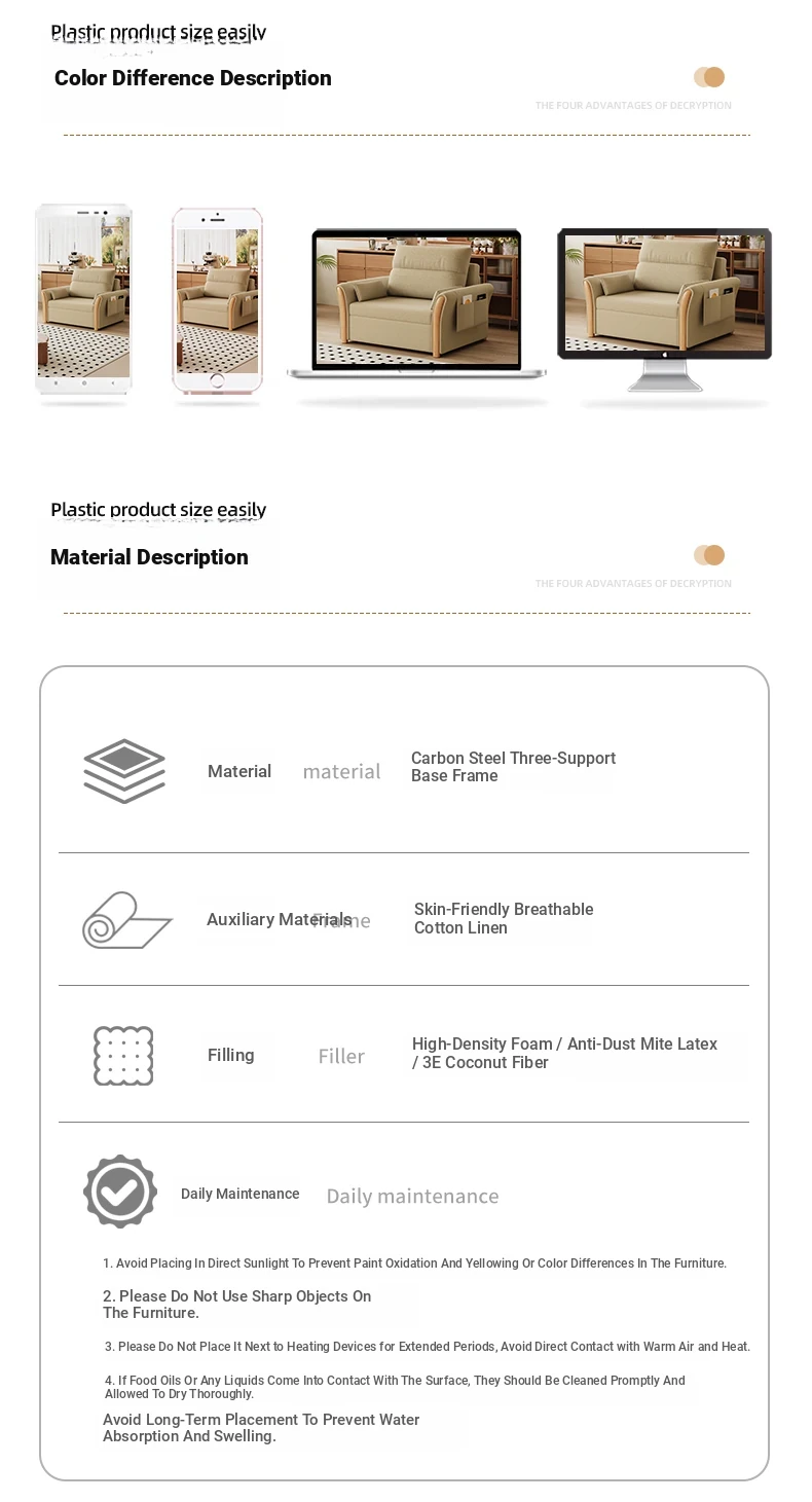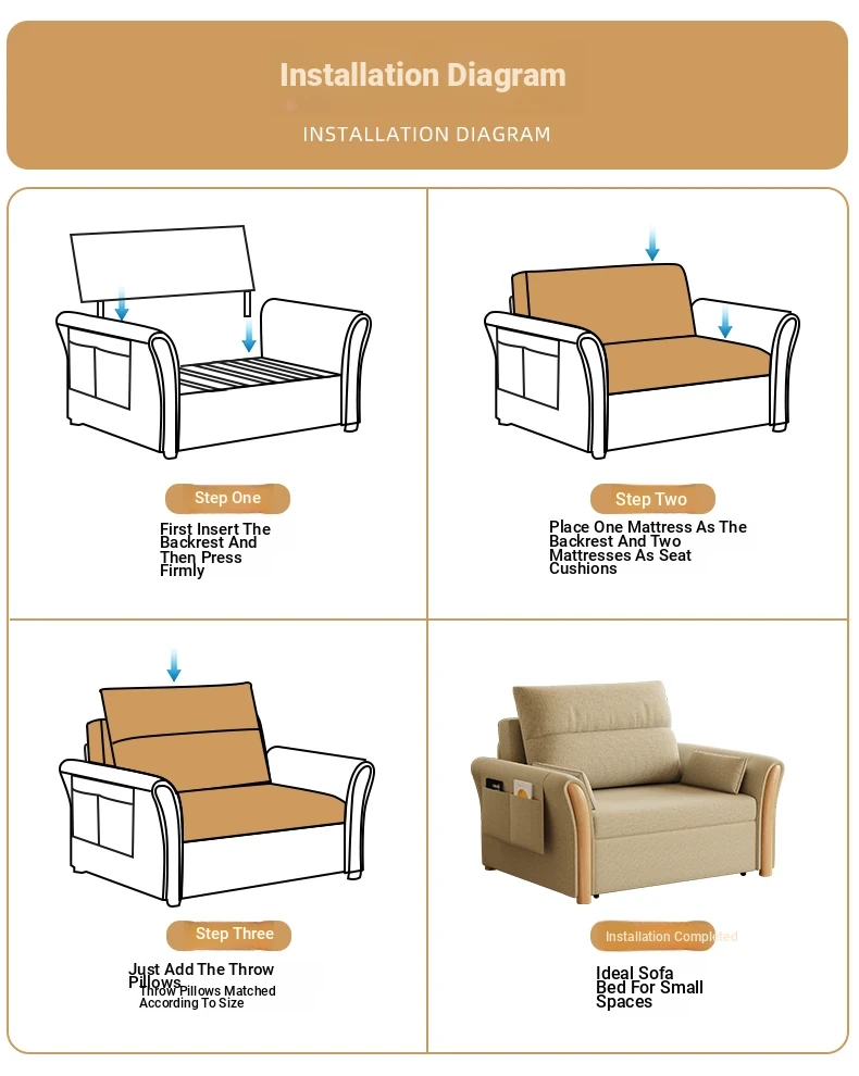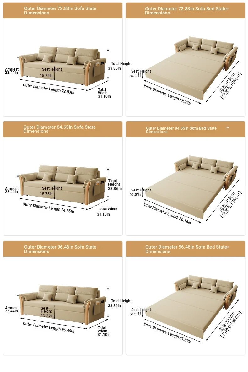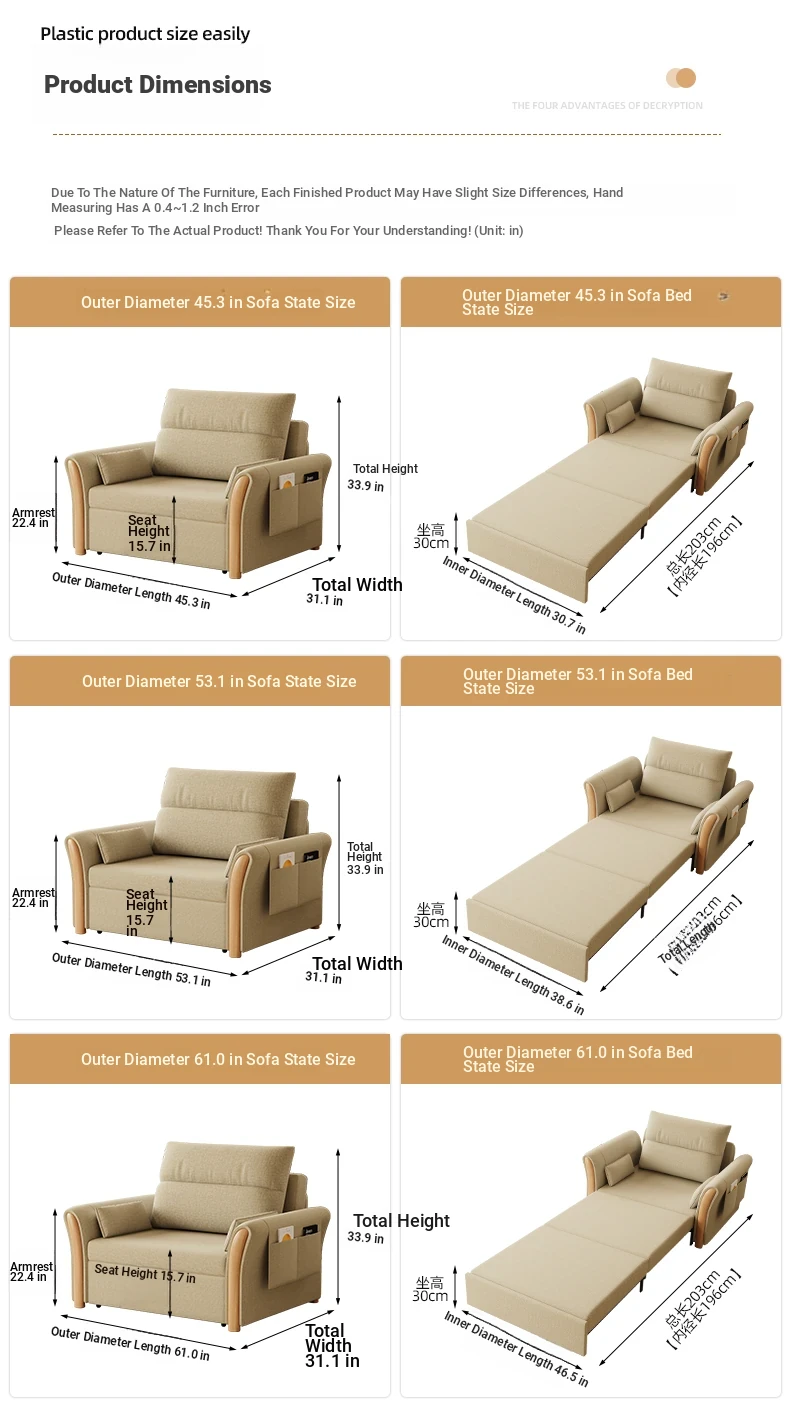 Kailai Star Cream Multifunctional Folding Sofa Bed - Space-saving Lazy Sofa with Storage for Small Apartments, Easy to Pull Out and Convert into Bed