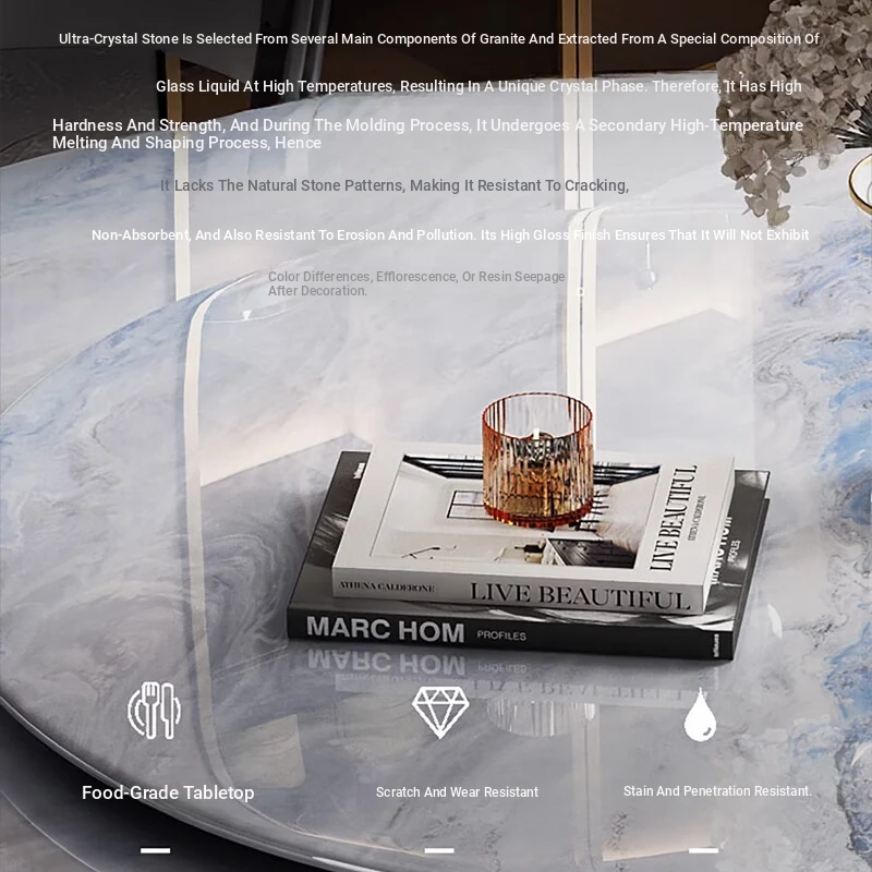 Flower color(One table and six chairs [59.06in] microcrystalline stone dining table + turntable)