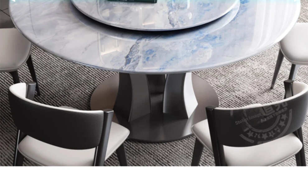 Purple(One table and six chairs [53.15in] microcrystalline stone dining table + turntable)