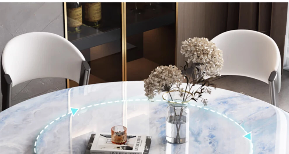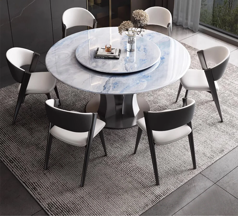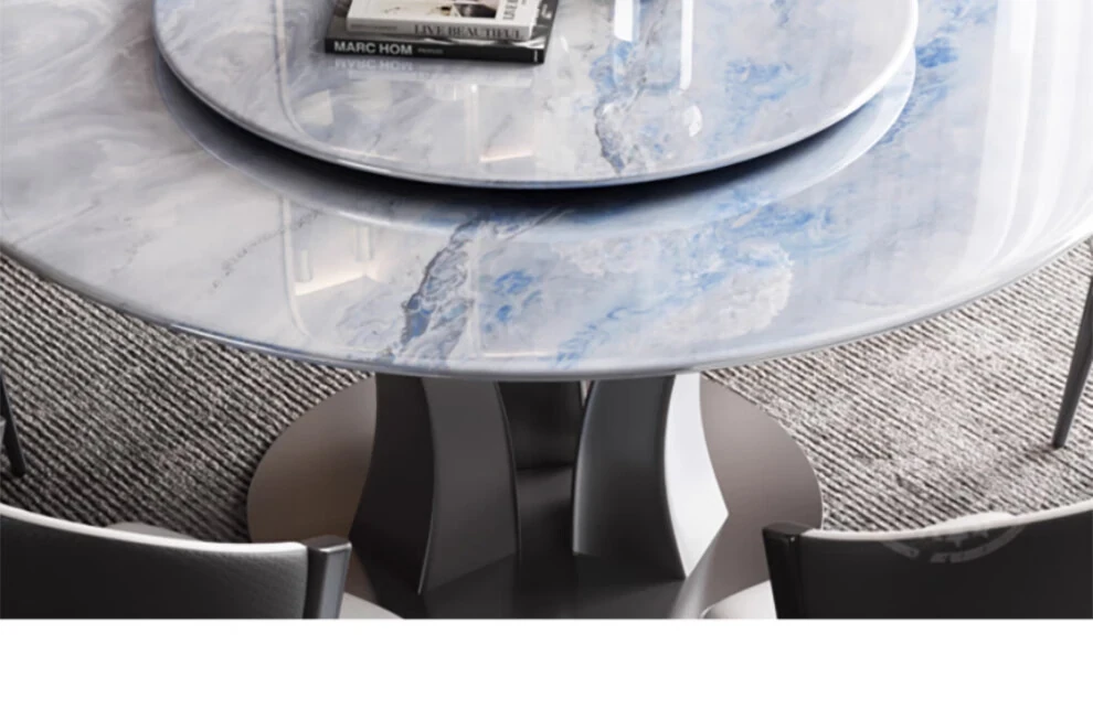 Dark Blue(One table and four chairs [47.24in] microlite dining table + turntable)