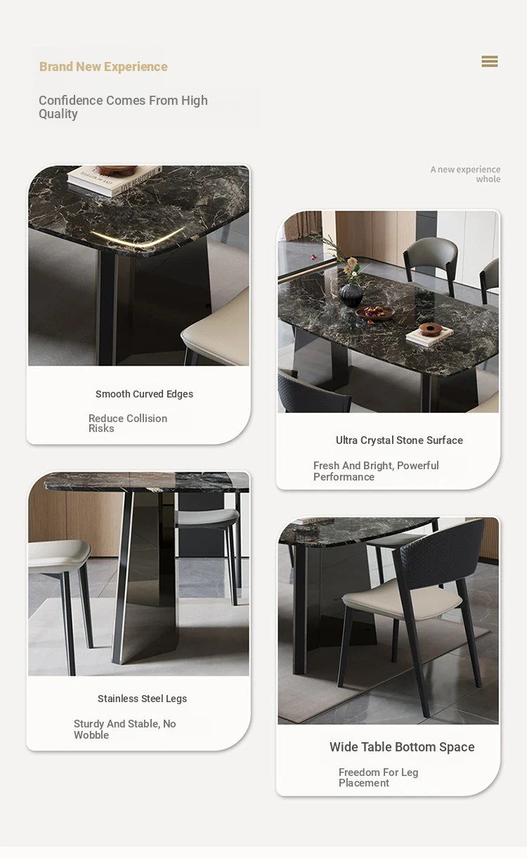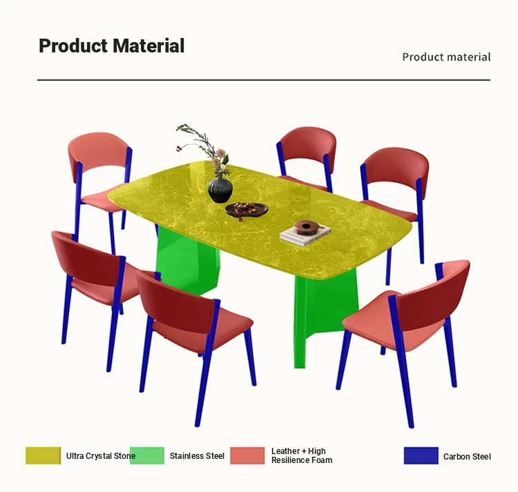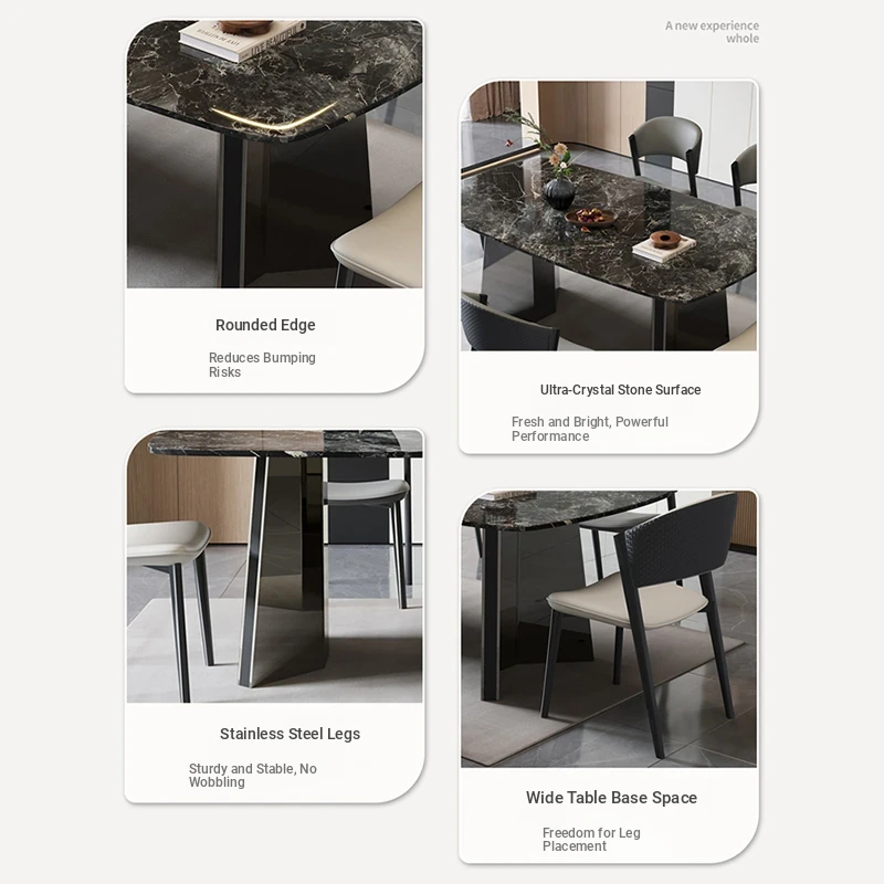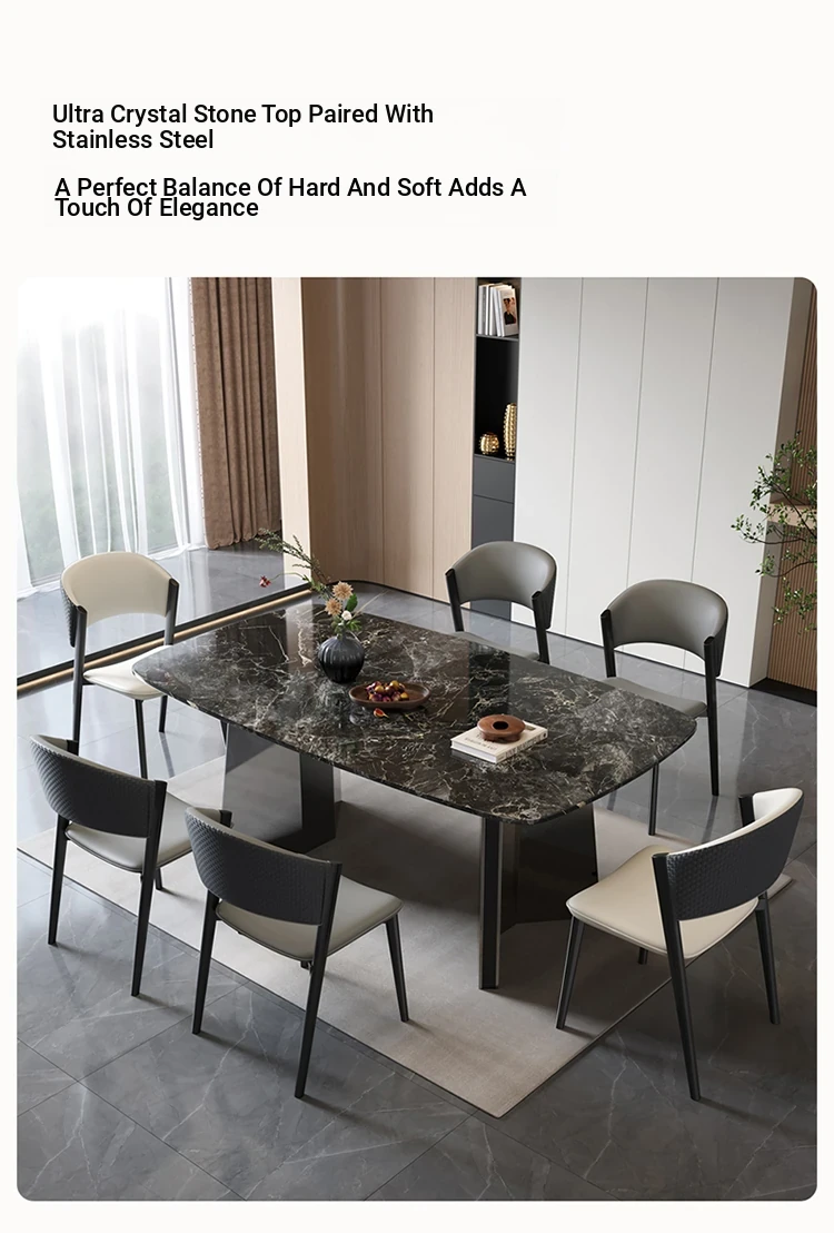 Luminous Living Italian Minimalist Dining Table and Chair Set - Luxurious Modern Rectangular Dining Table with Ultra-Crystal Stone for Home Use