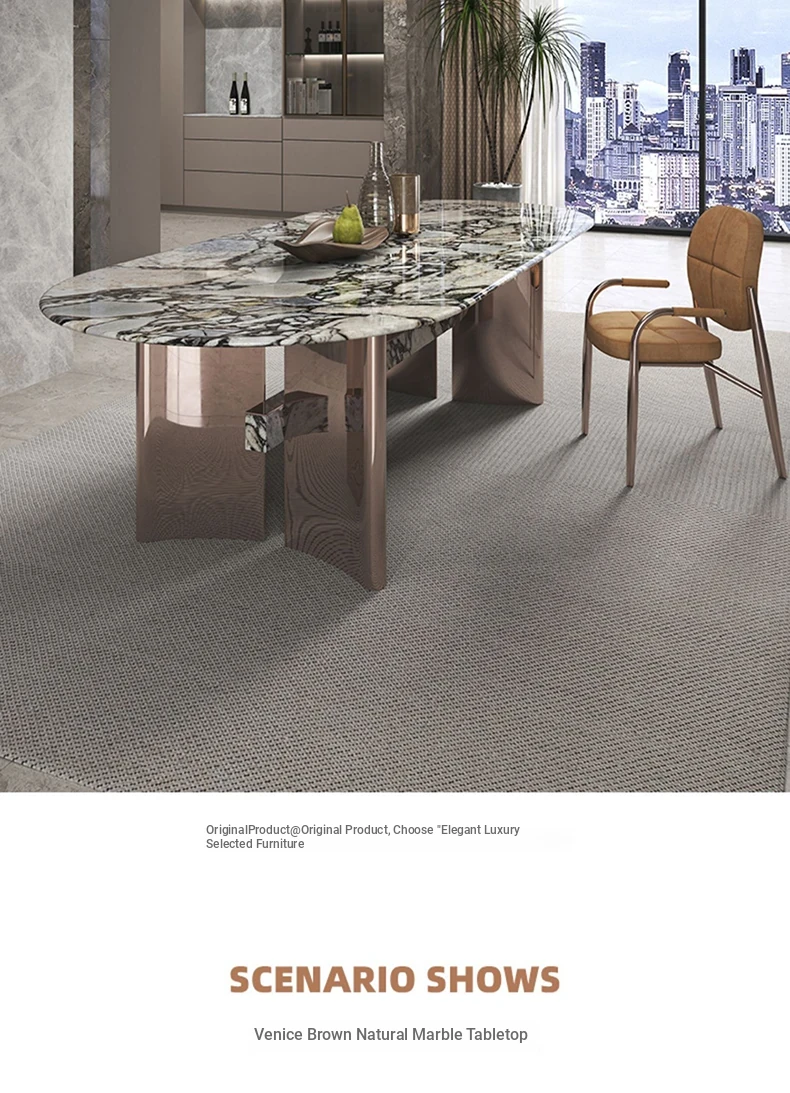 Sailing natural luxury stone long table/94.49in*43.31in/mirror dark brown