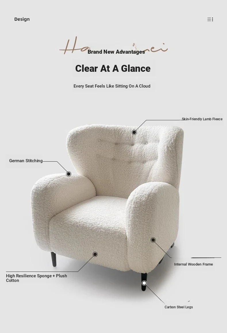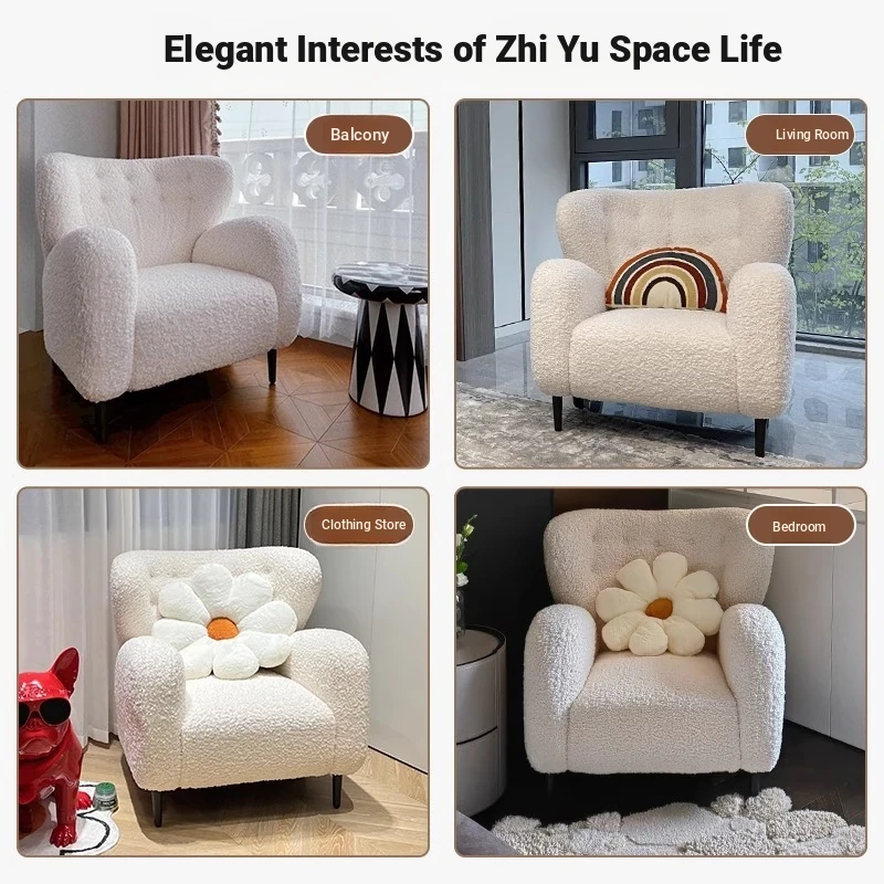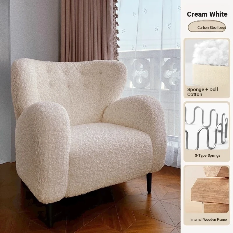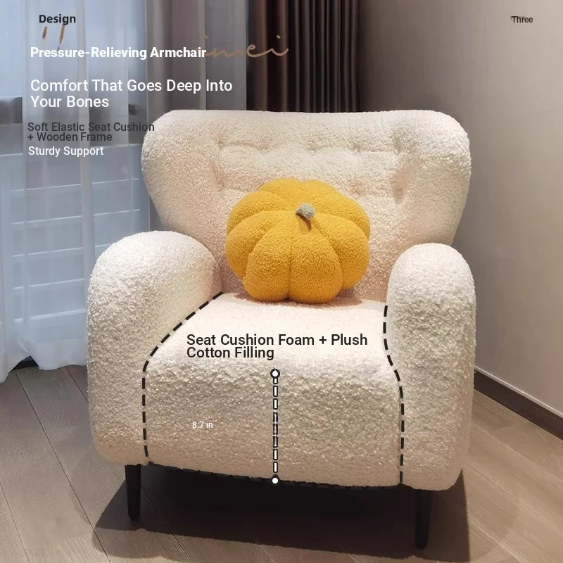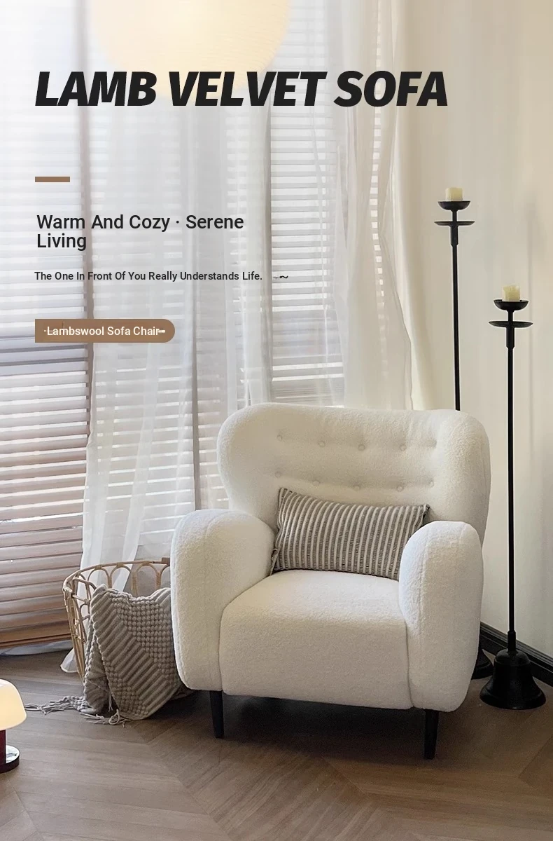 Luxury Lamb Fleece Single Armchair - Designer Scandinavian Style Relaxation Chair for Living Room, Bedroom, and Balcony - Perfect for Cozy Moments