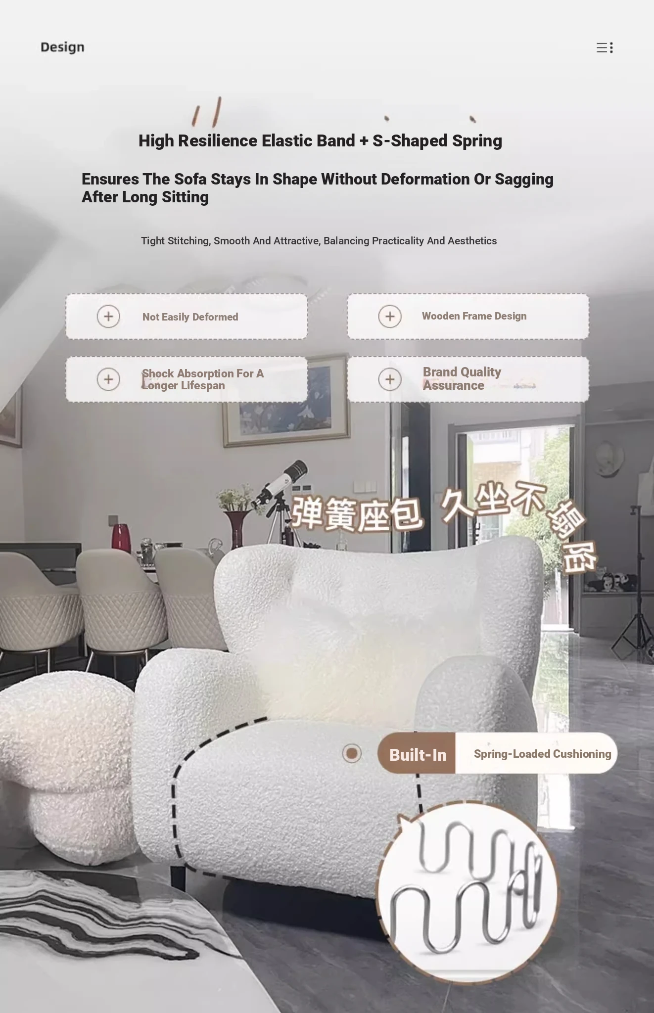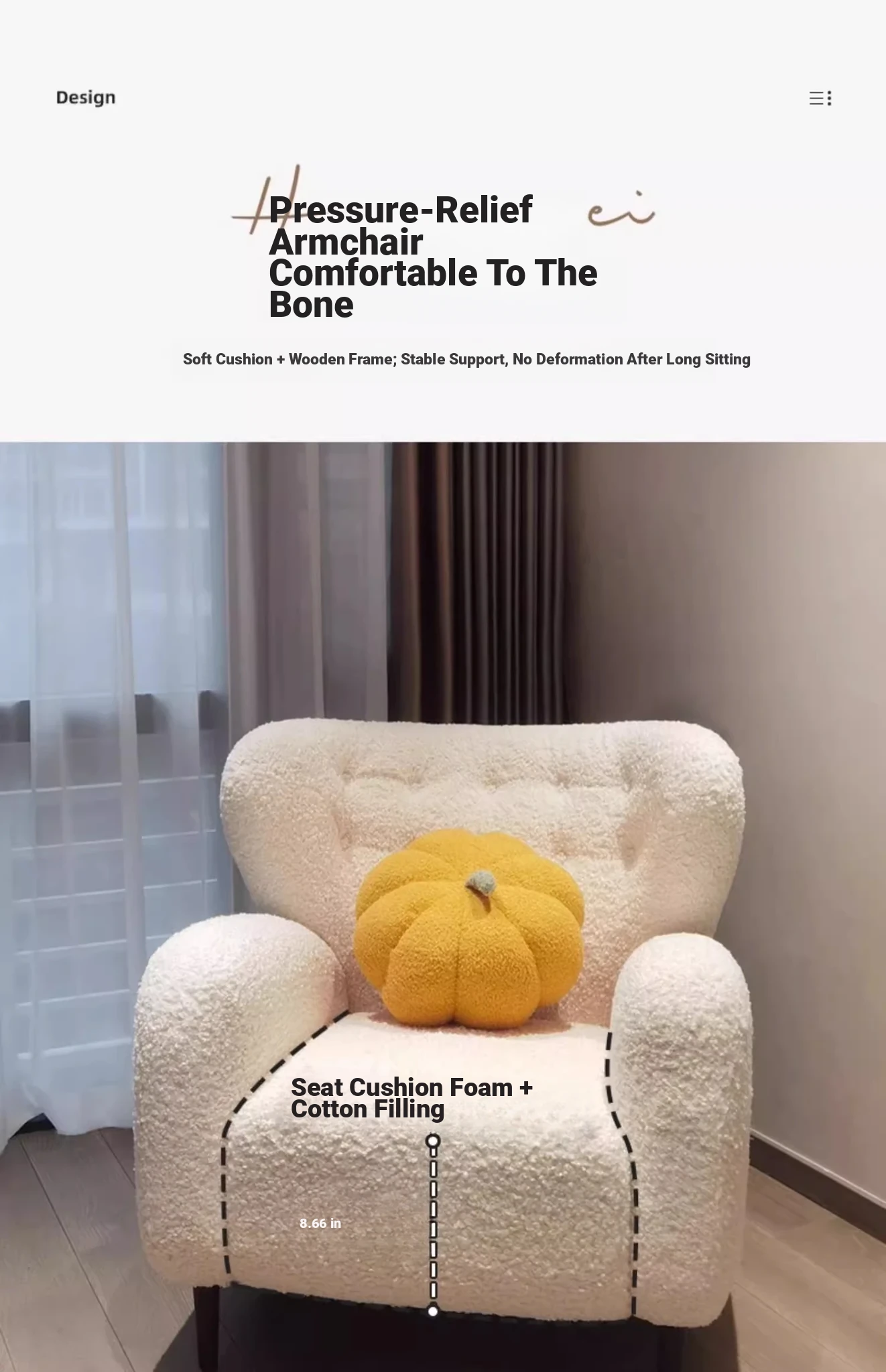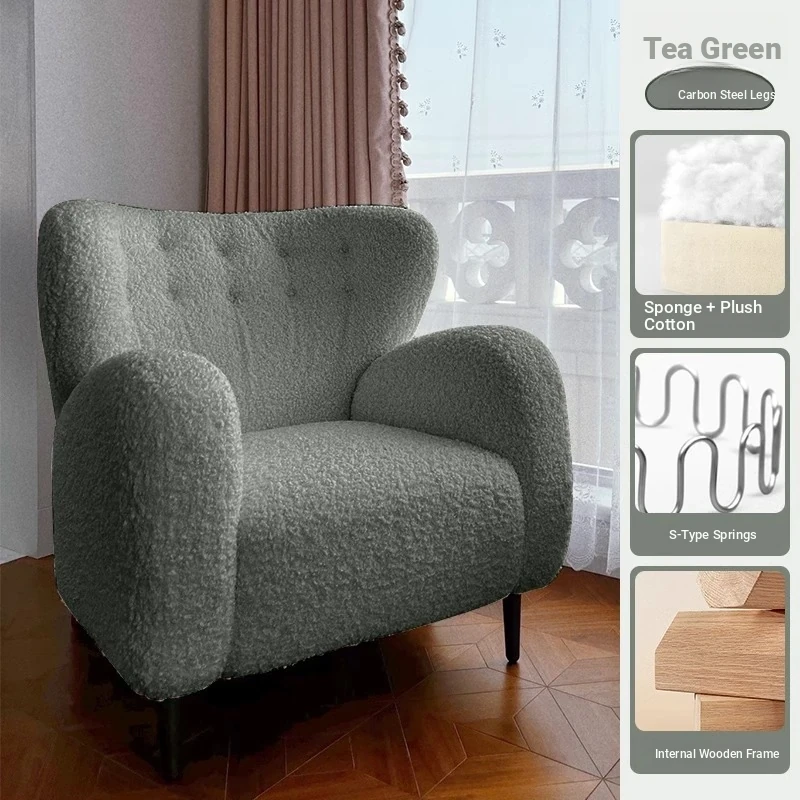 Luxury Lamb Fleece Single Armchair - Designer Scandinavian Style Relaxation Chair for Living Room, Bedroom, and Balcony - Perfect for Cozy Moments