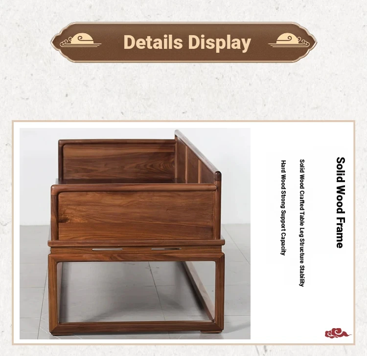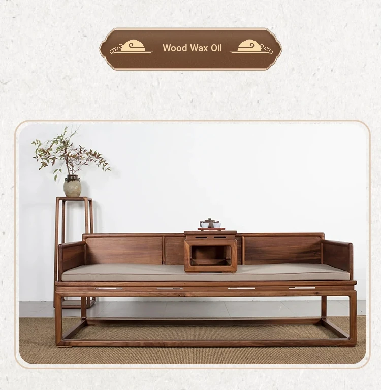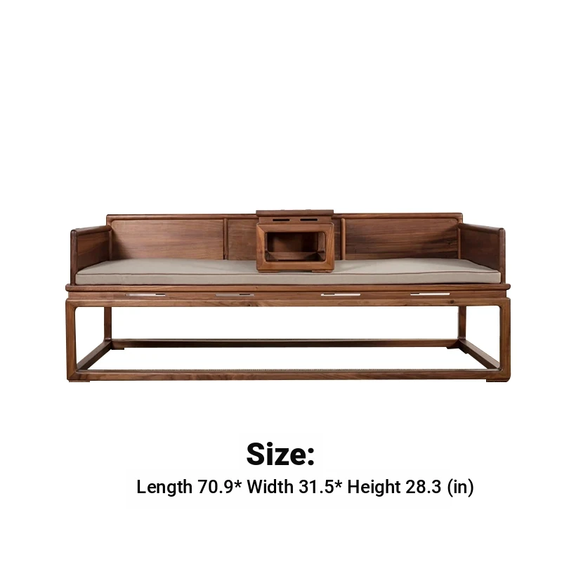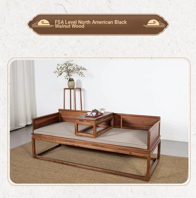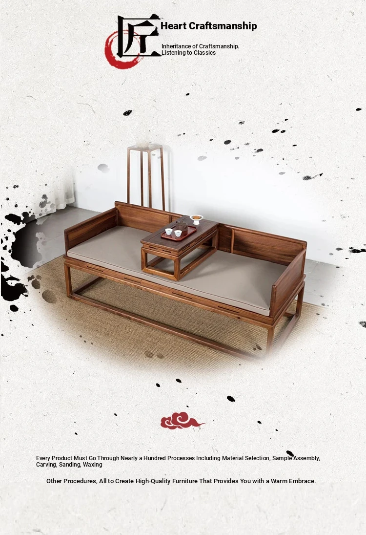 Minimalist New Chinese Style Black Walnut Sofa Bed - Zen-Inspired Daybed for Small Living Rooms, Perfect for Modern Homes