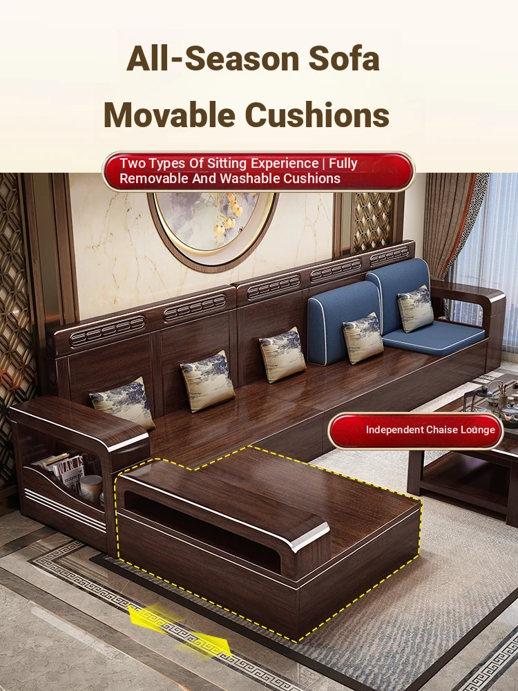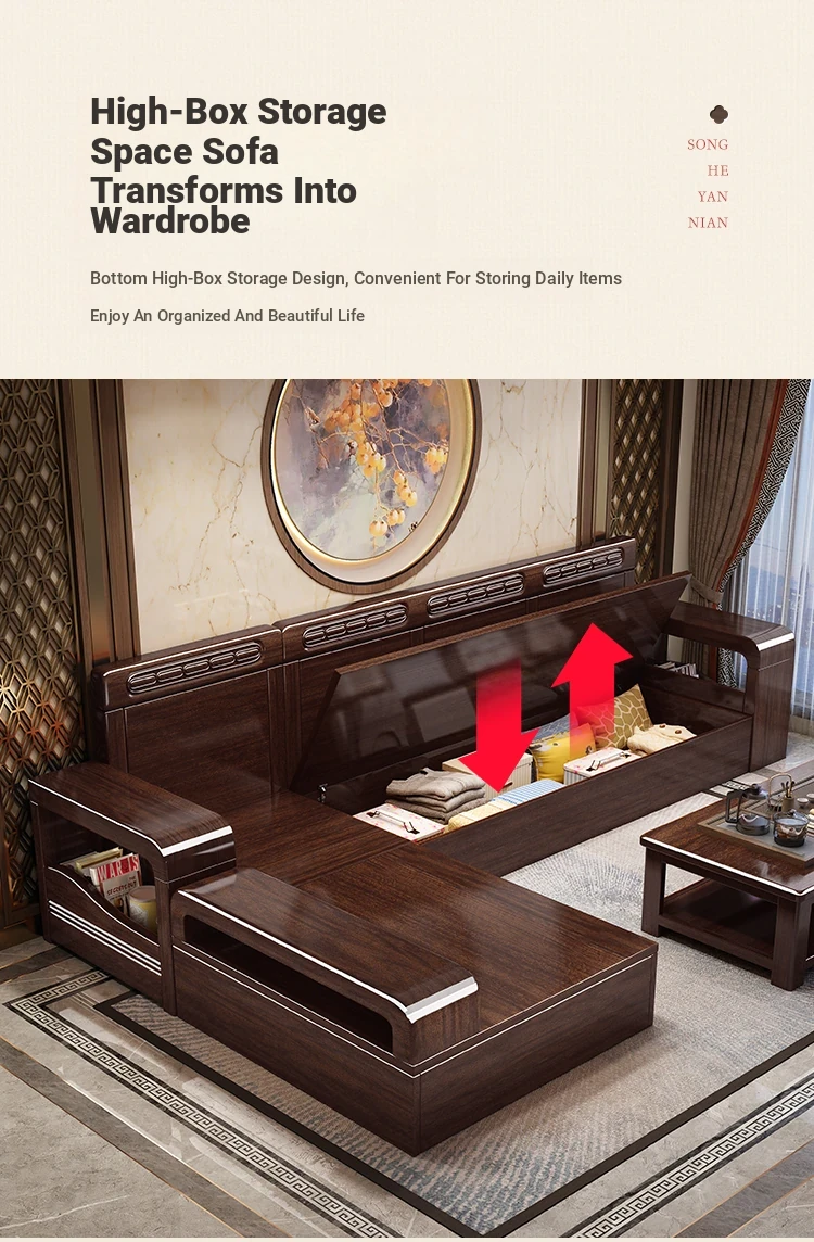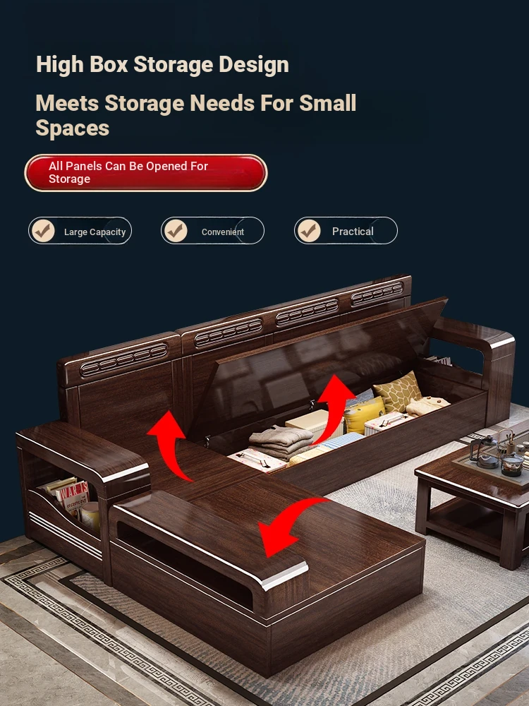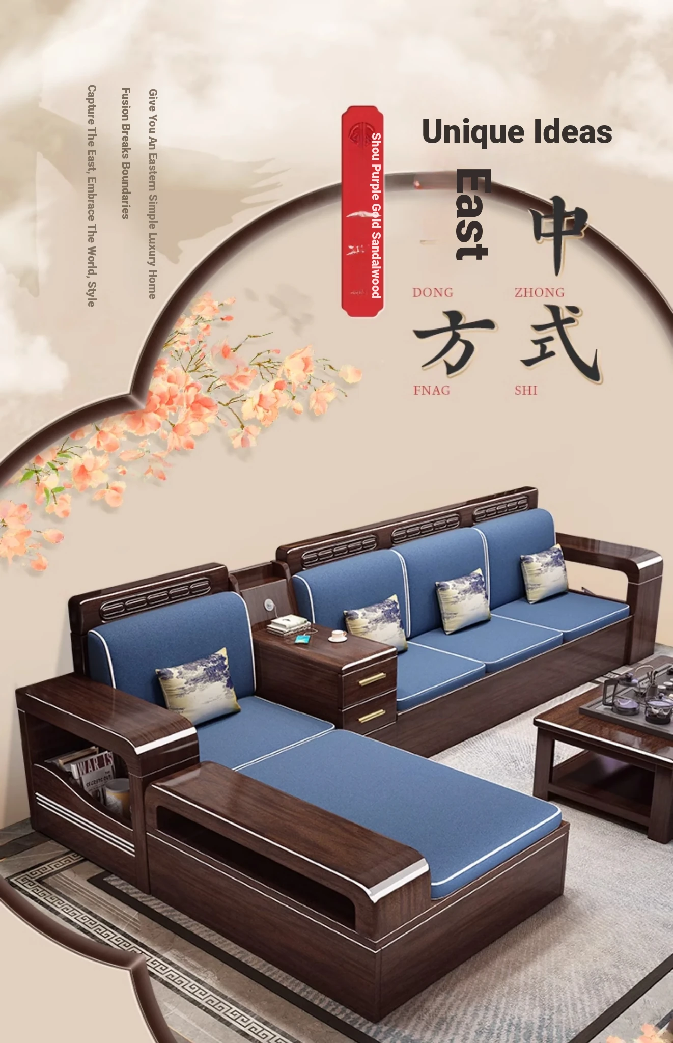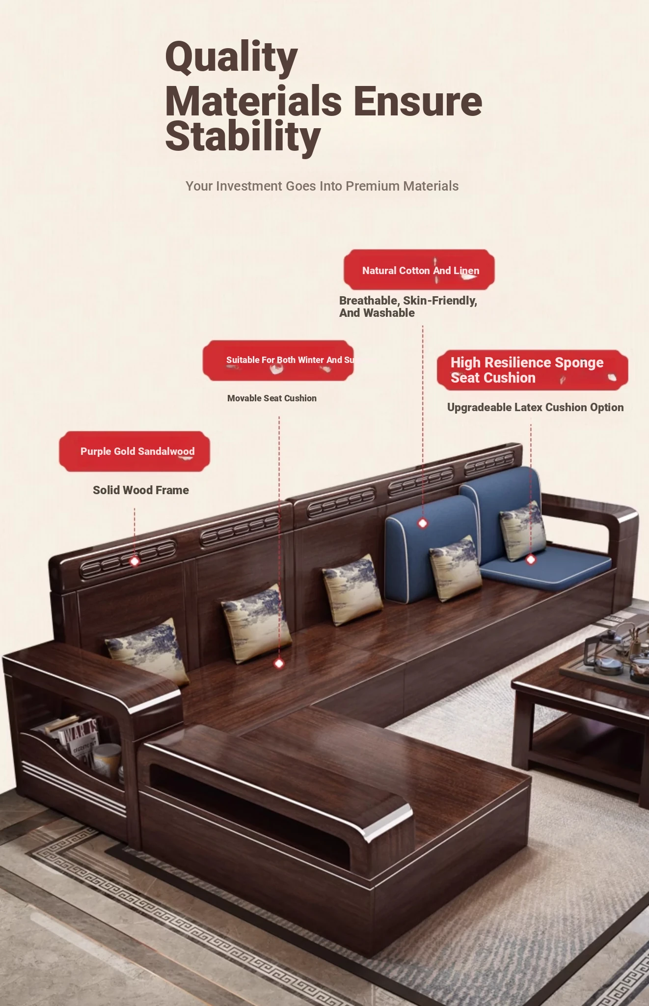 Modern Chinese Style Solid Wood Sofa for Living Room - Space-Saving Combination with Storage in Purple Sandalwood for Small Apartments