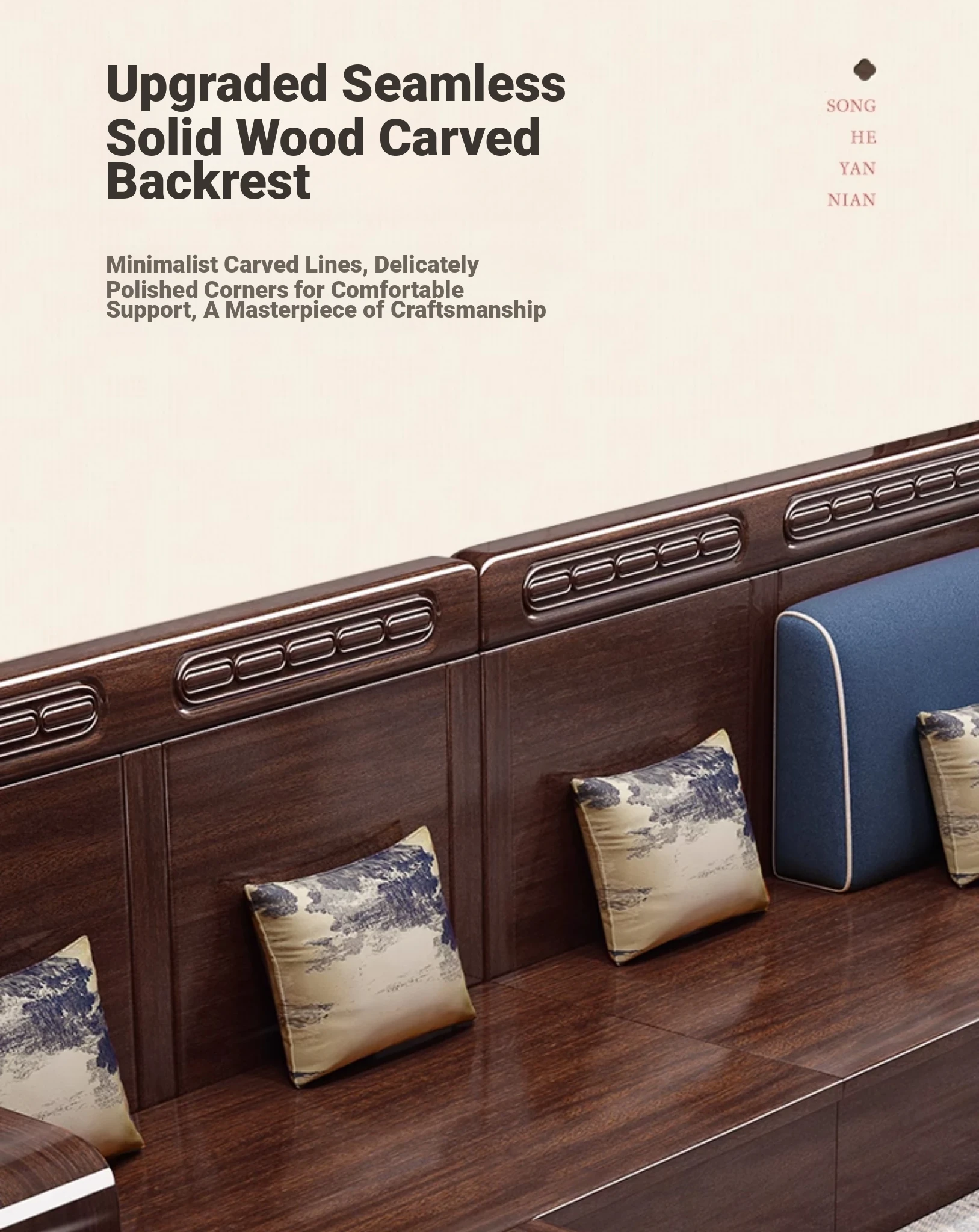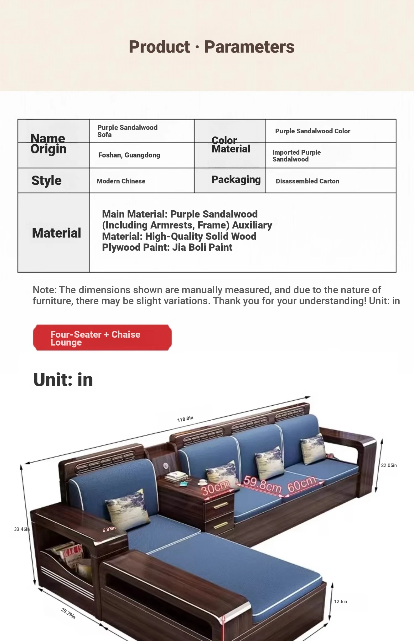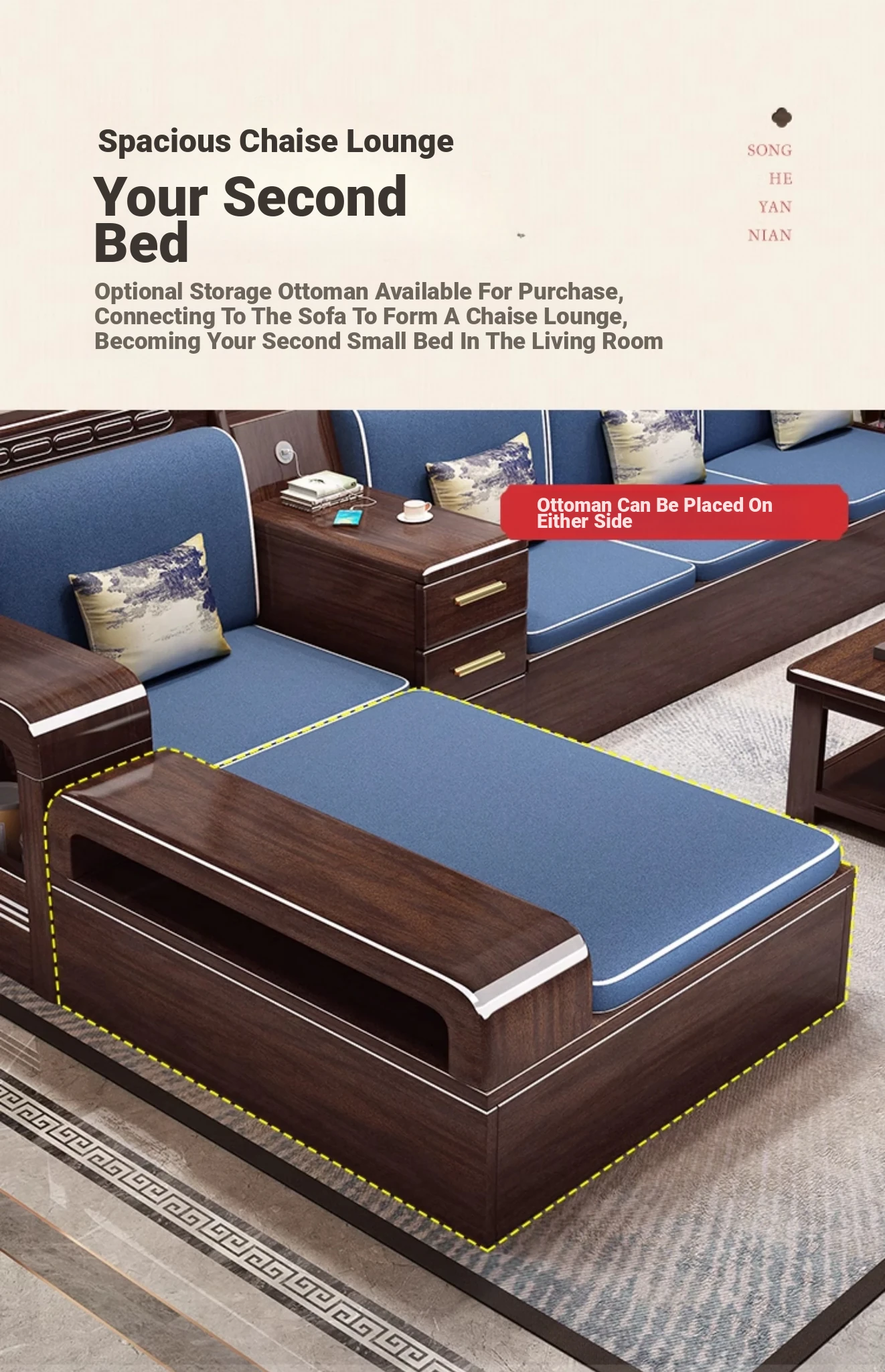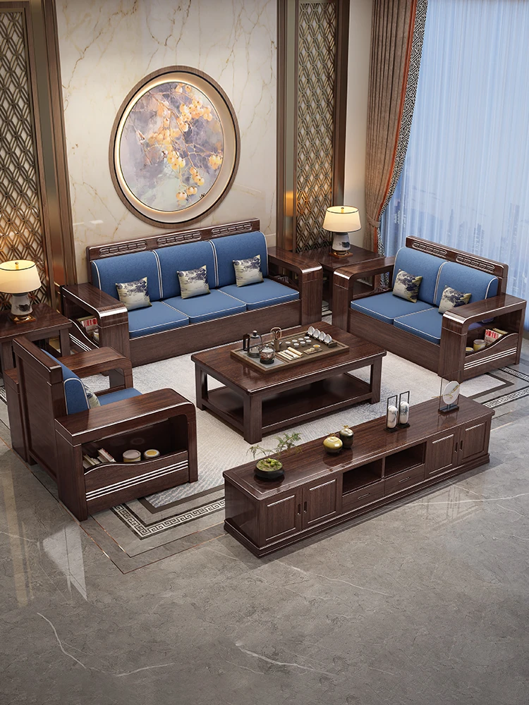 Modern Chinese Style Solid Wood Sofa for Living Room - Space-Saving Combination with Storage in Purple Sandalwood for Small Apartments