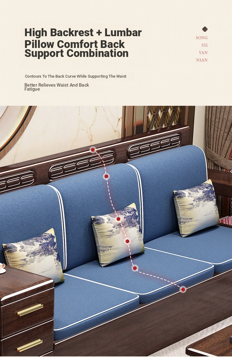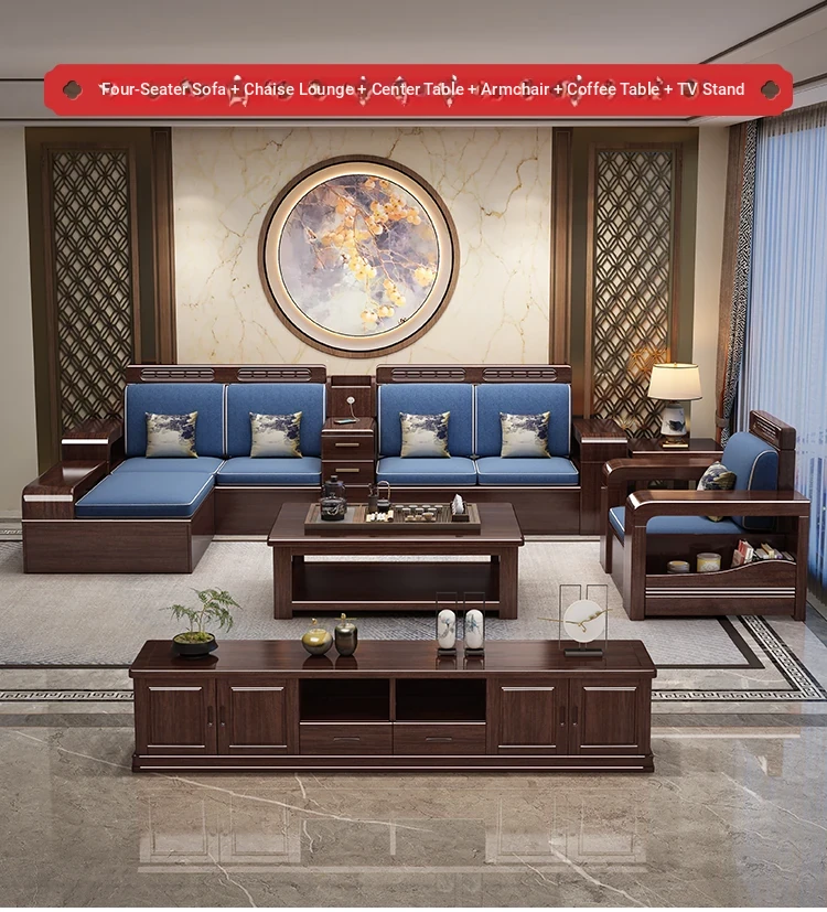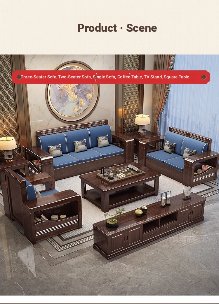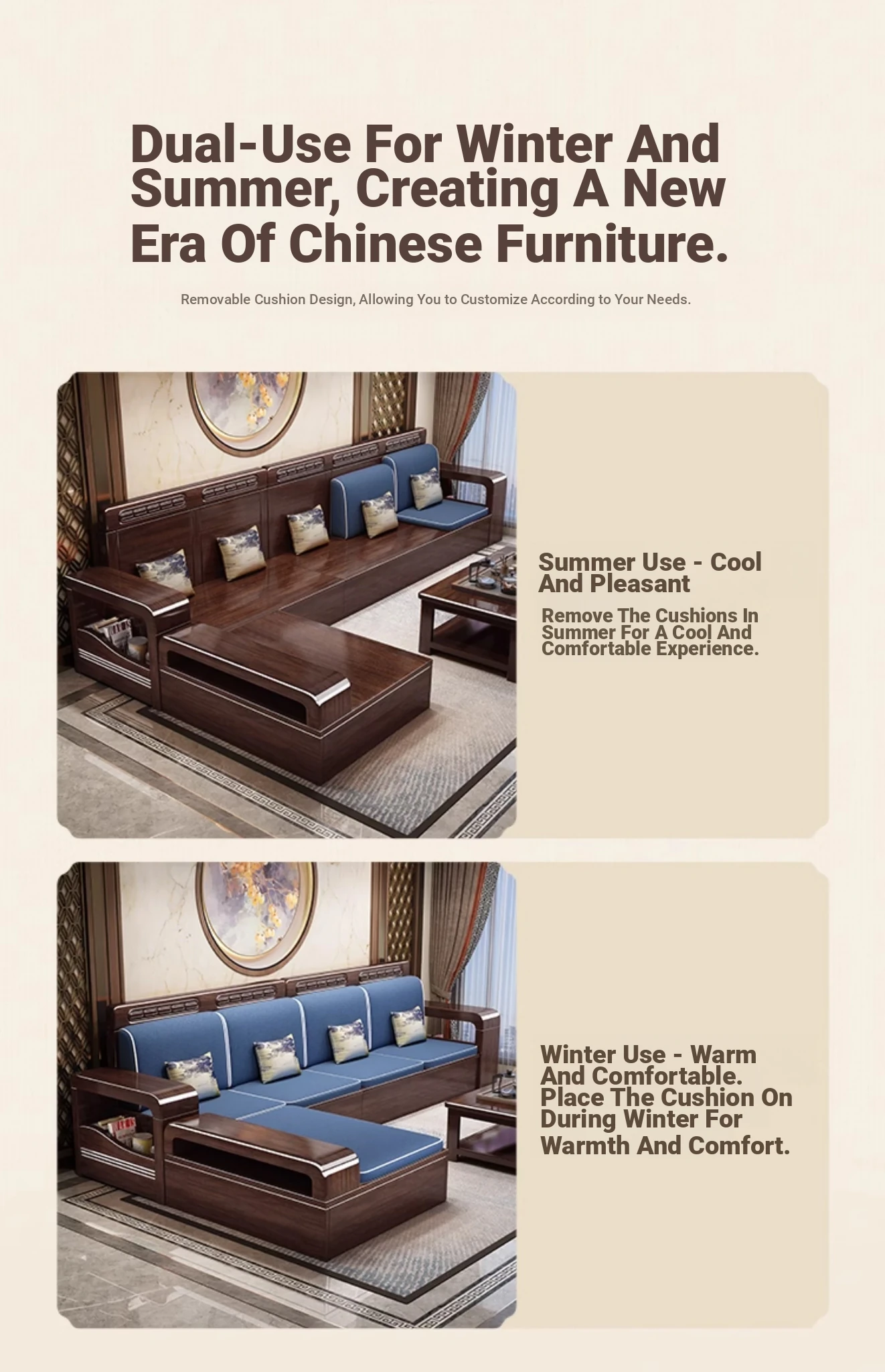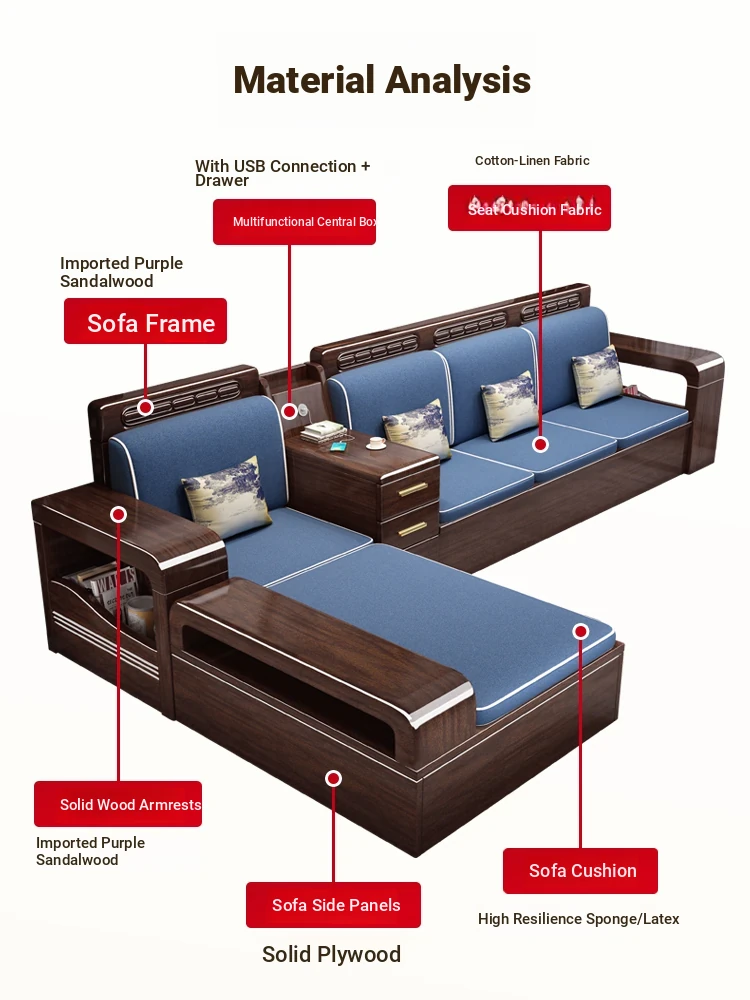 Modern Chinese Style Solid Wood Sofa for Living Room - Space-Saving Combination with Storage in Purple Sandalwood for Small Apartments