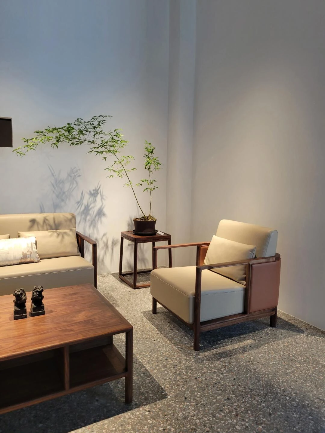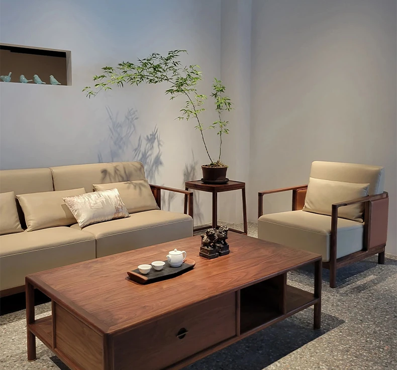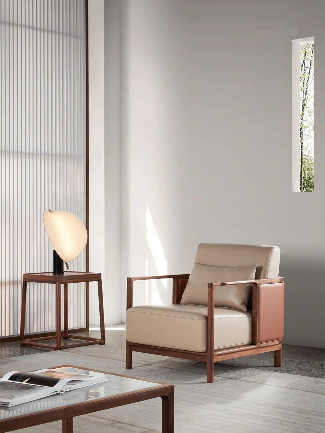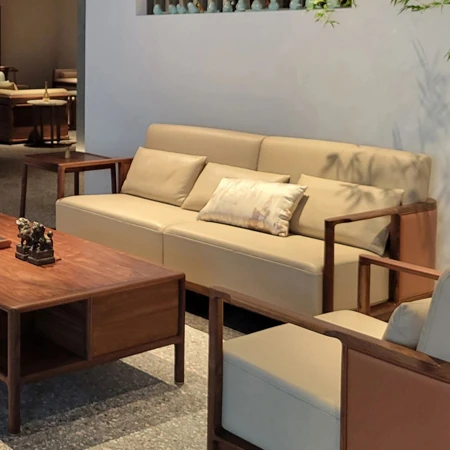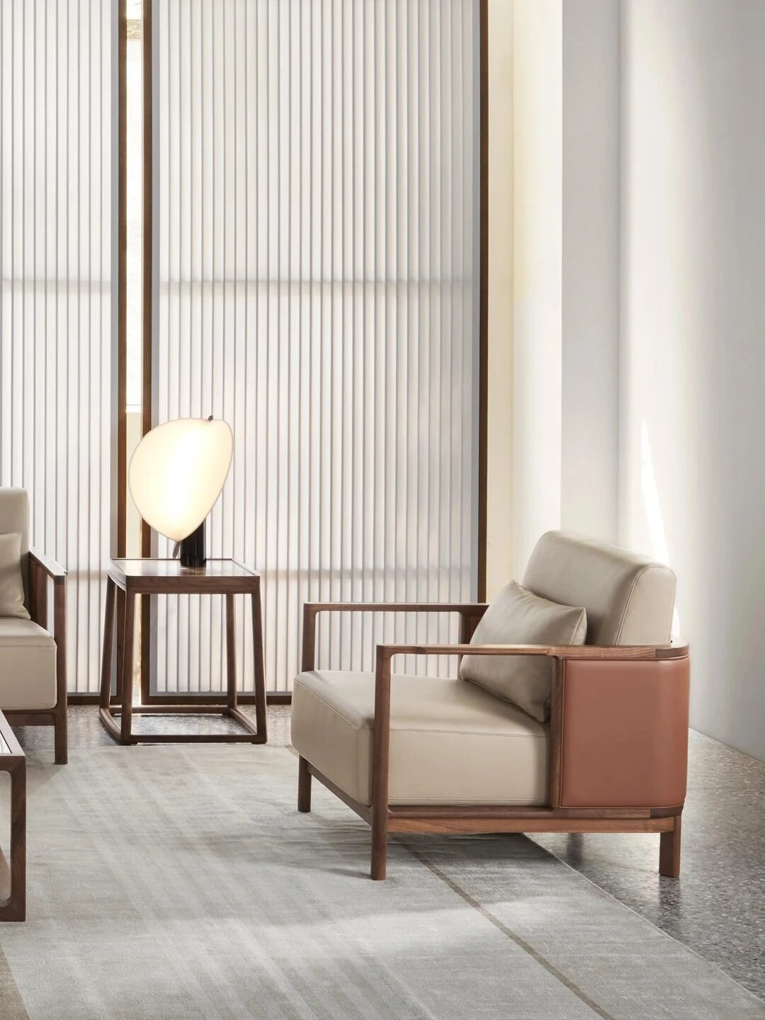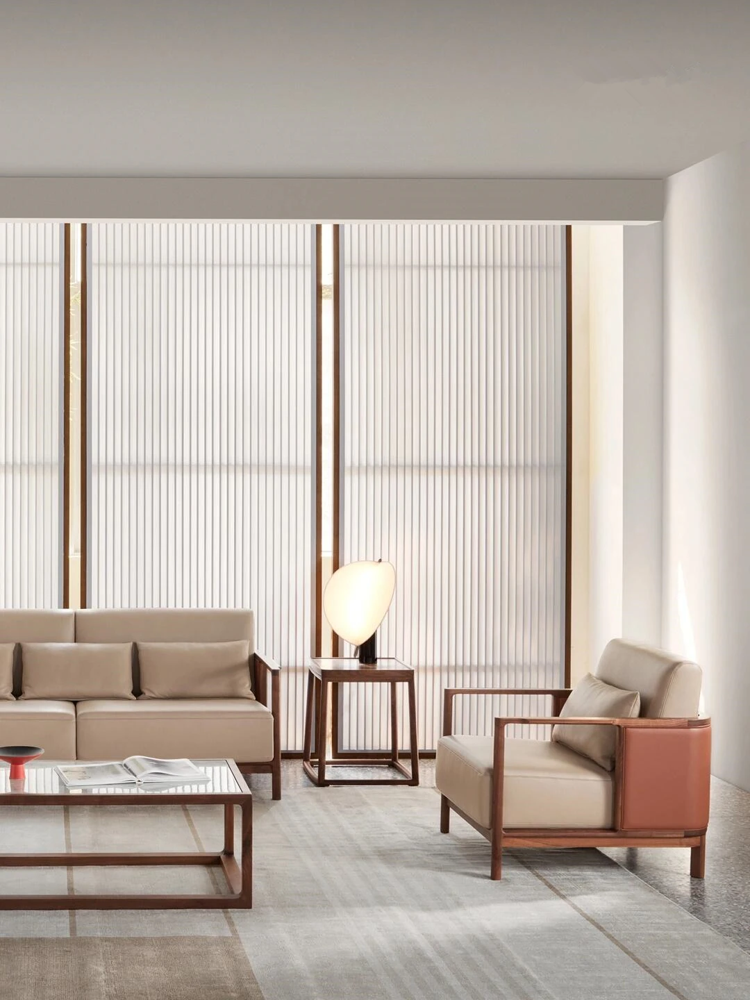 Modern Eastern New Chinese Solid Wood Sofa Set - Stylish Straight Sofa for Small to Medium Spaces, Perfect for Luxury Villas and Elegant Living Rooms