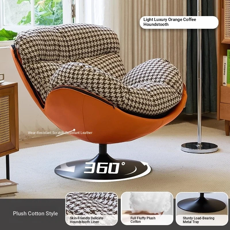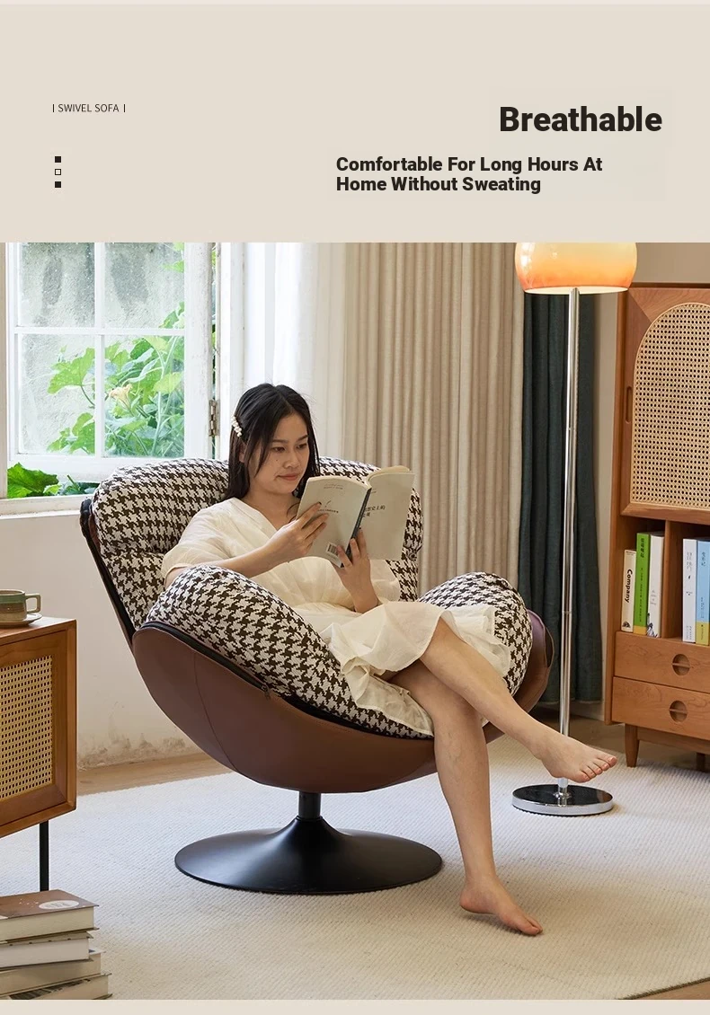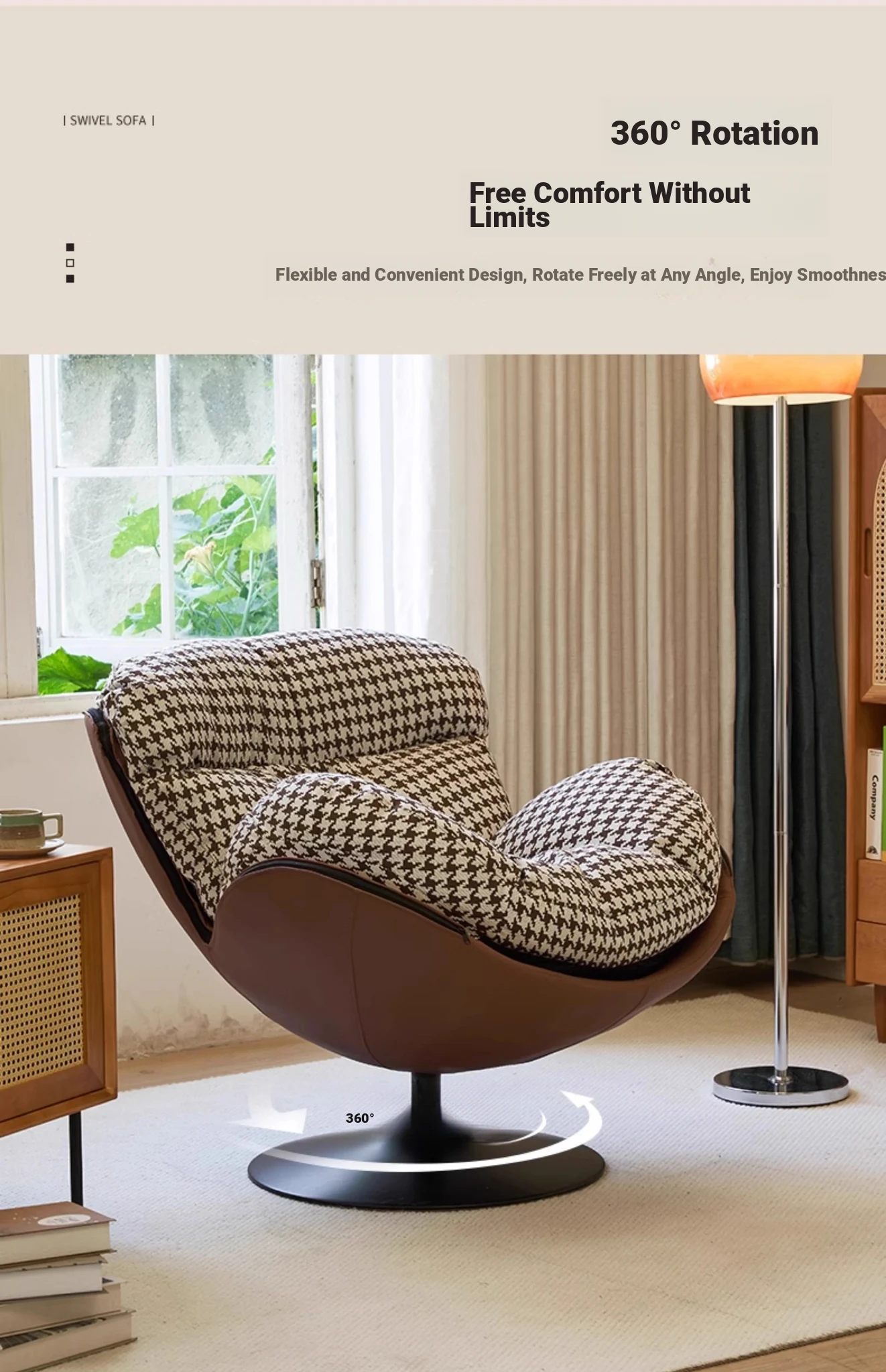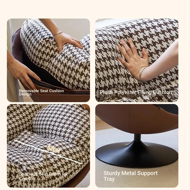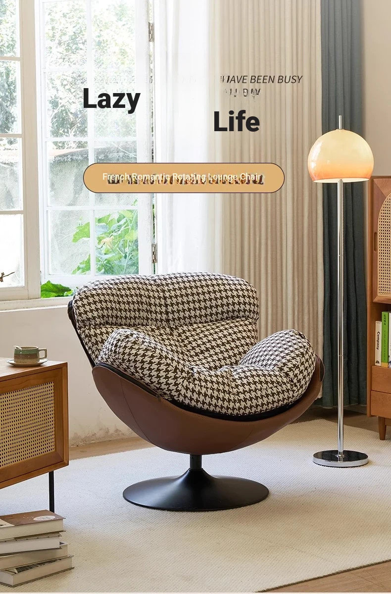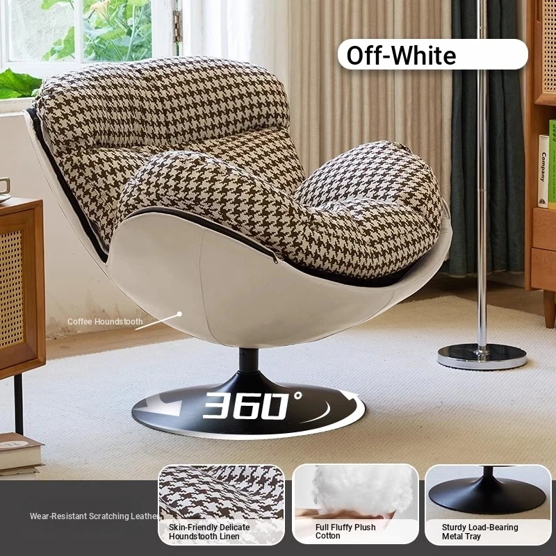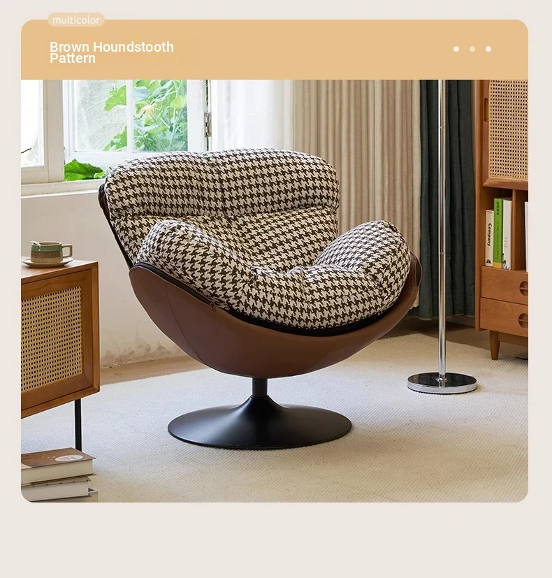Modern Eggshell Chair - Stylish Houndstooth Fabric Armchair for Home, Retro Lazy Sofa with Rotating Feature, Perfect for Relaxation!