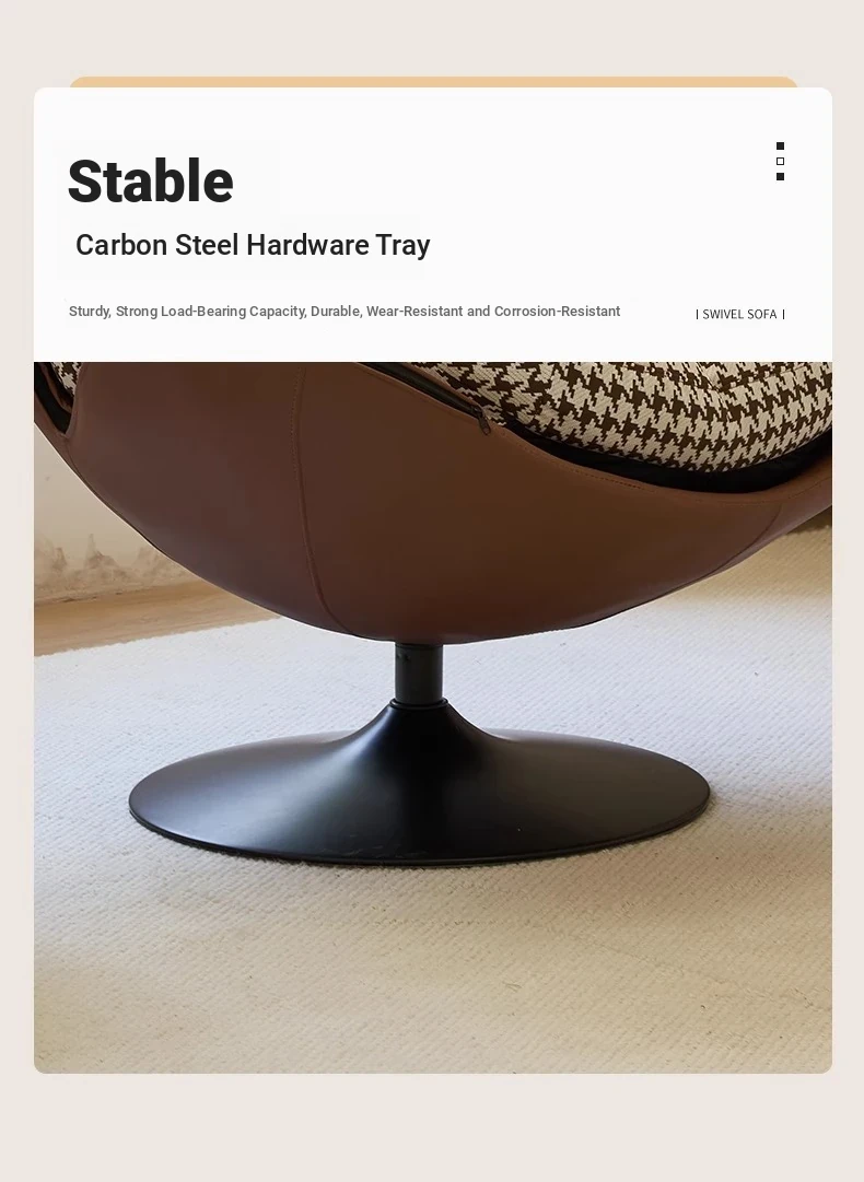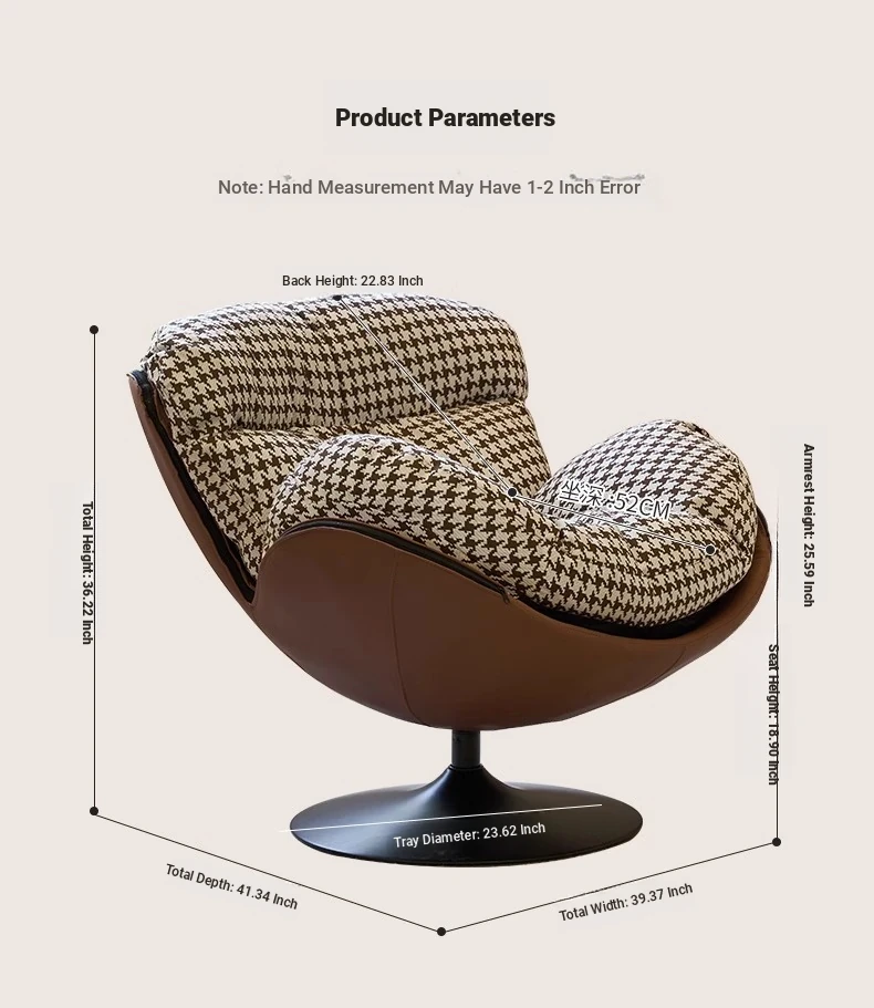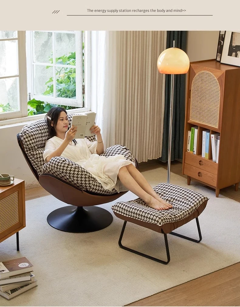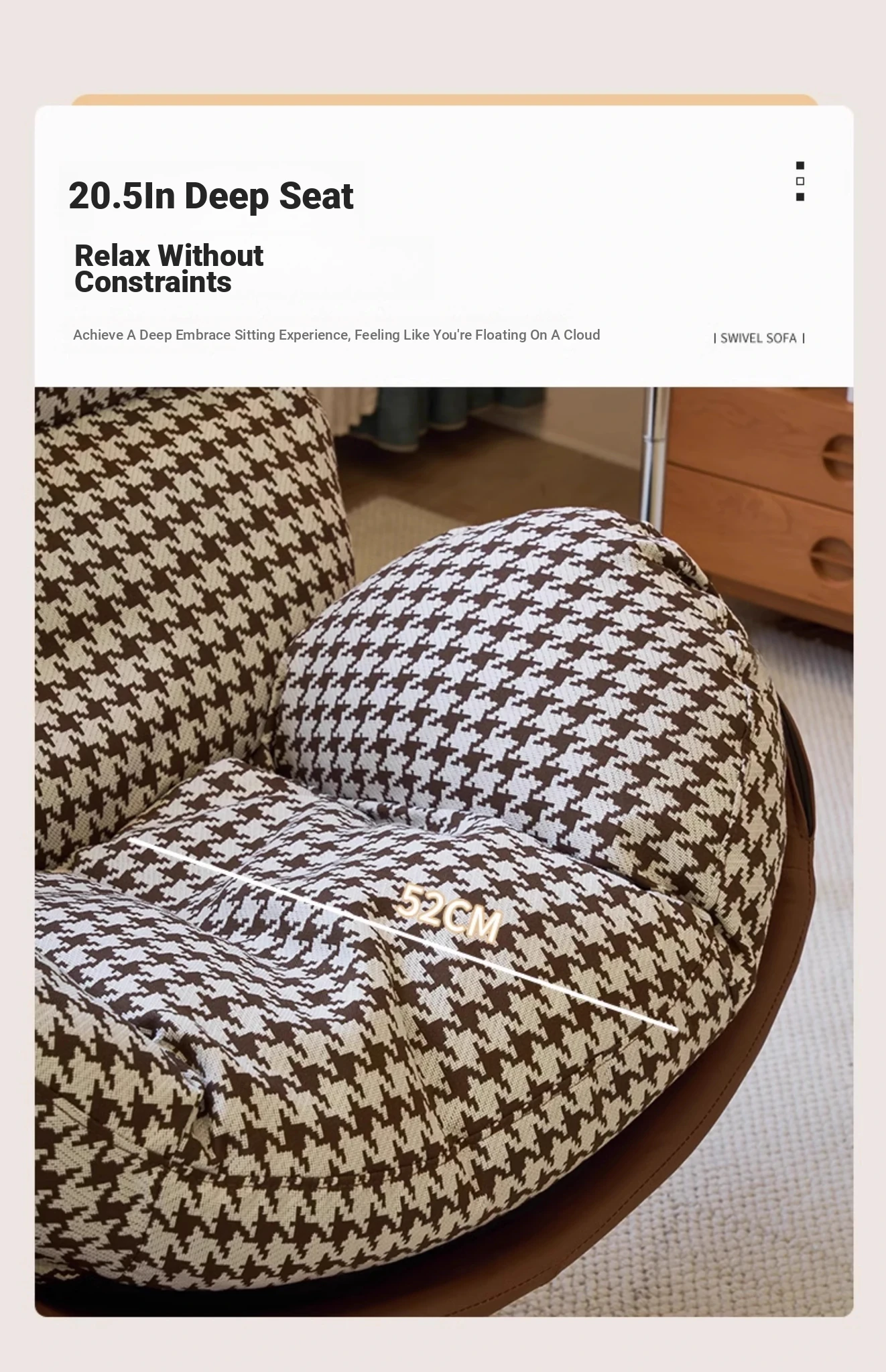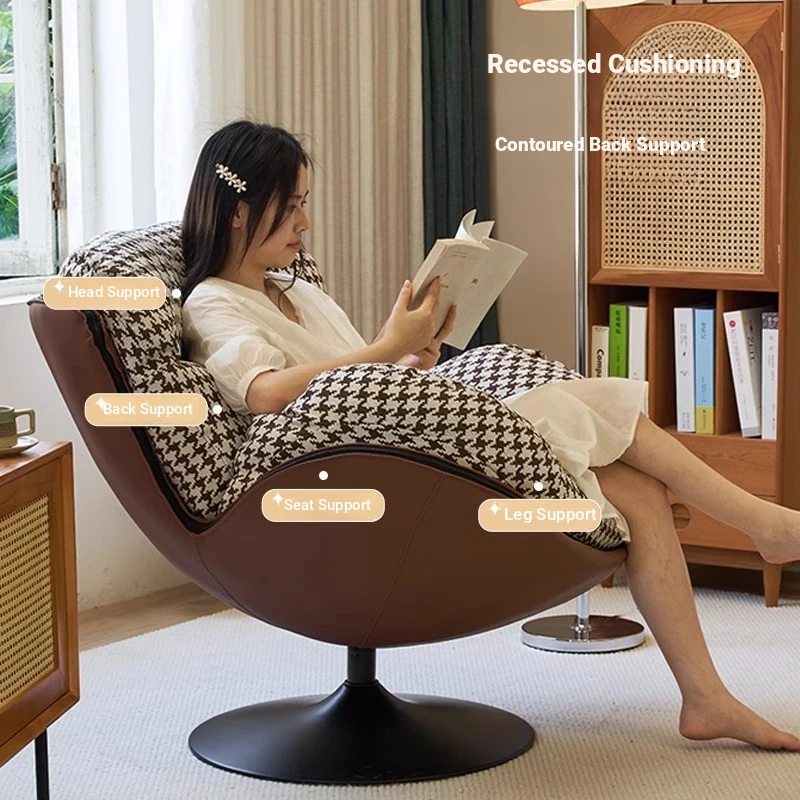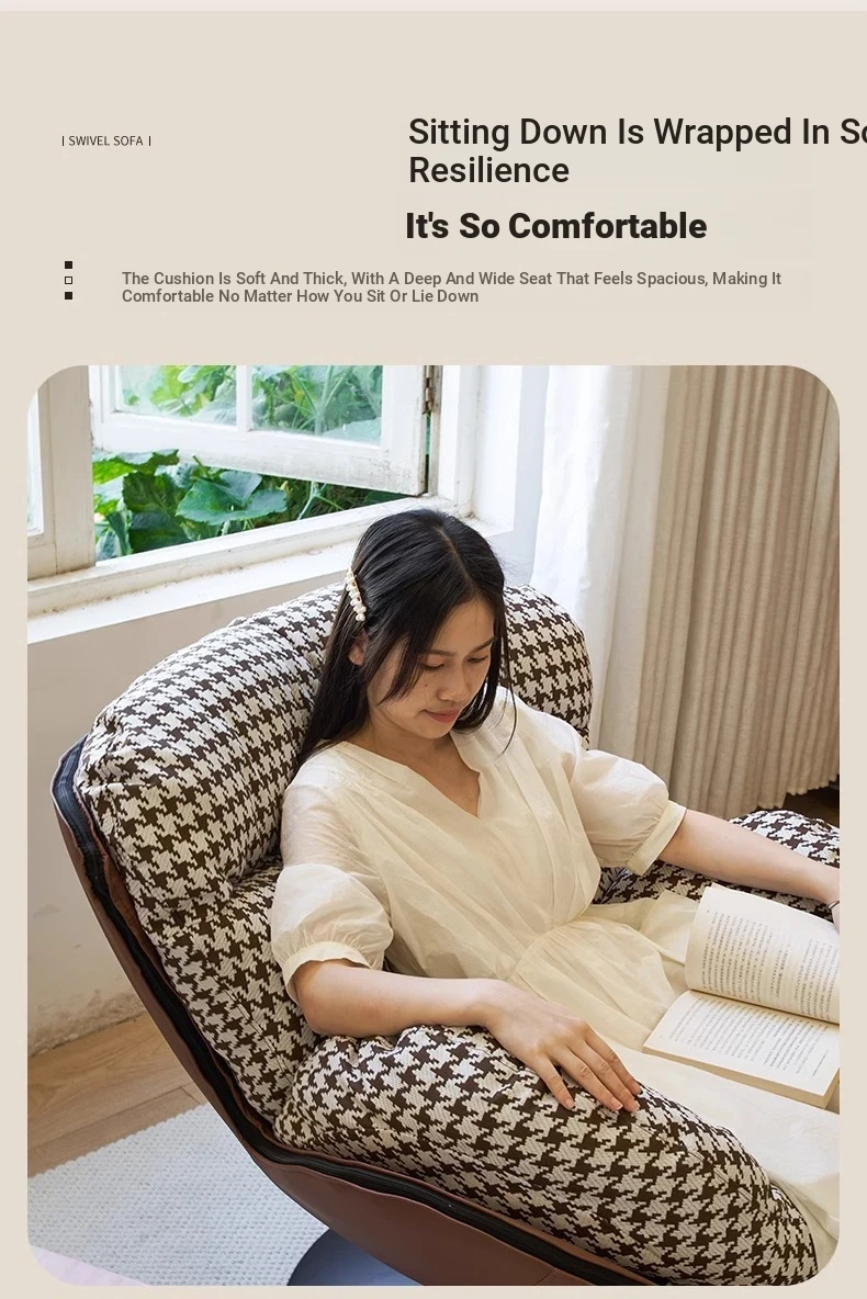 Modern Eggshell Chair - Stylish Houndstooth Fabric Armchair for Home, Retro Lazy Sofa with Rotating Feature, Perfect for Relaxation!