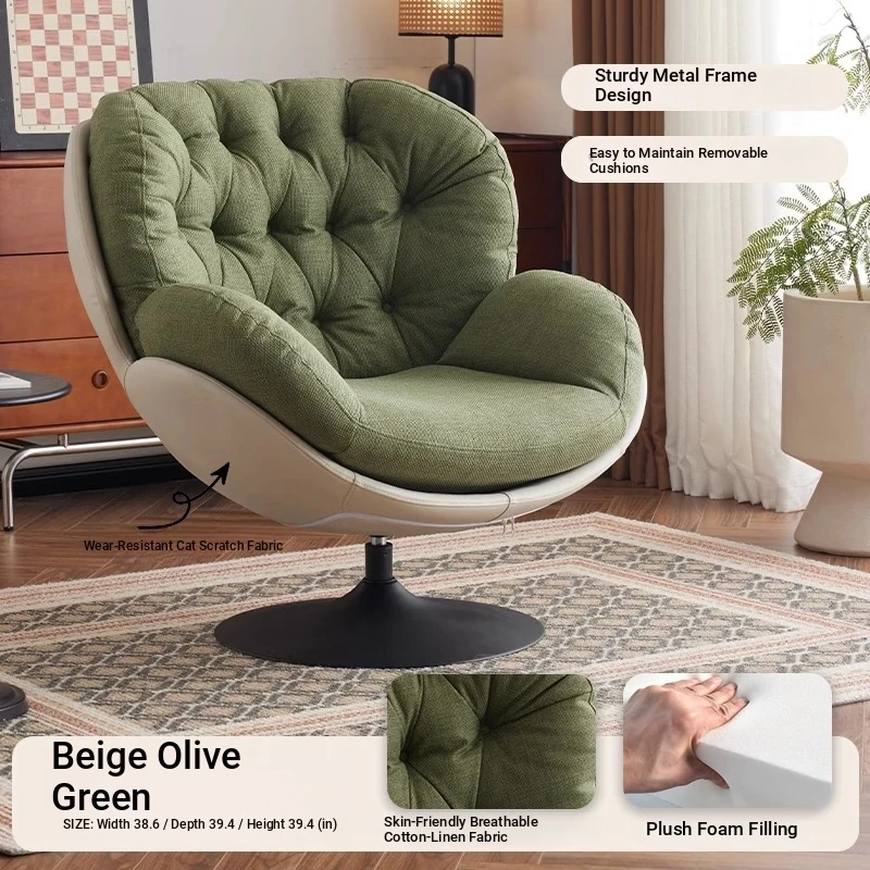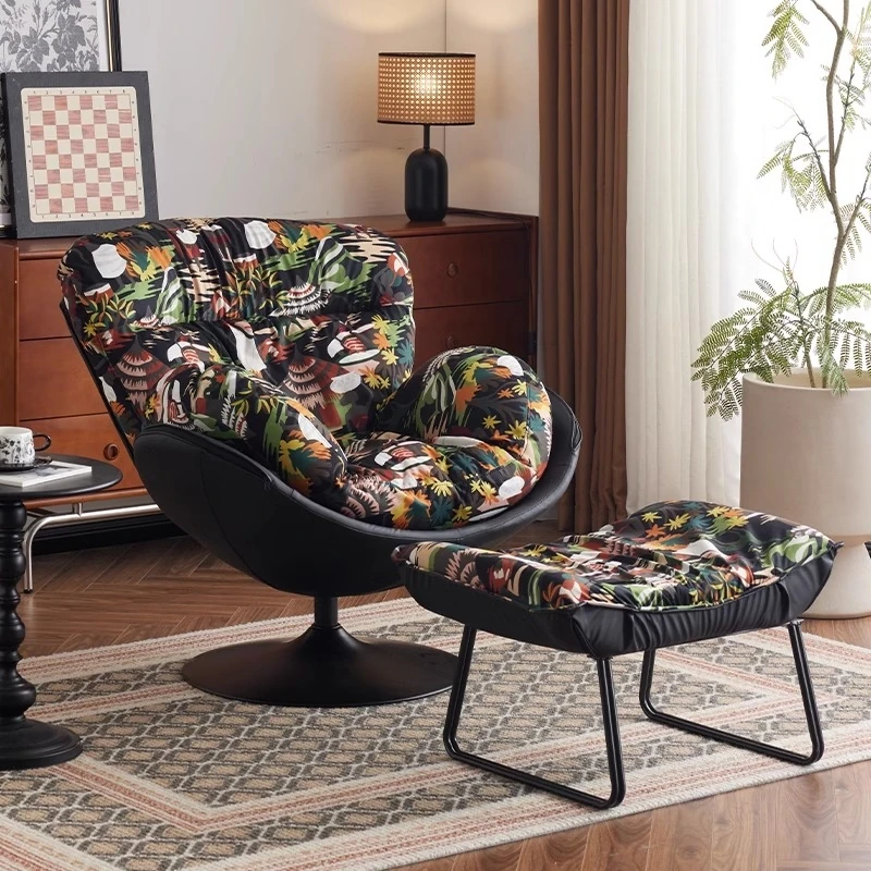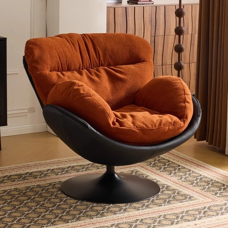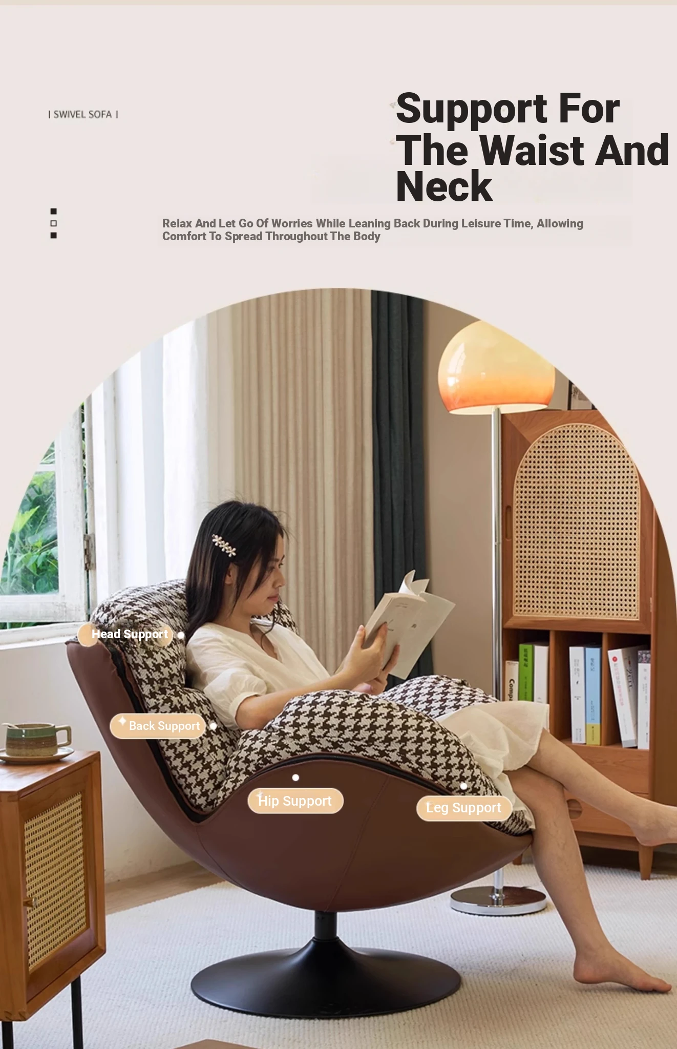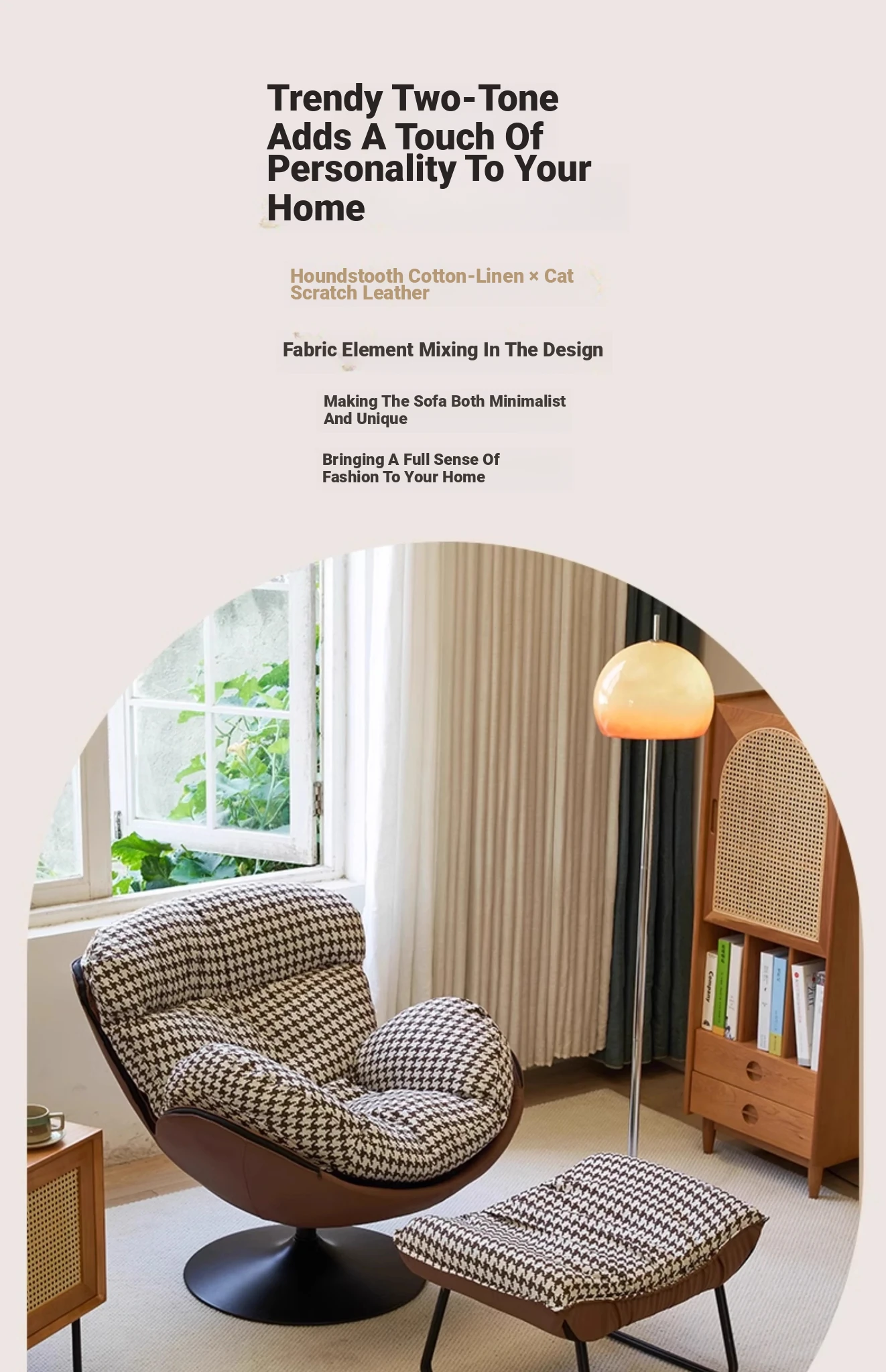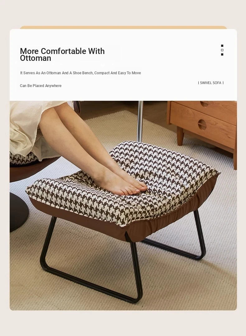 Modern Eggshell Chair - Stylish Houndstooth Fabric Armchair for Home, Retro Lazy Sofa with Rotating Feature, Perfect for Relaxation!