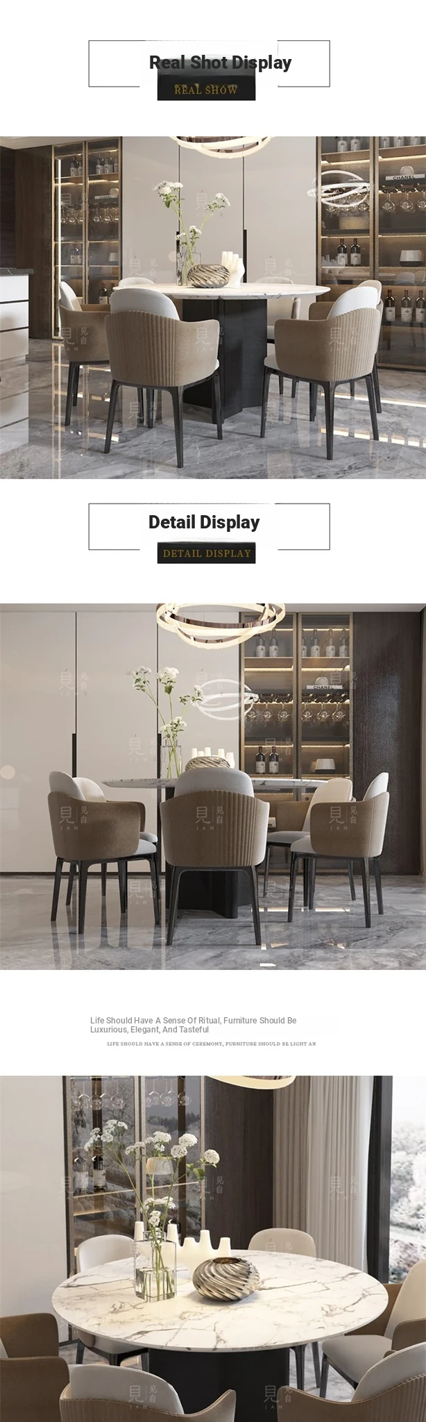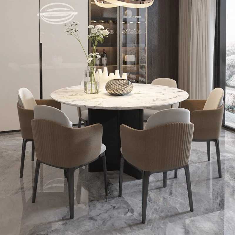 Modern Italian Luxury Dining Table and Chair Set - Minimalist Marble Round Table with Lazy Susan for Home Use, Perfect for Small Spaces
