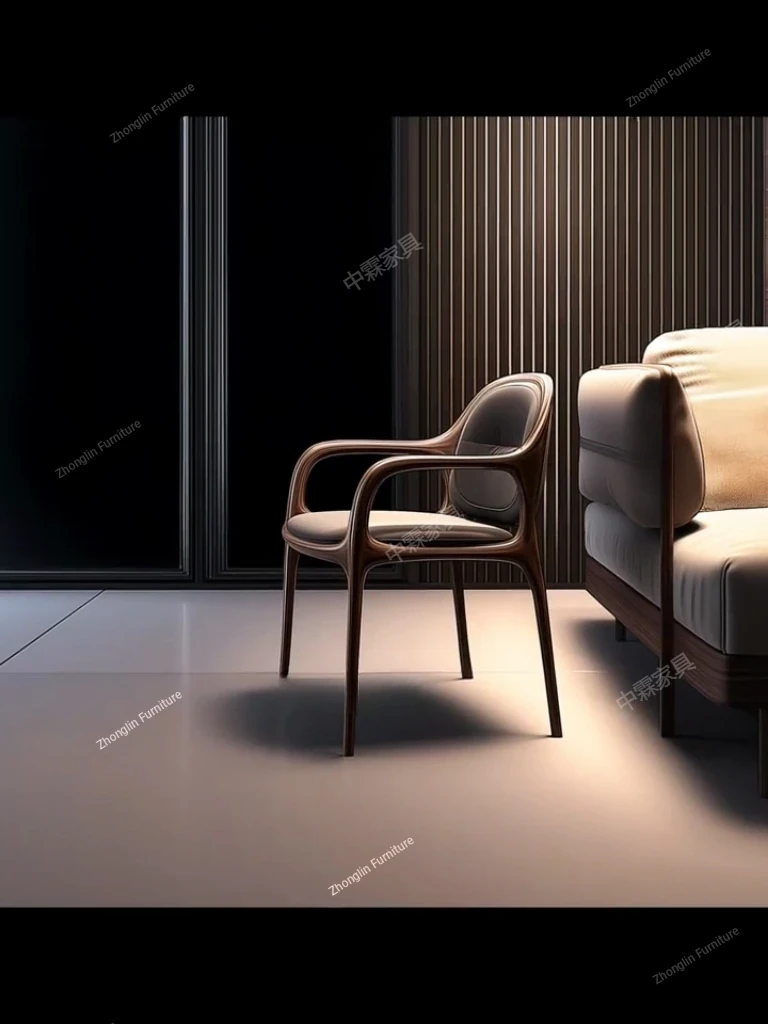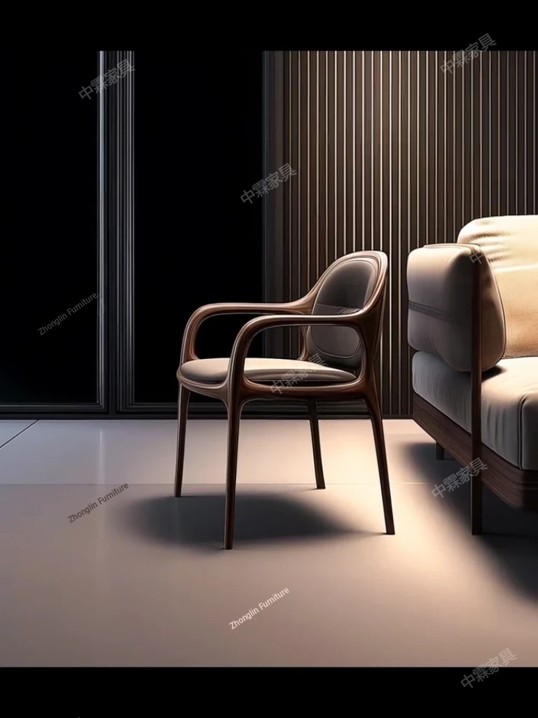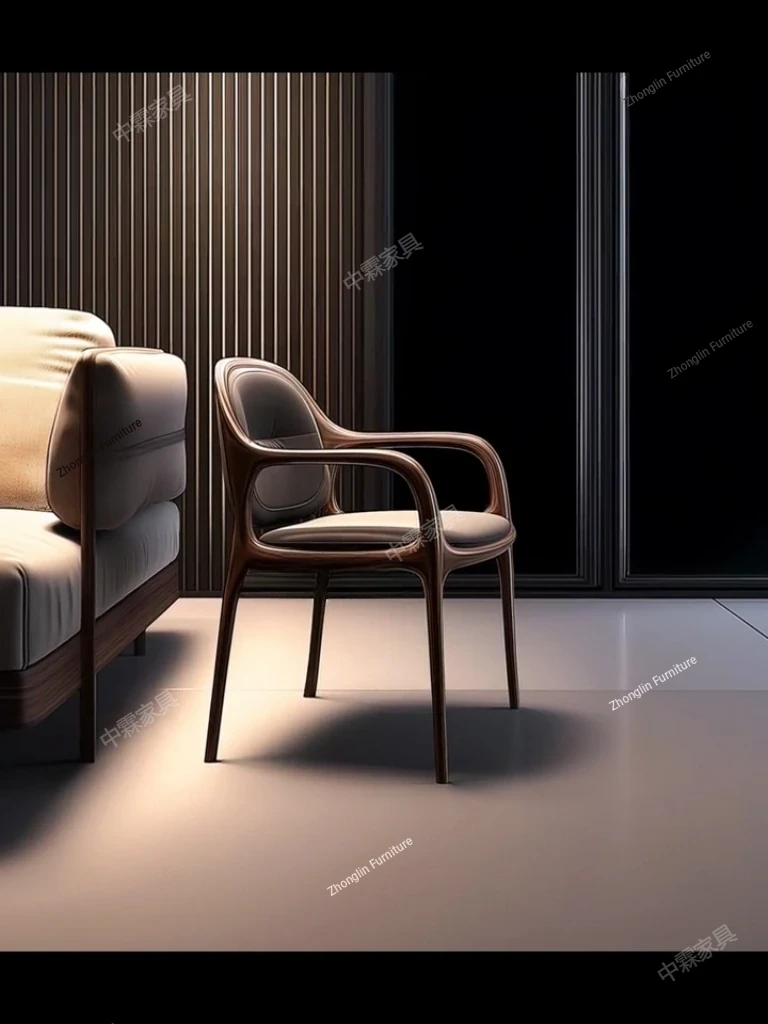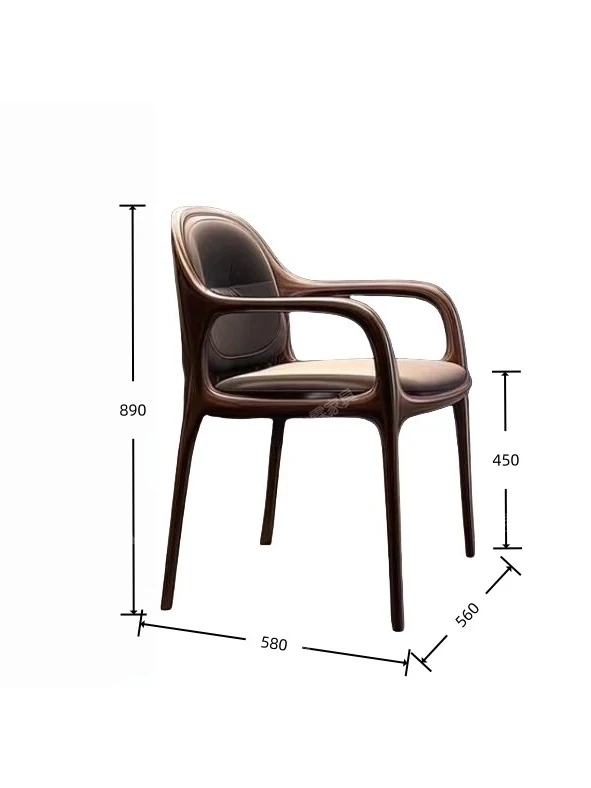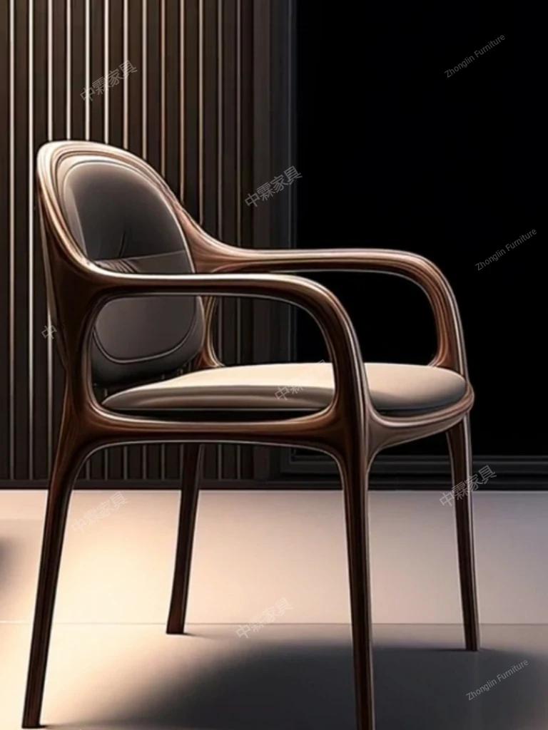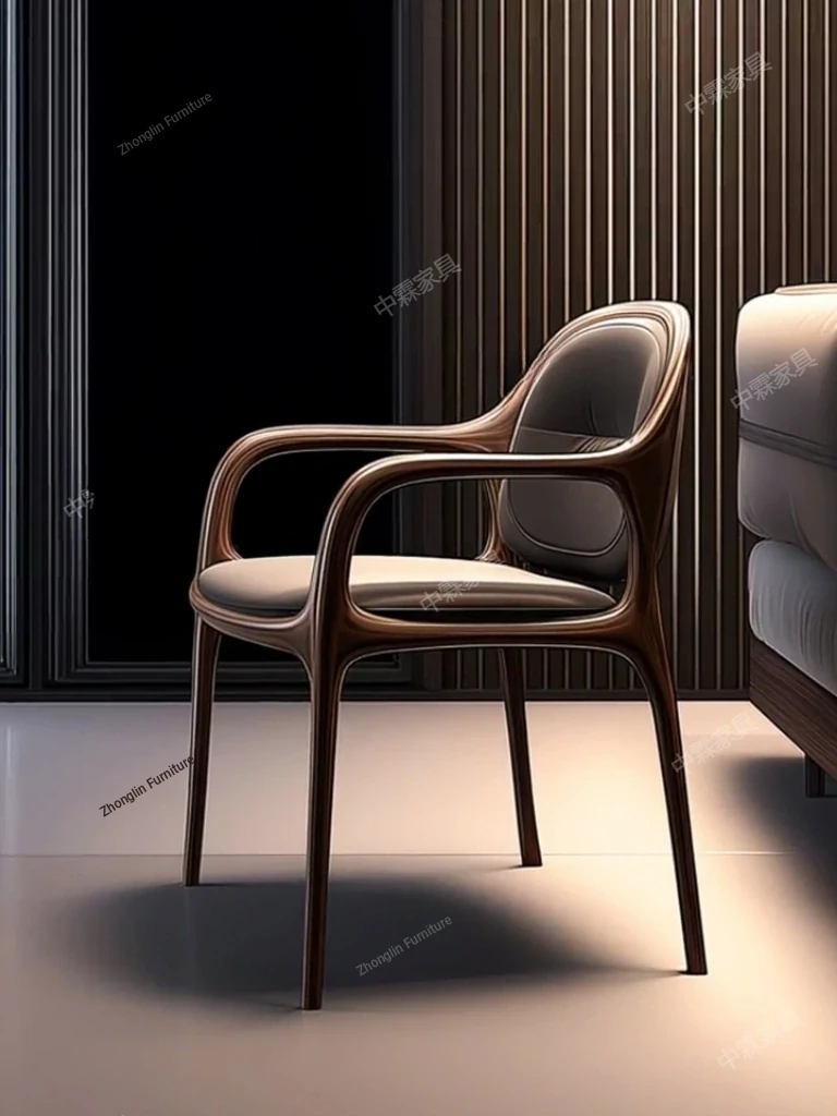 Modern Luxury Solid Wood Dining Chair with Real Leather Upholstery - North American Black Walnut Backrest Chair for Desk, Tea, and Single Leisure Sofa Use