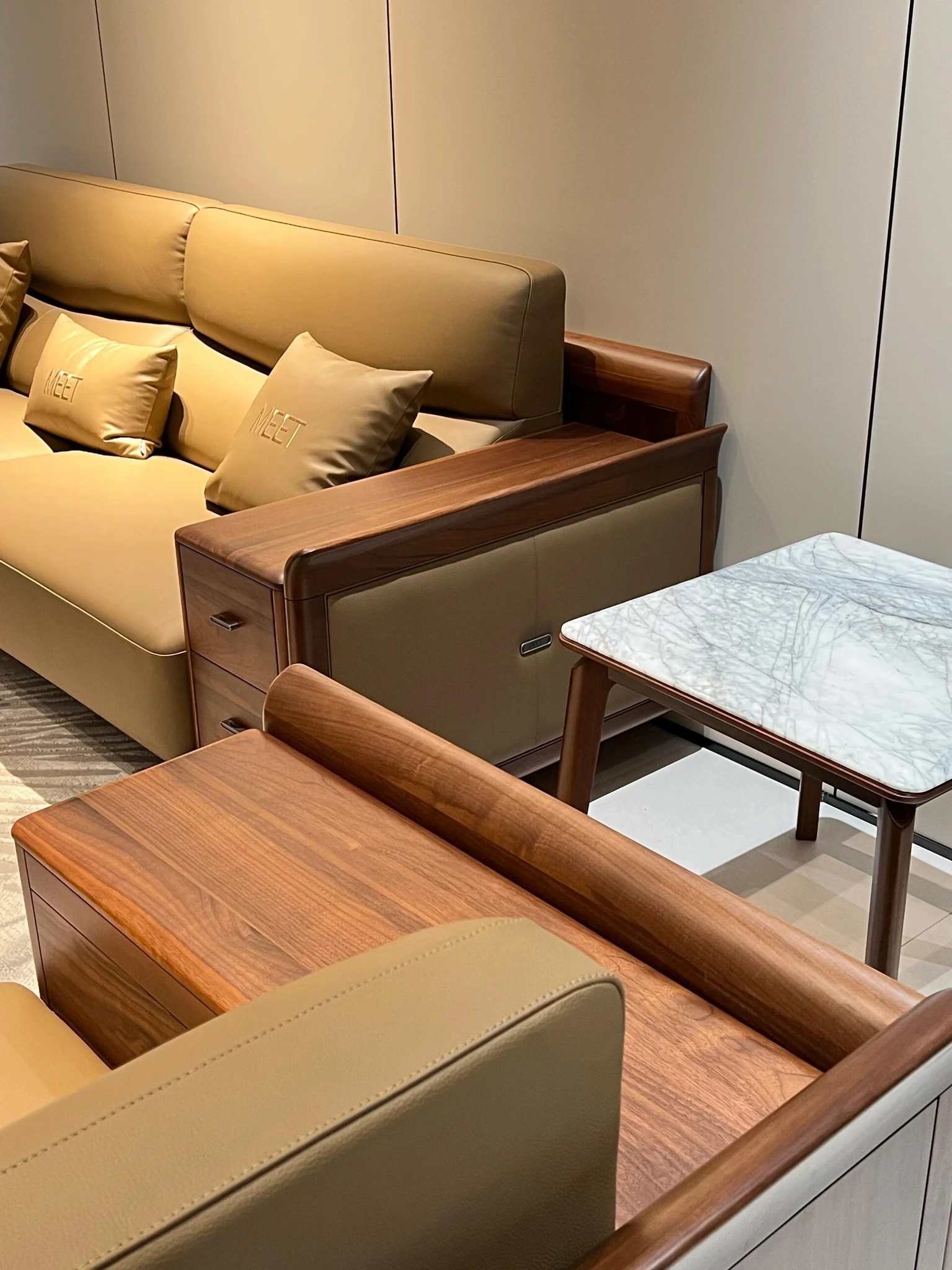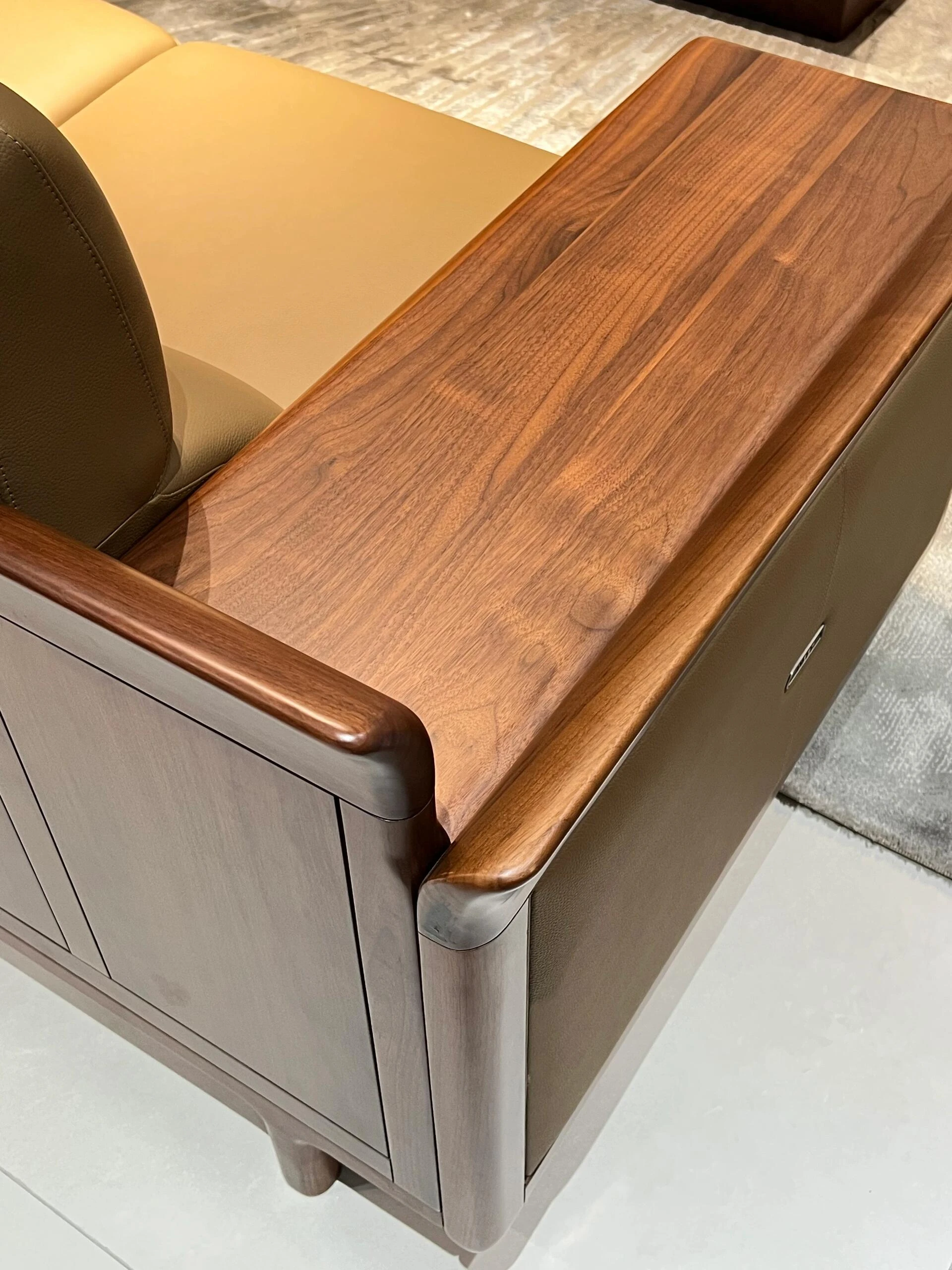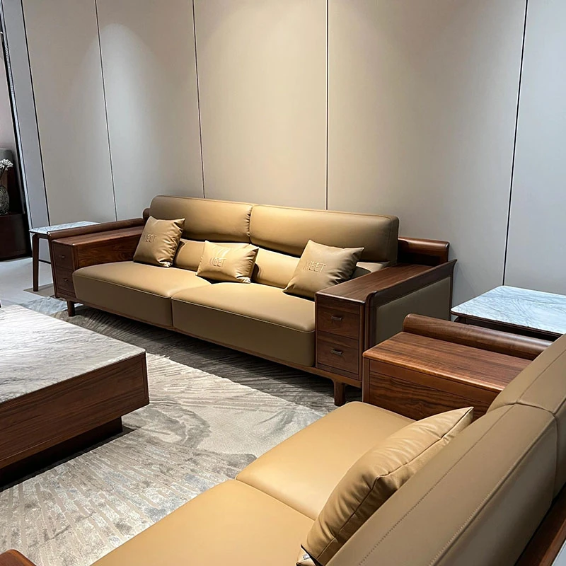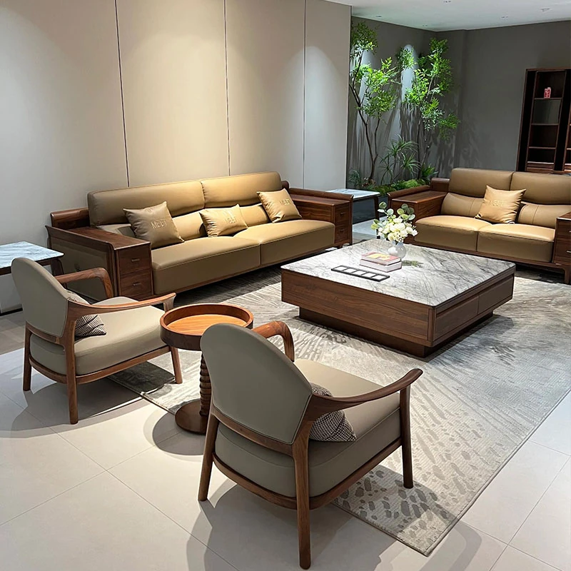 Modern Minimalist New Chinese Style Black Walnut Solid Wood Sofa Set - Elegant Italian-Inspired Design for Contemporary Living Rooms, Perfect for Home Use