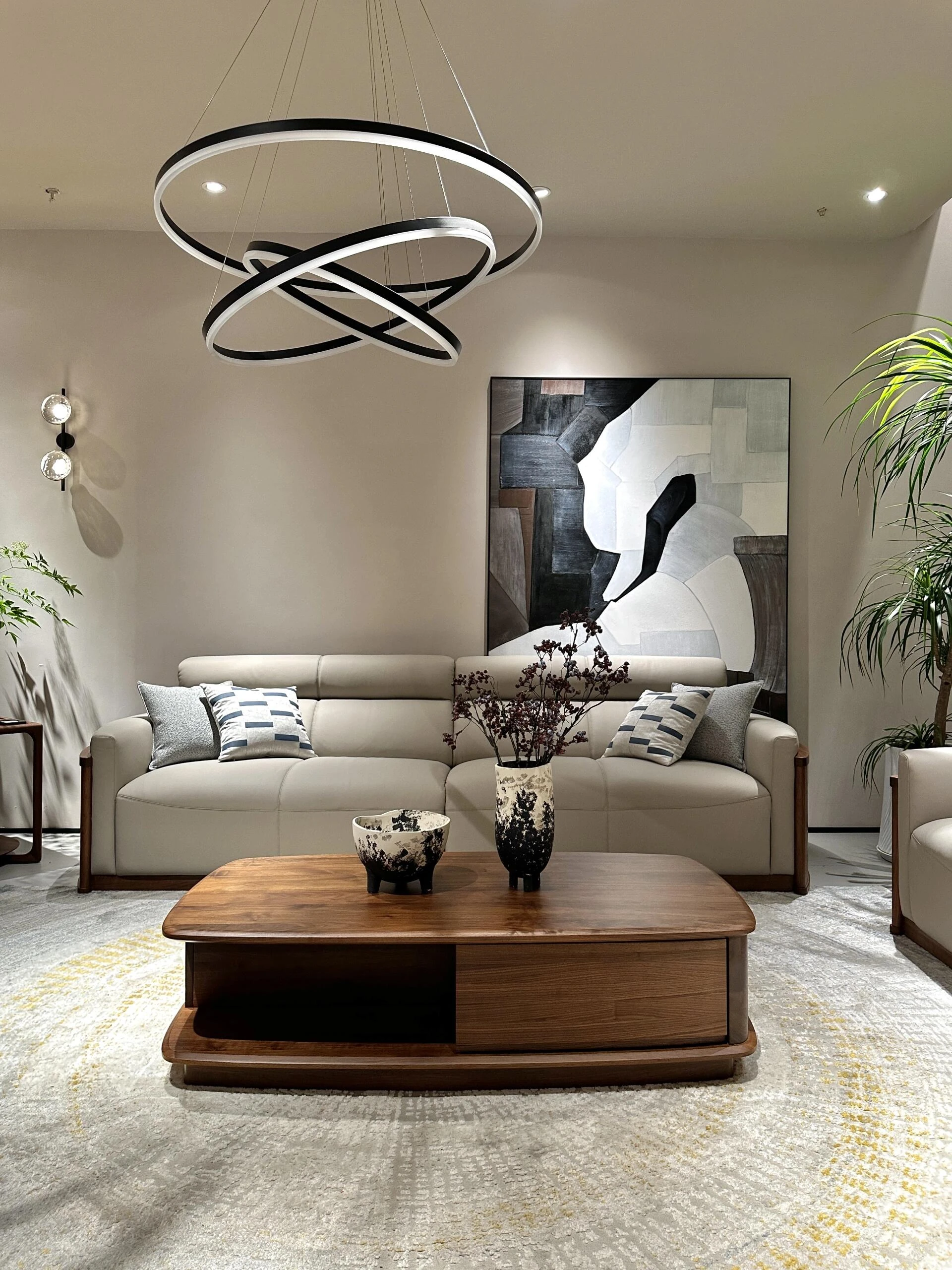 Modern Minimalist New Chinese Style Walnut Sofa Set - Solid Wood Couch Inspired by Song Dynasty Aesthetics for Your Living Room