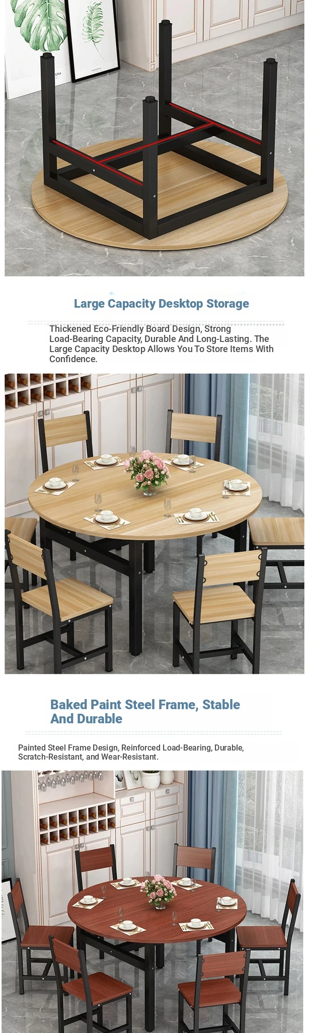 Modern Minimalist Round Dining Table and Chair Set - Perfect for Snack Bars, BBQs, Breakfast Places, and Fast Food Restaurants. Ideal for Small Spaces and Family Gatherings.