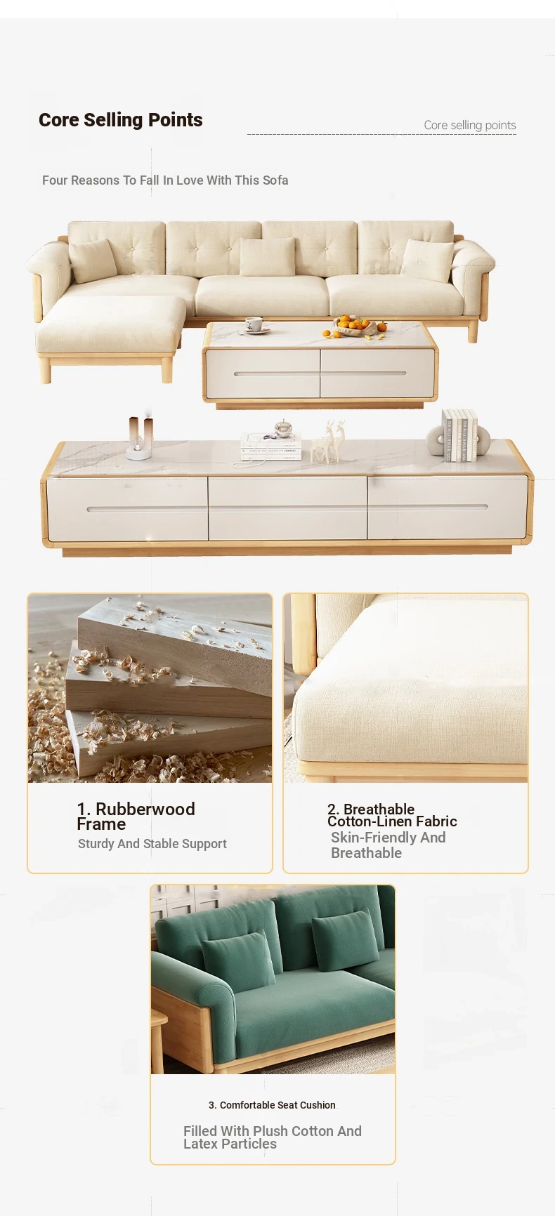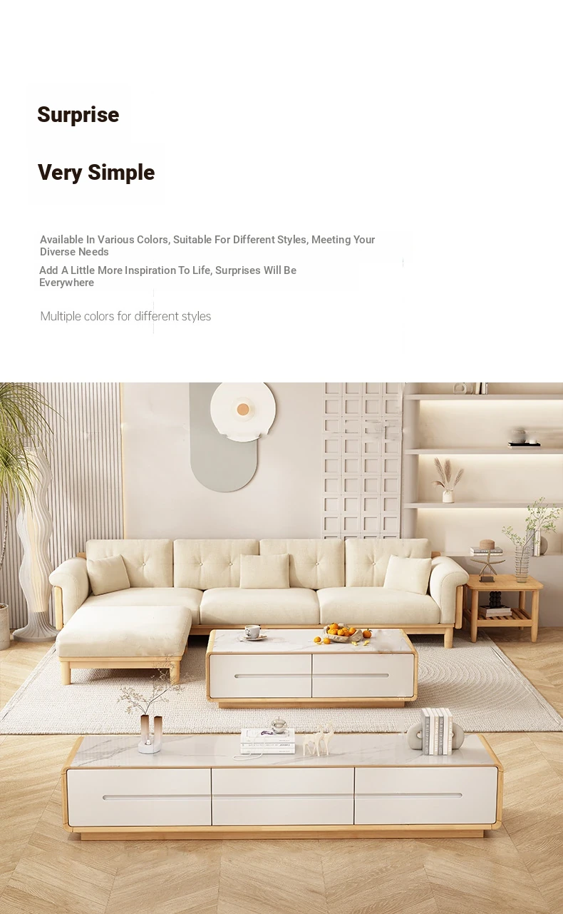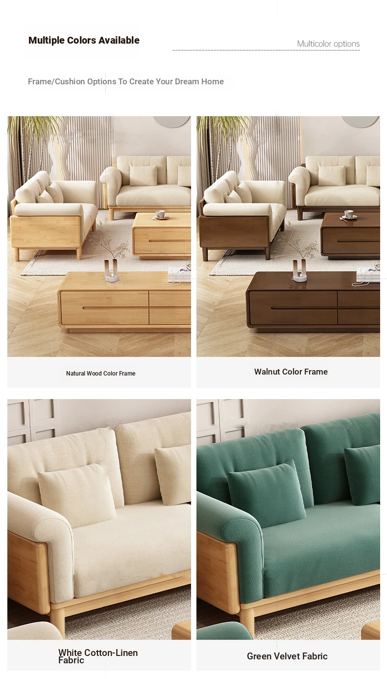 Modern Minimalist Solid Wood Fabric Sofa Set for Small Spaces - Scandinavian Style Cream White Living Room Furniture