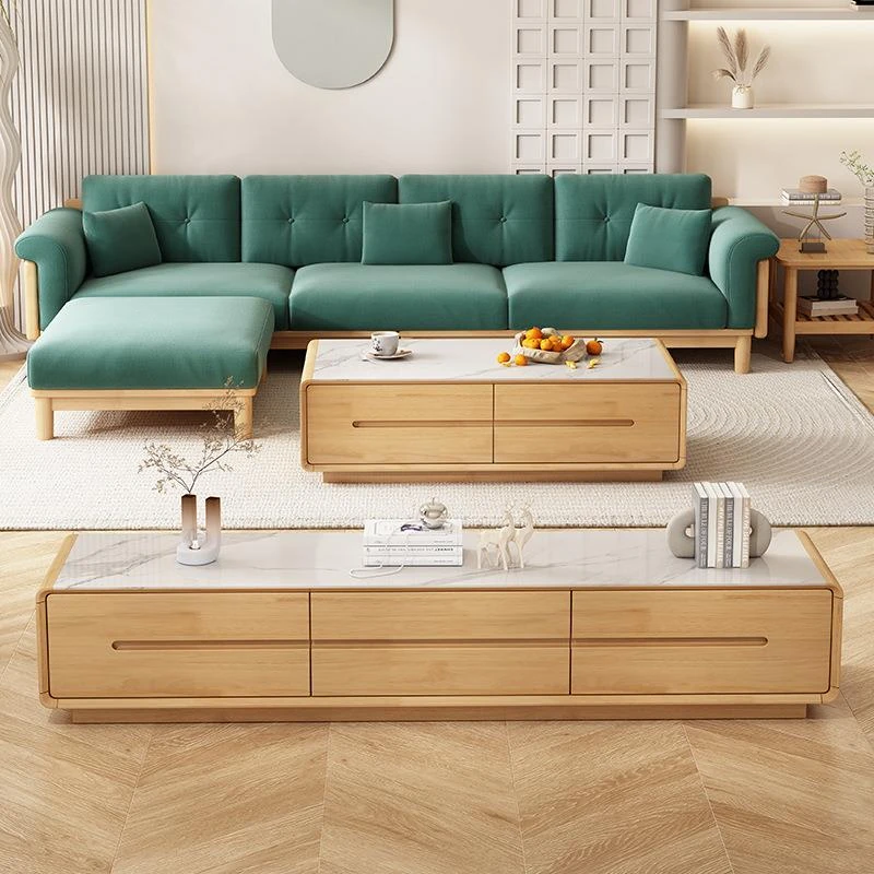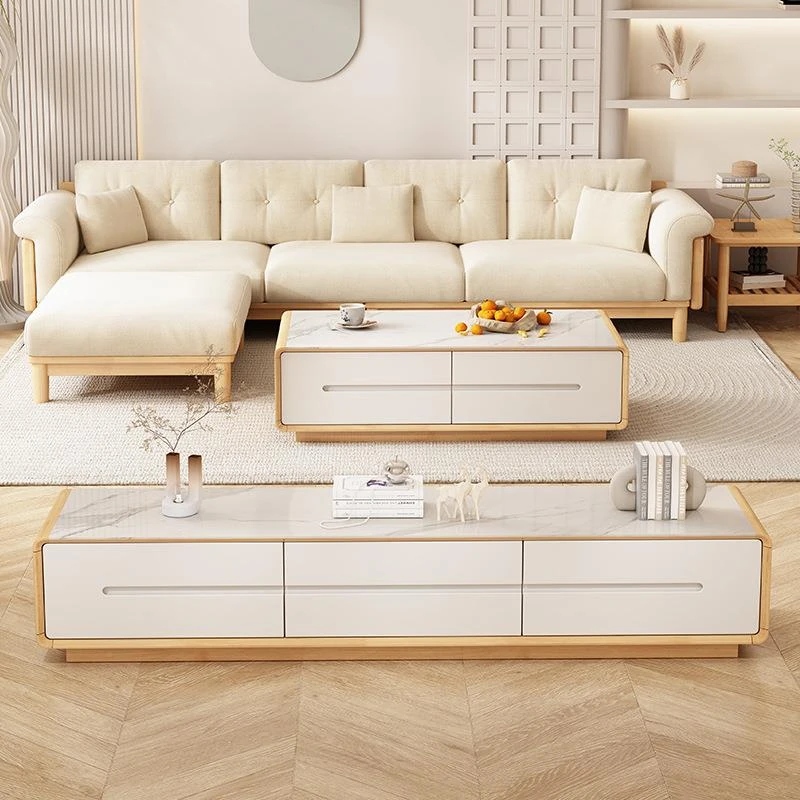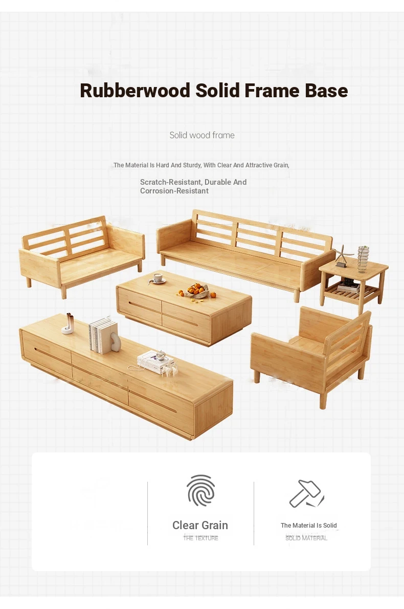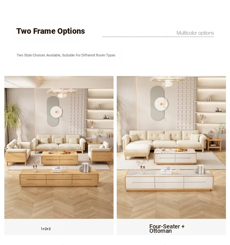 Modern Minimalist Solid Wood Fabric Sofa Set for Small Spaces - Scandinavian Style Cream White Living Room Furniture