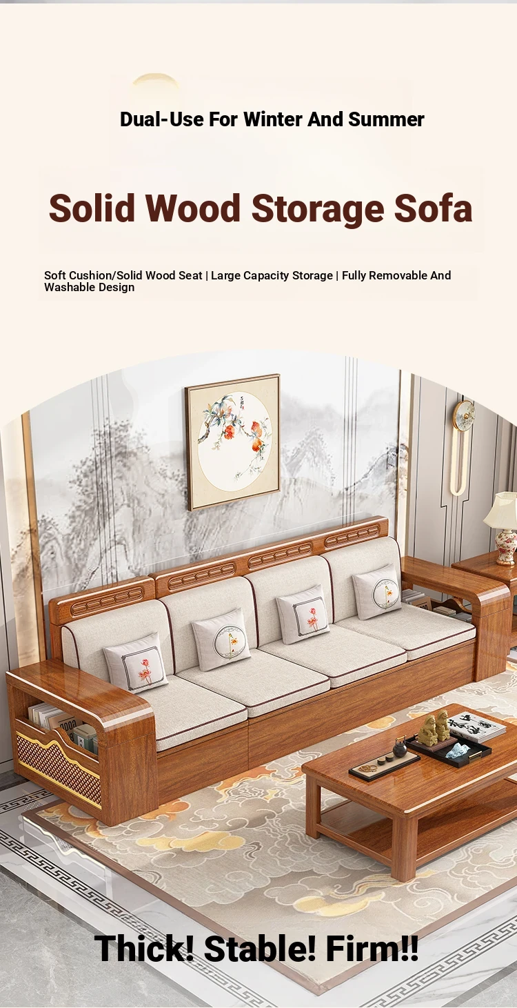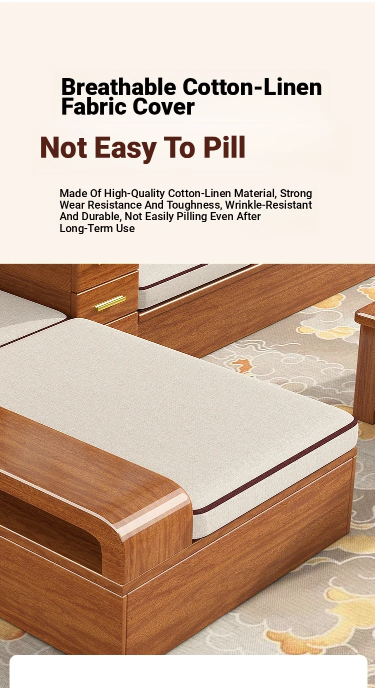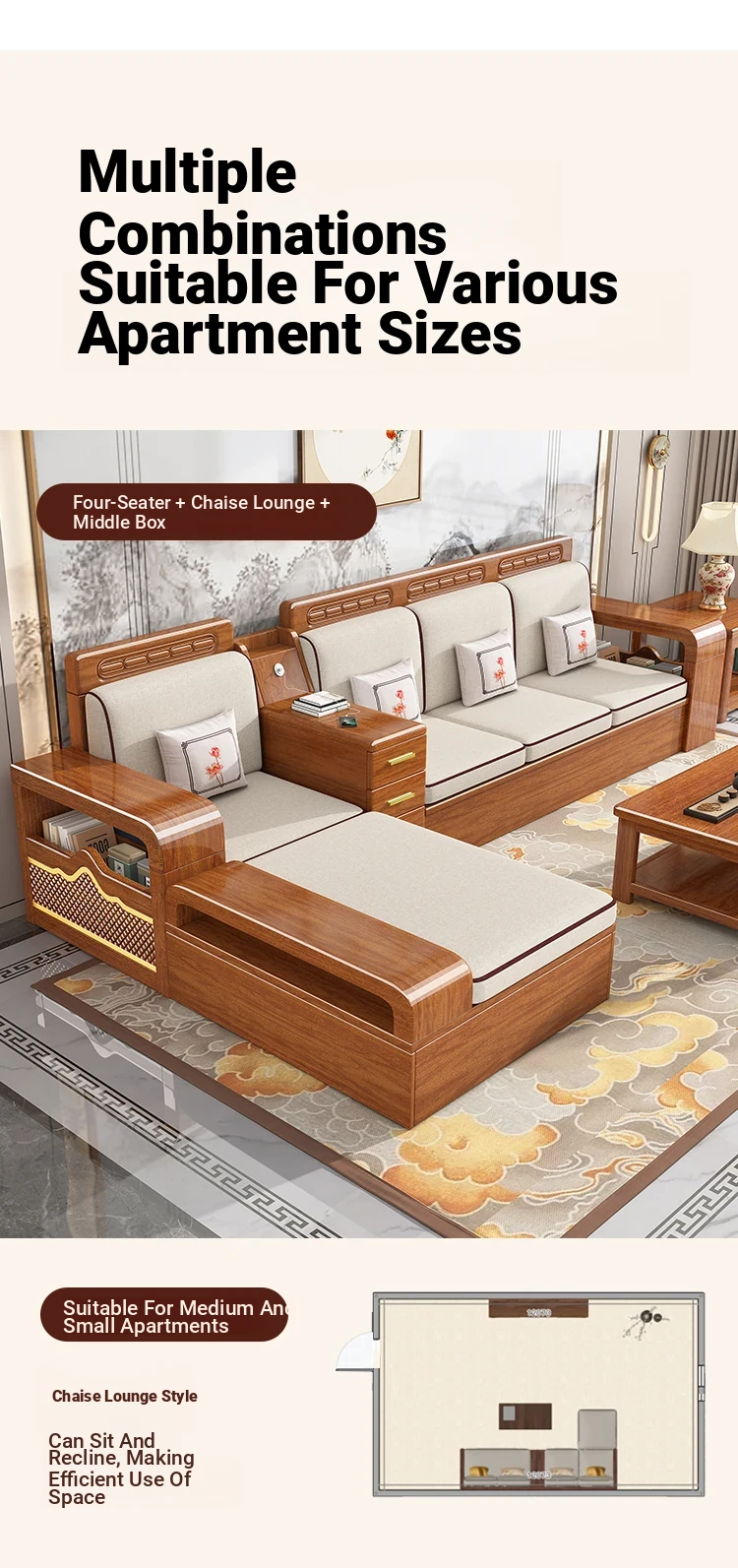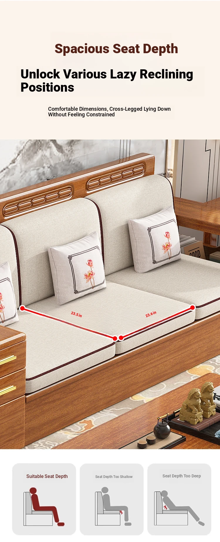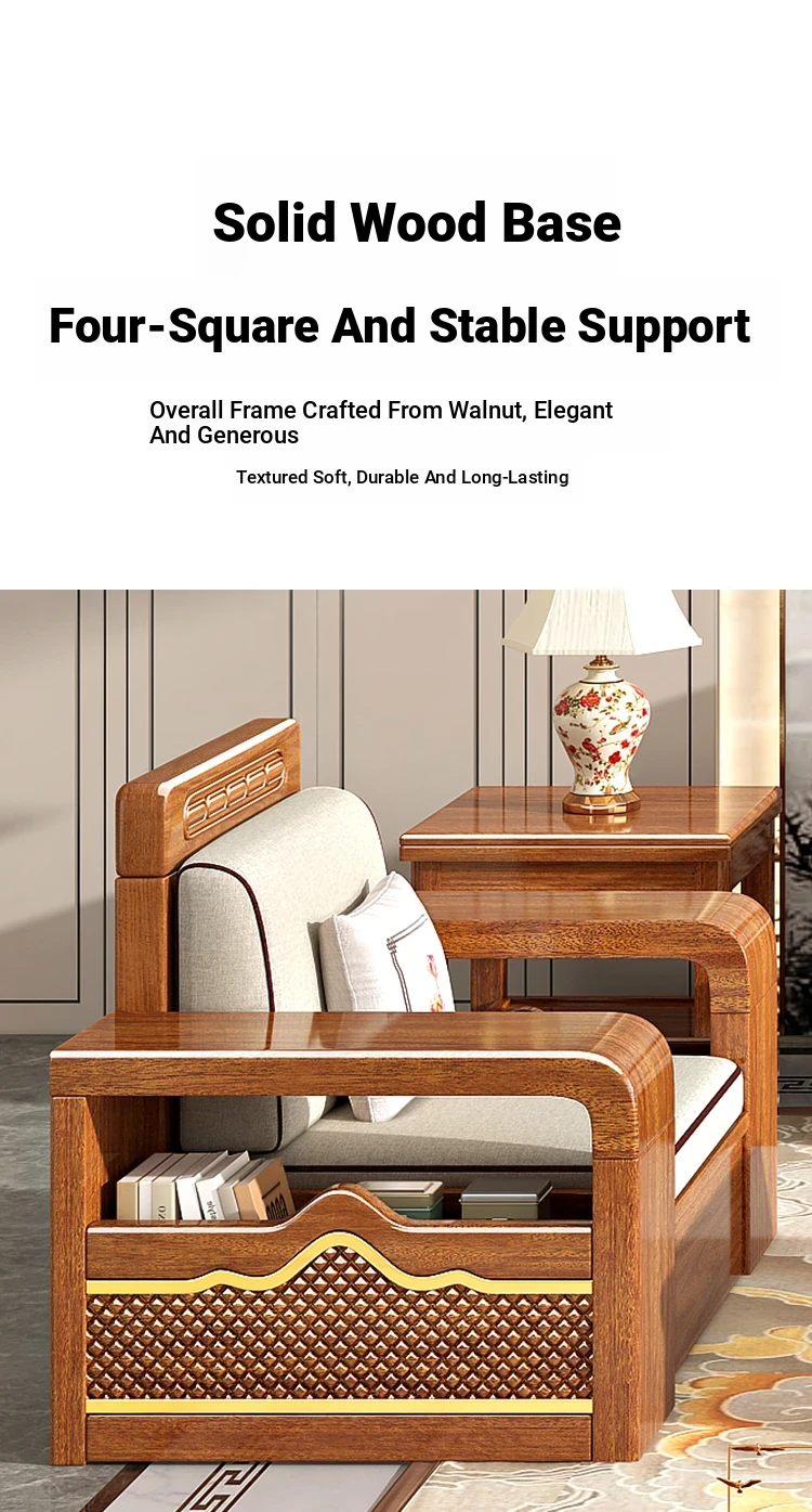 Modern Minimalist Solid Wood Sofa for Small Spaces – Three-Seater Walnut Wood Couch with Straight-Line Design, Perfect for Living Rooms and Compact Areas.