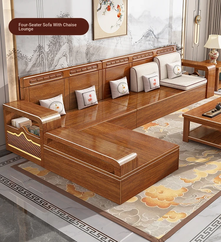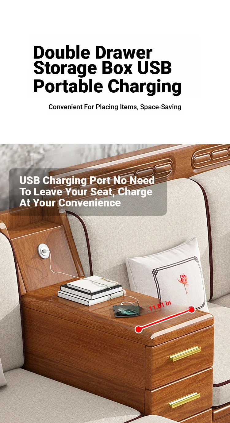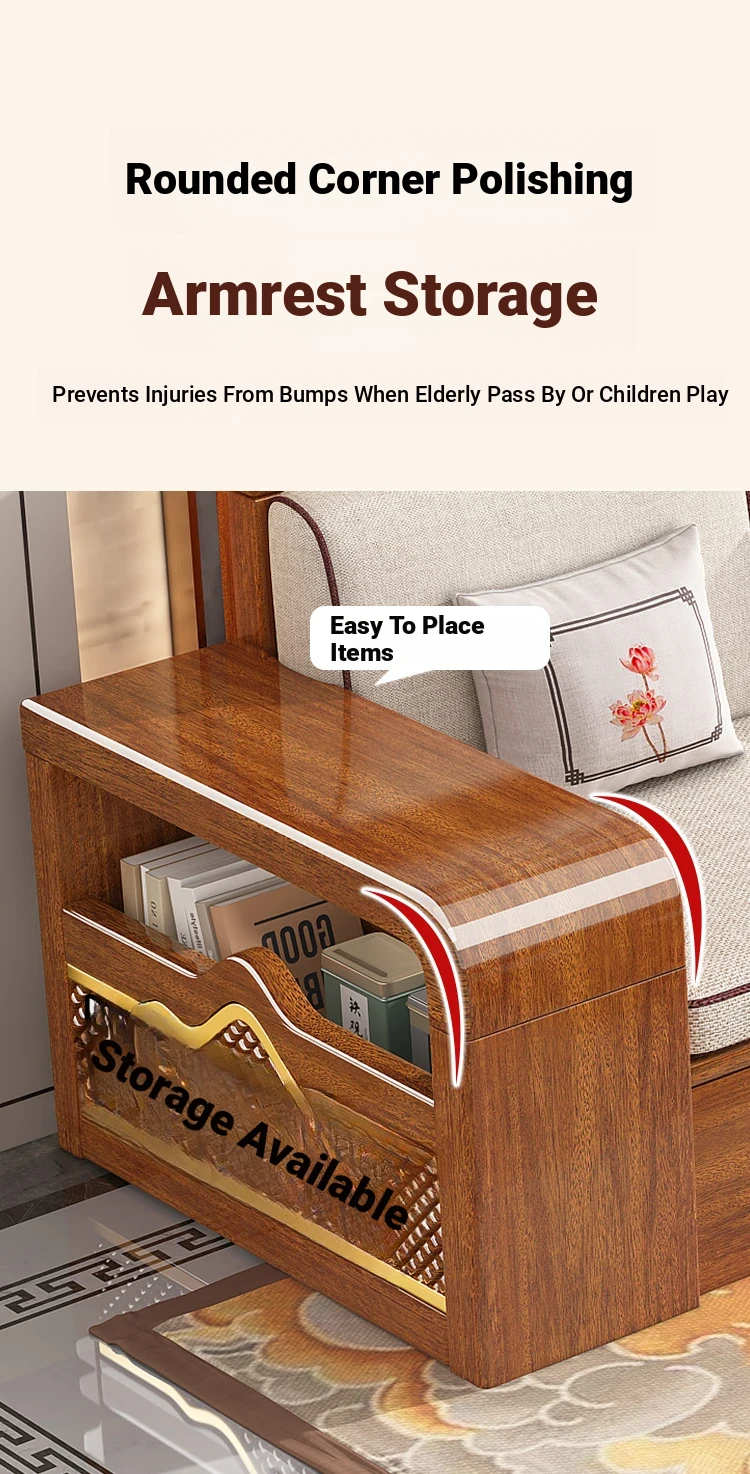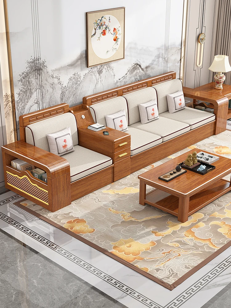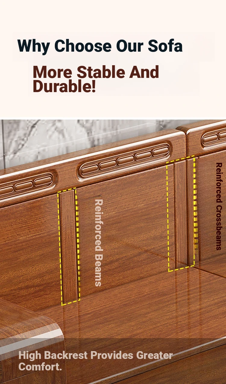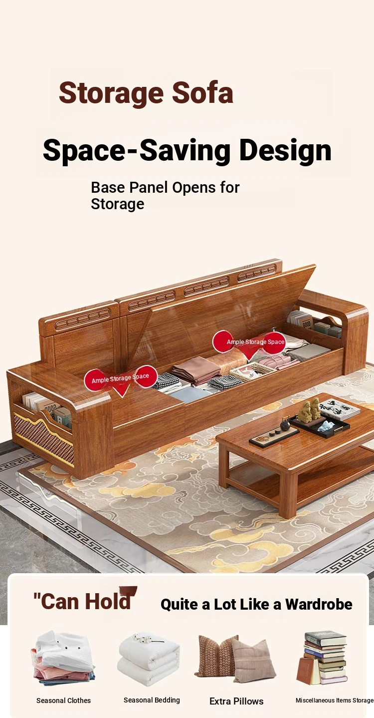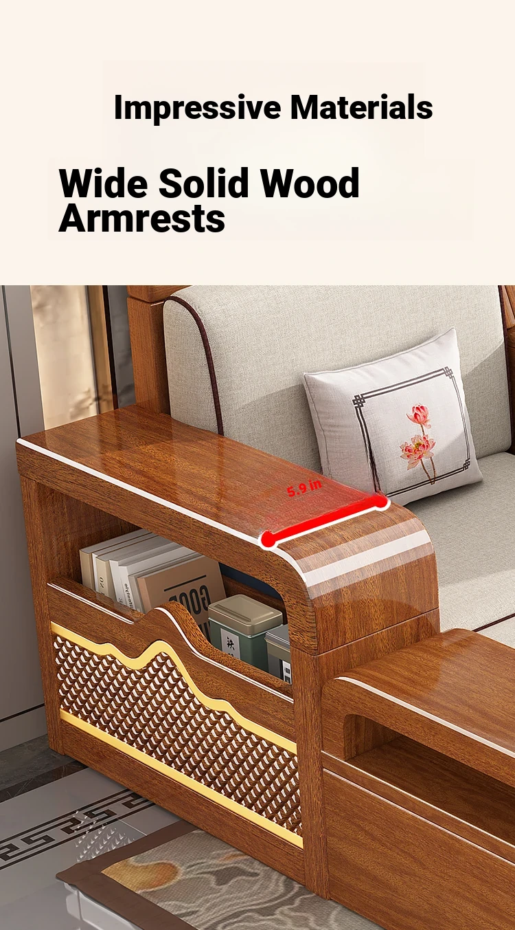 Modern Minimalist Solid Wood Sofa for Small Spaces – Three-Seater Walnut Wood Couch with Straight-Line Design, Perfect for Living Rooms and Compact Areas.
