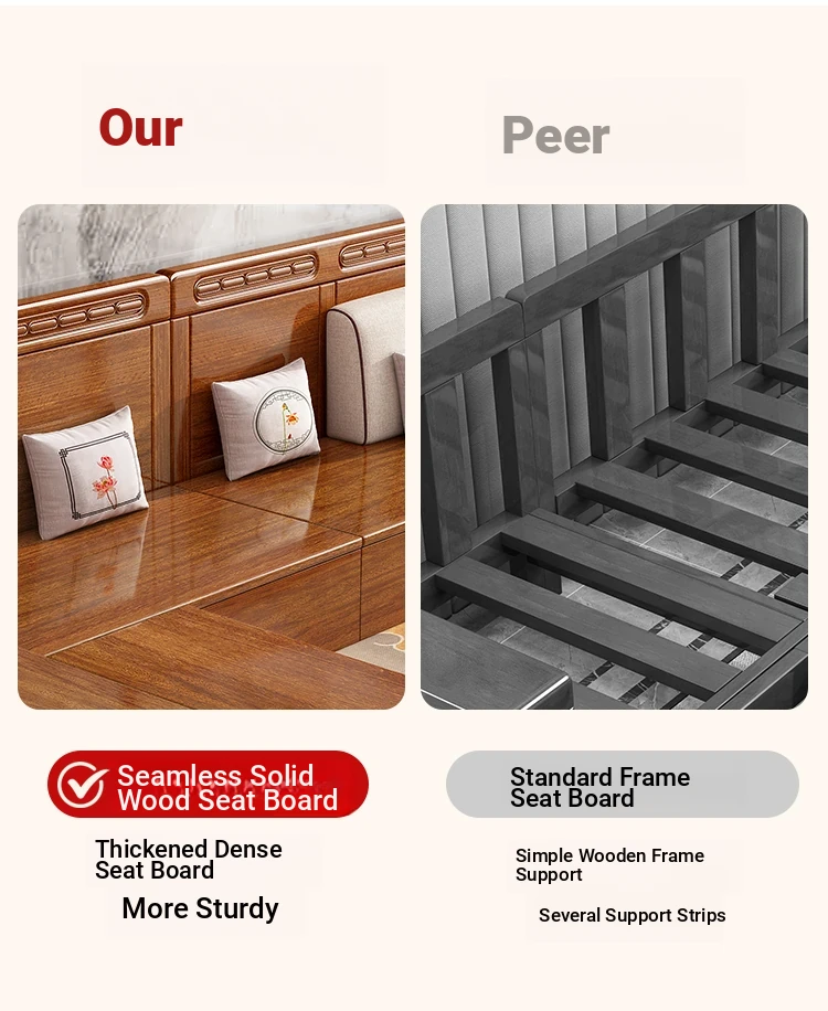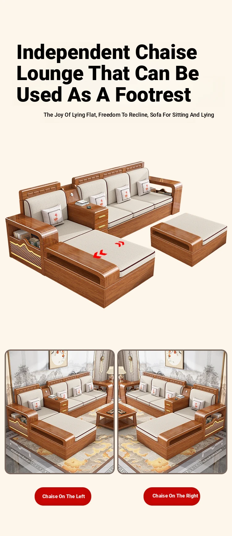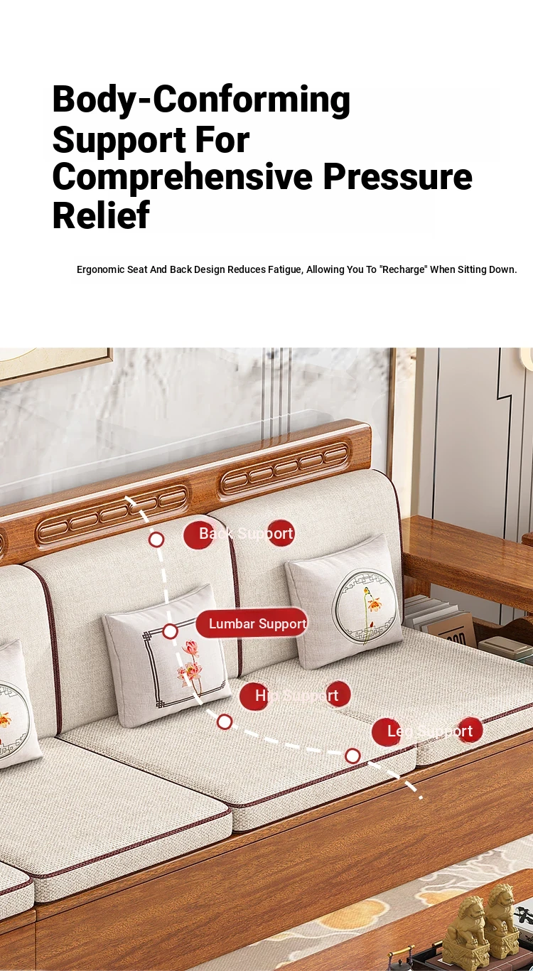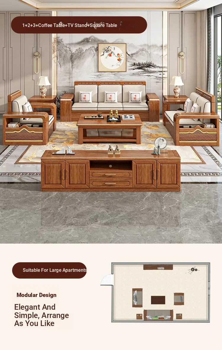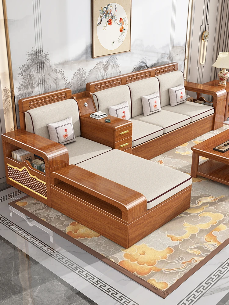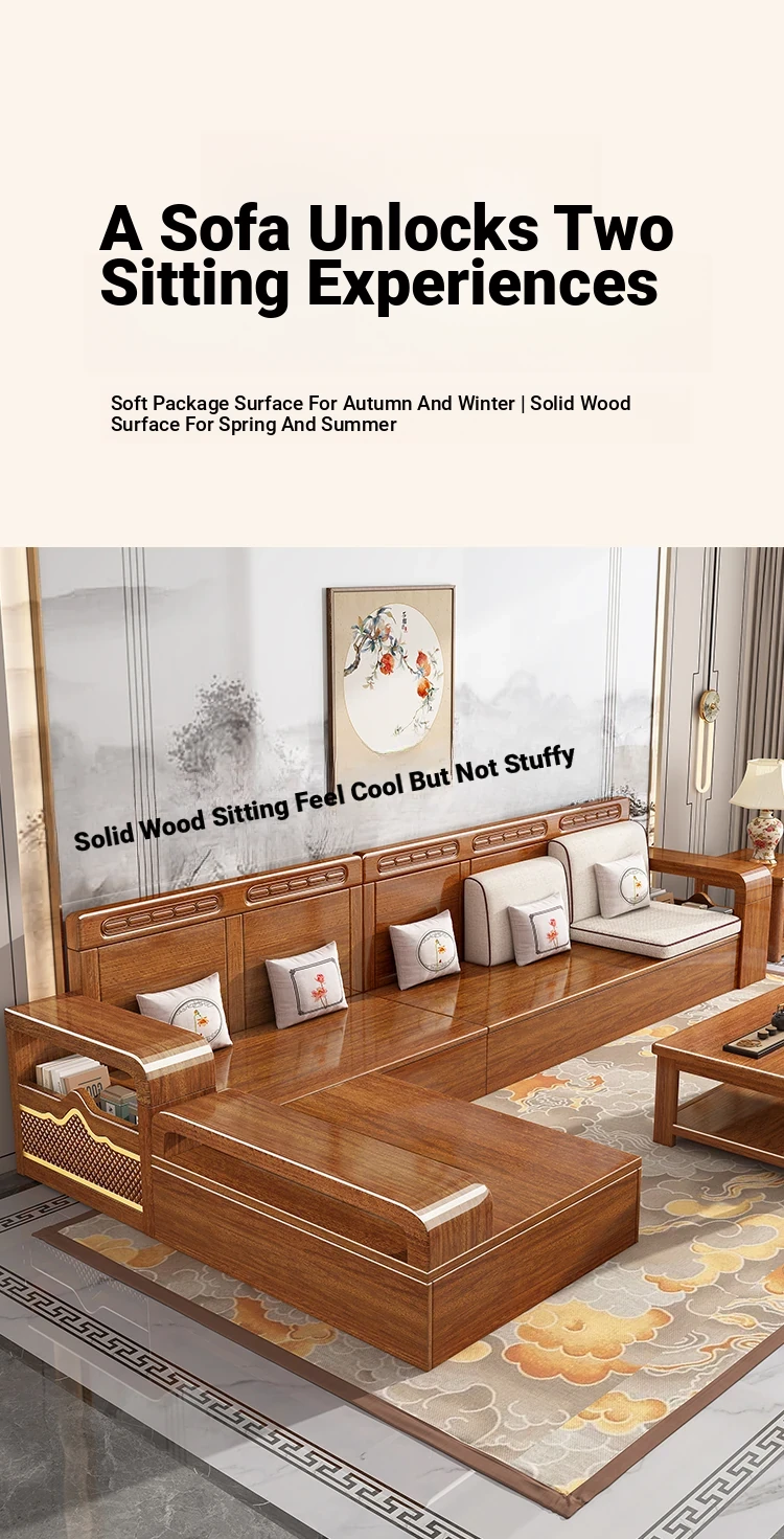 Modern Minimalist Solid Wood Sofa for Small Spaces – Three-Seater Walnut Wood Couch with Straight-Line Design, Perfect for Living Rooms and Compact Areas.