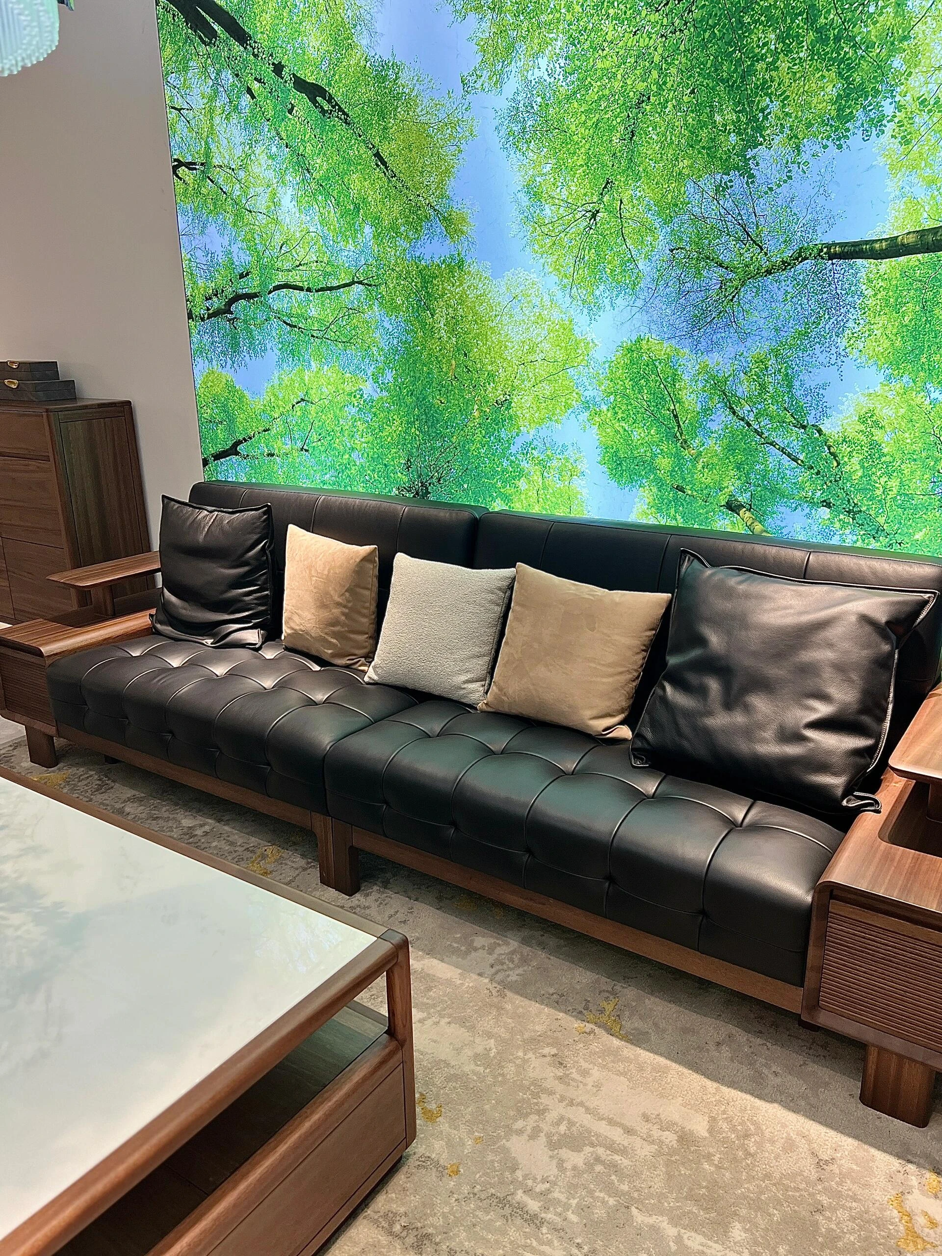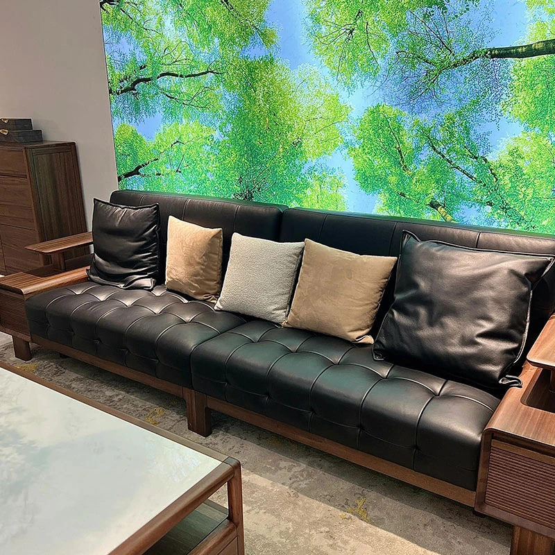 Modern Minimalist Solid Wood Sofa in New Chinese Style - Song Aesthetics, Elegant and Simple Design for Luxury Villas and Homes, Perfect for Living Rooms