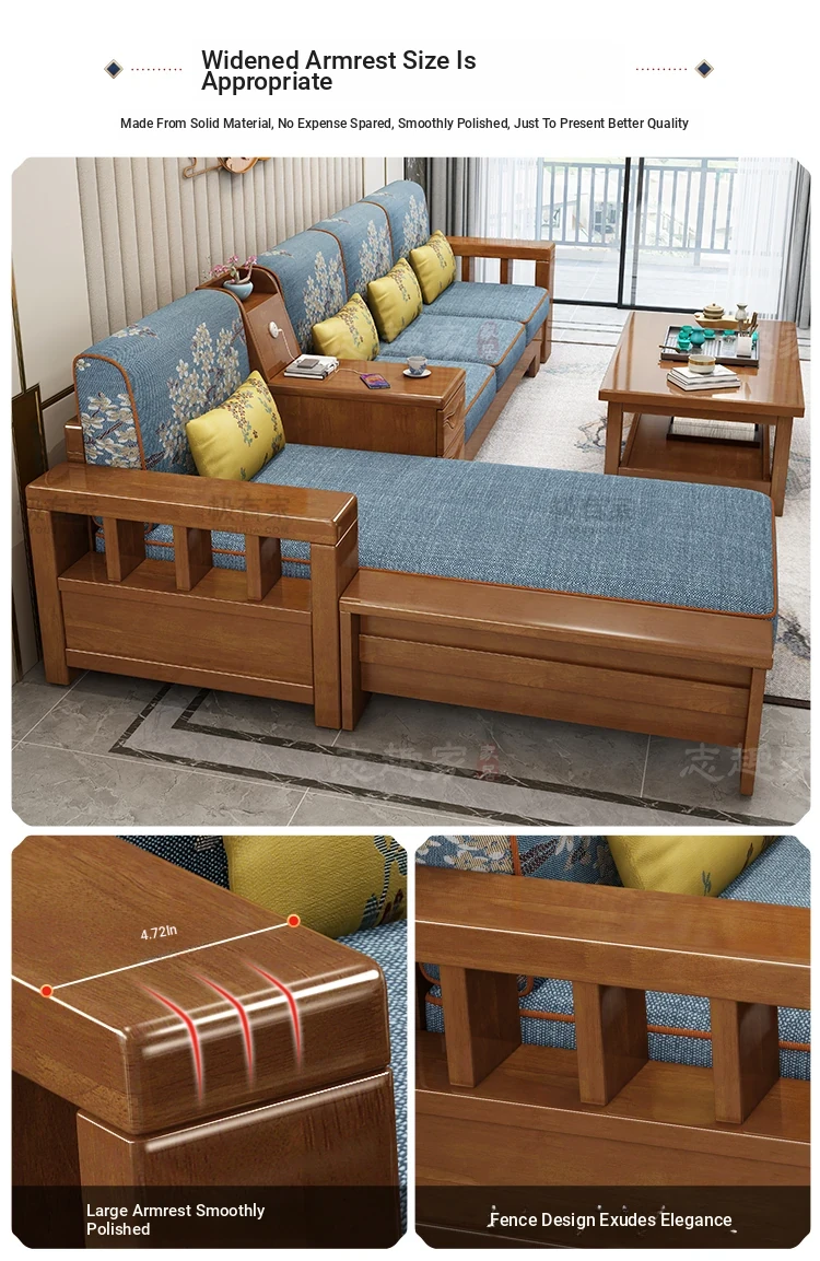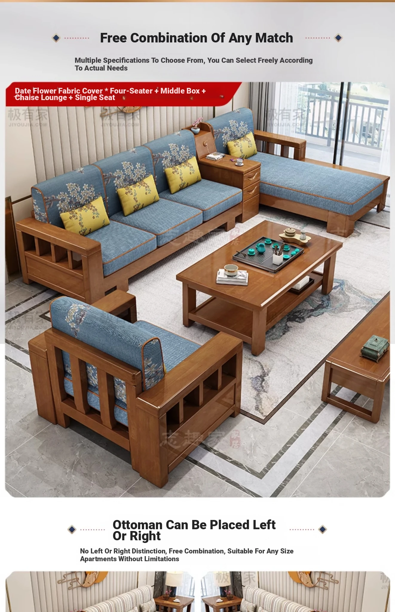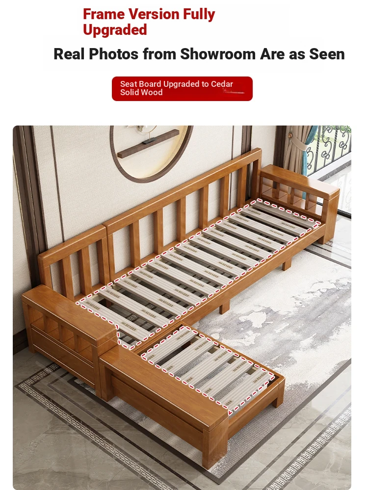 Modern Minimalist Solid Wood Sofa Set – New Chinese Style Living Room Furniture for Small Spaces, Featuring Natural Wood Daybed and Versatile Combinations. Perfect for Your Cozy Home!