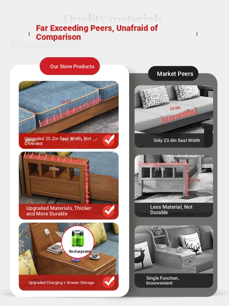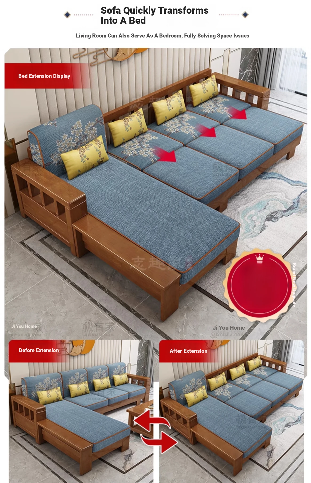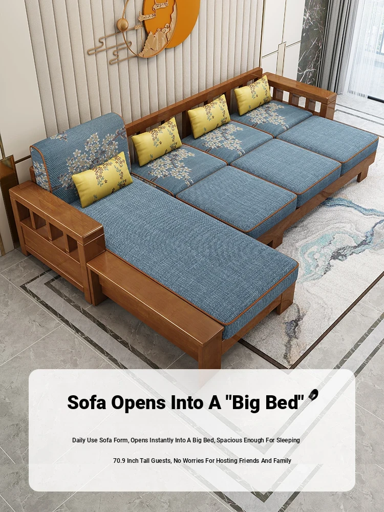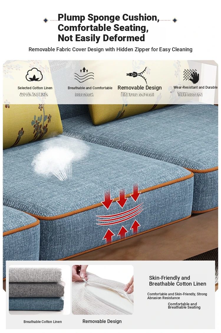 Modern Minimalist Solid Wood Sofa Set – New Chinese Style Living Room Furniture for Small Spaces, Featuring Natural Wood Daybed and Versatile Combinations. Perfect for Your Cozy Home!