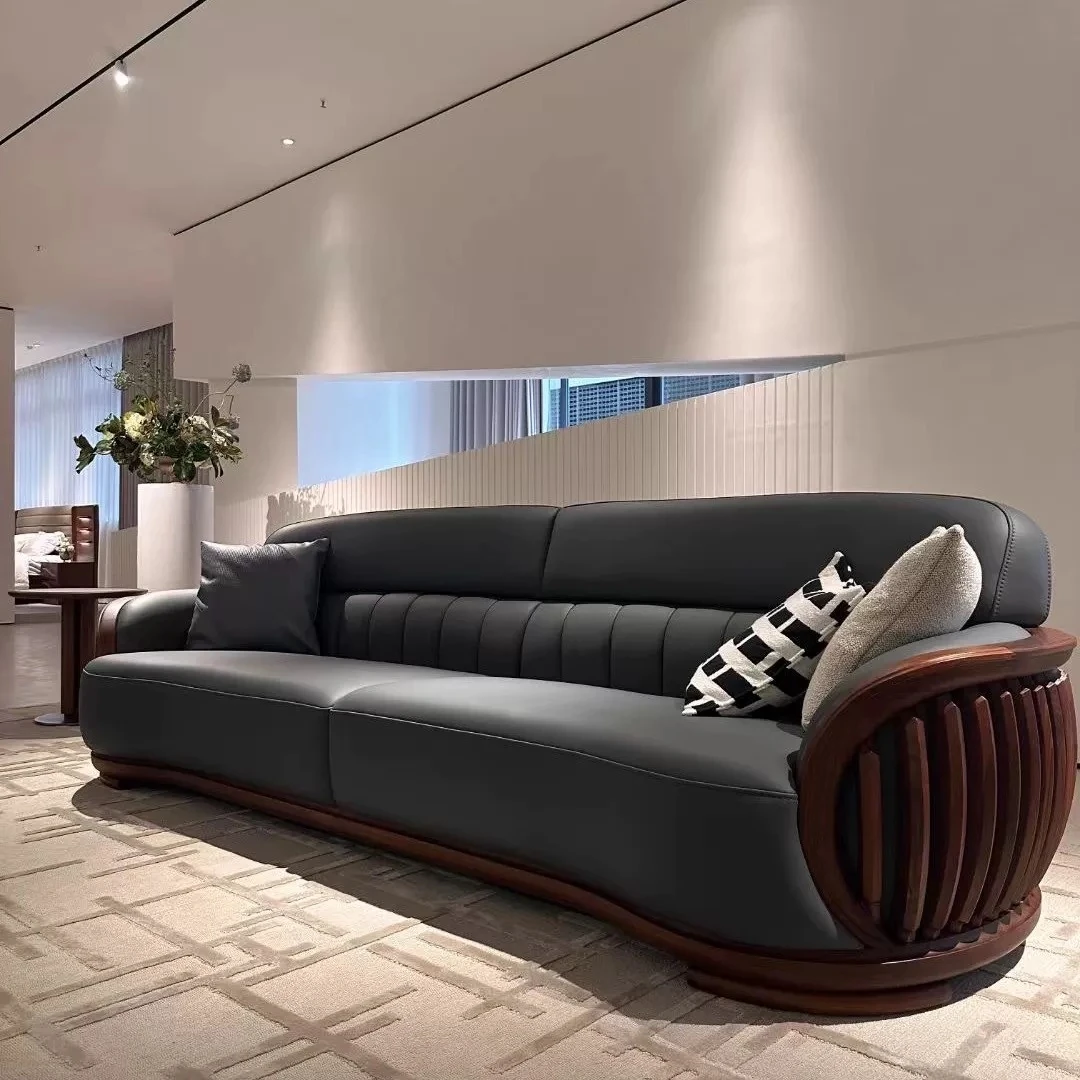 Modern Minimalist Solid Wood Sofa Set - Elegant New Chinese Style for Luxurious Villas and Homes, Perfect for Sophisticated Living Rooms