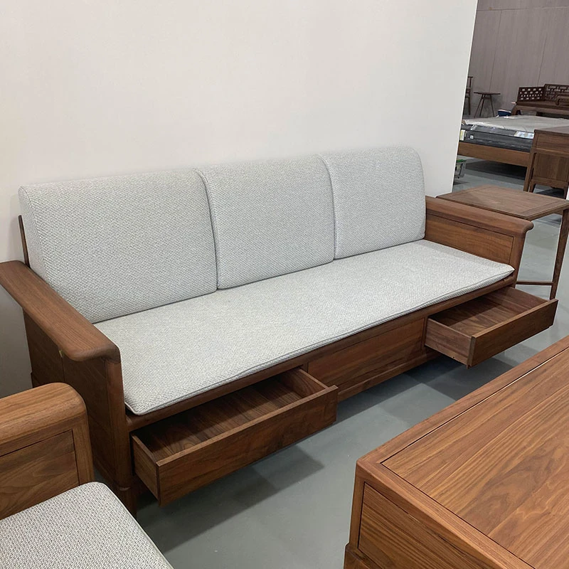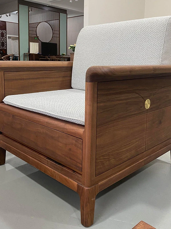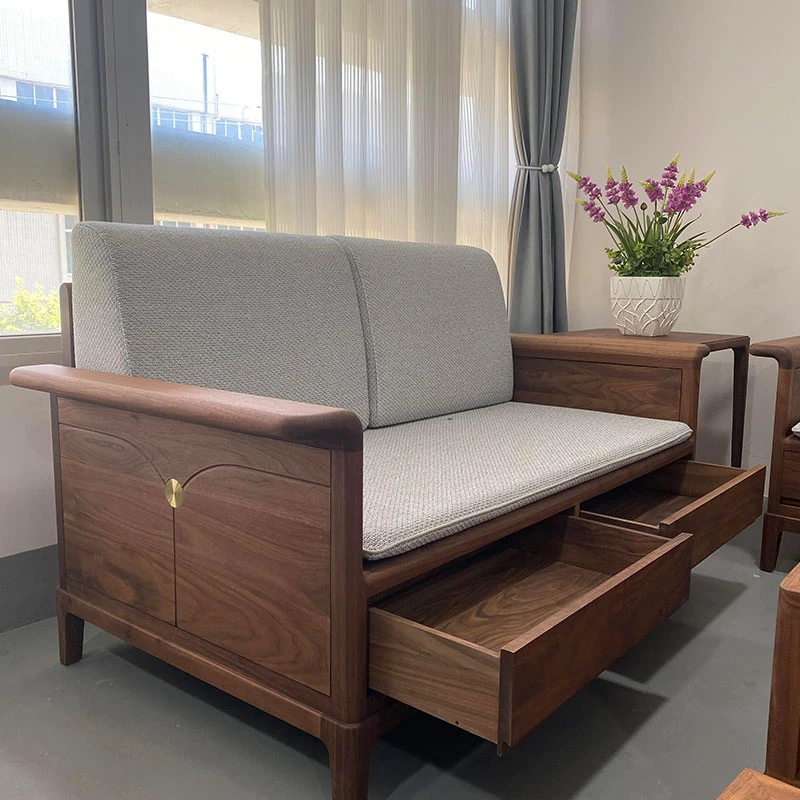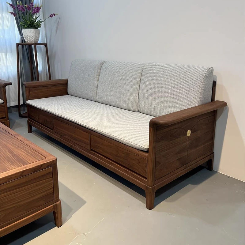 Modern Minimalist Solid Wood Sofa Set in New Chinese Style - Contemporary Luxe Living Room Furniture in North American Black Walnut Finish