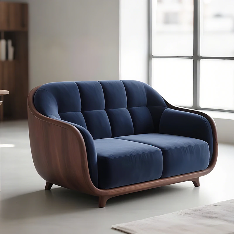 Modern New Chinese Walnut Wood Sofa Chair - Minimalist Light Luxury Solid Wood Leisure Chair for Living Room - Italian Style Elegant Sofa