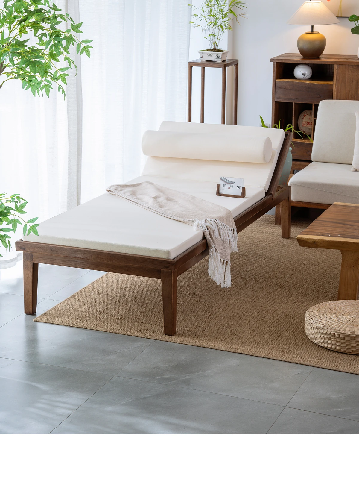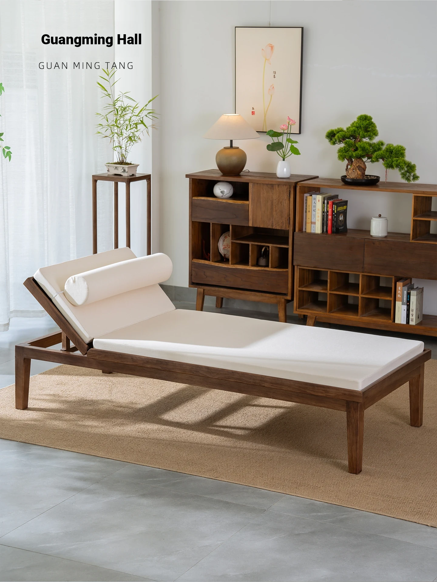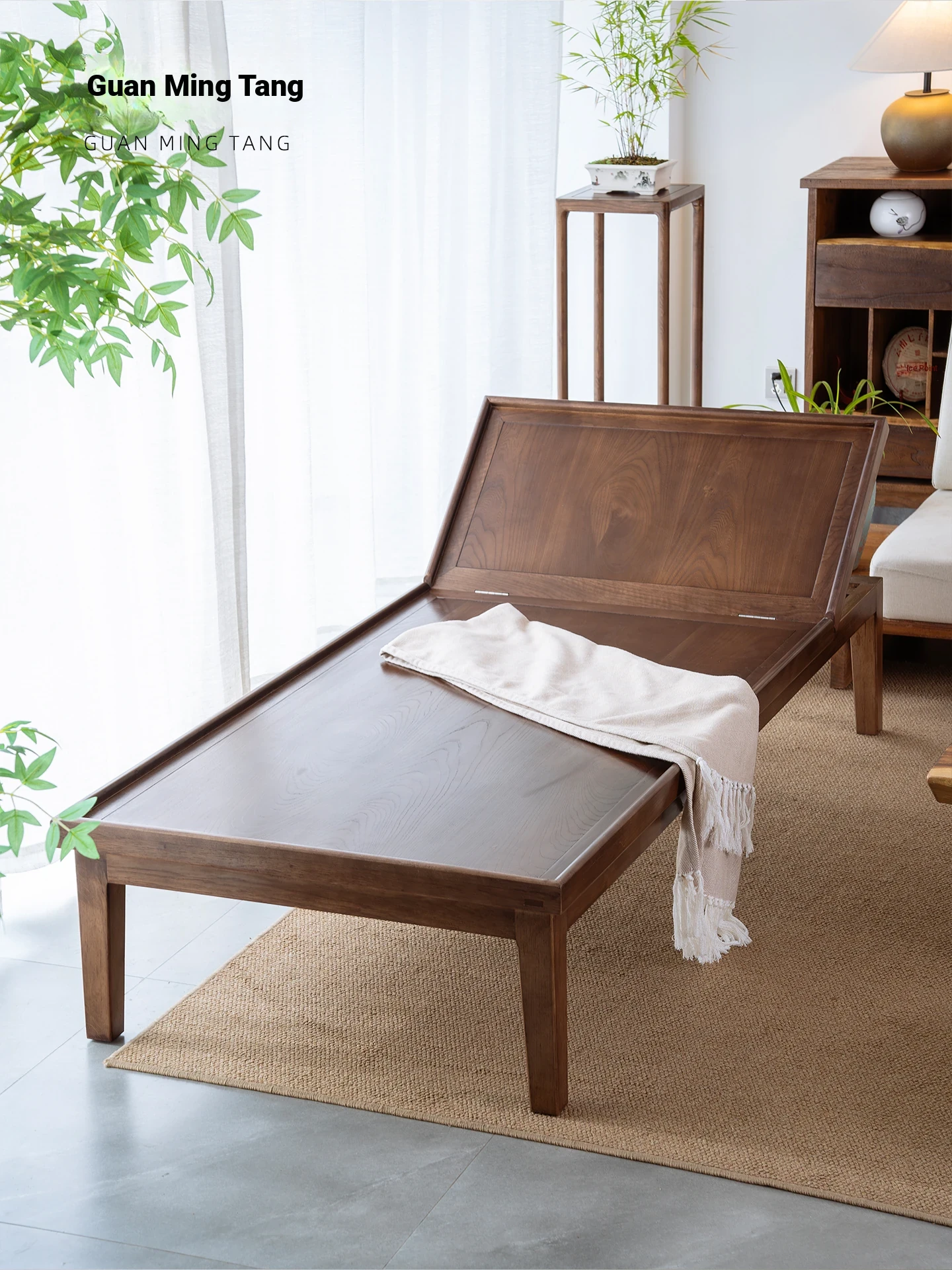 Multi-functional Solid Wood Sofa Bed - Foldable Chinese Style Chaise Lounge for Bedroom and Living Room, Perfect for Sitting or Lying Down, Single Seat Convertible Daybed.