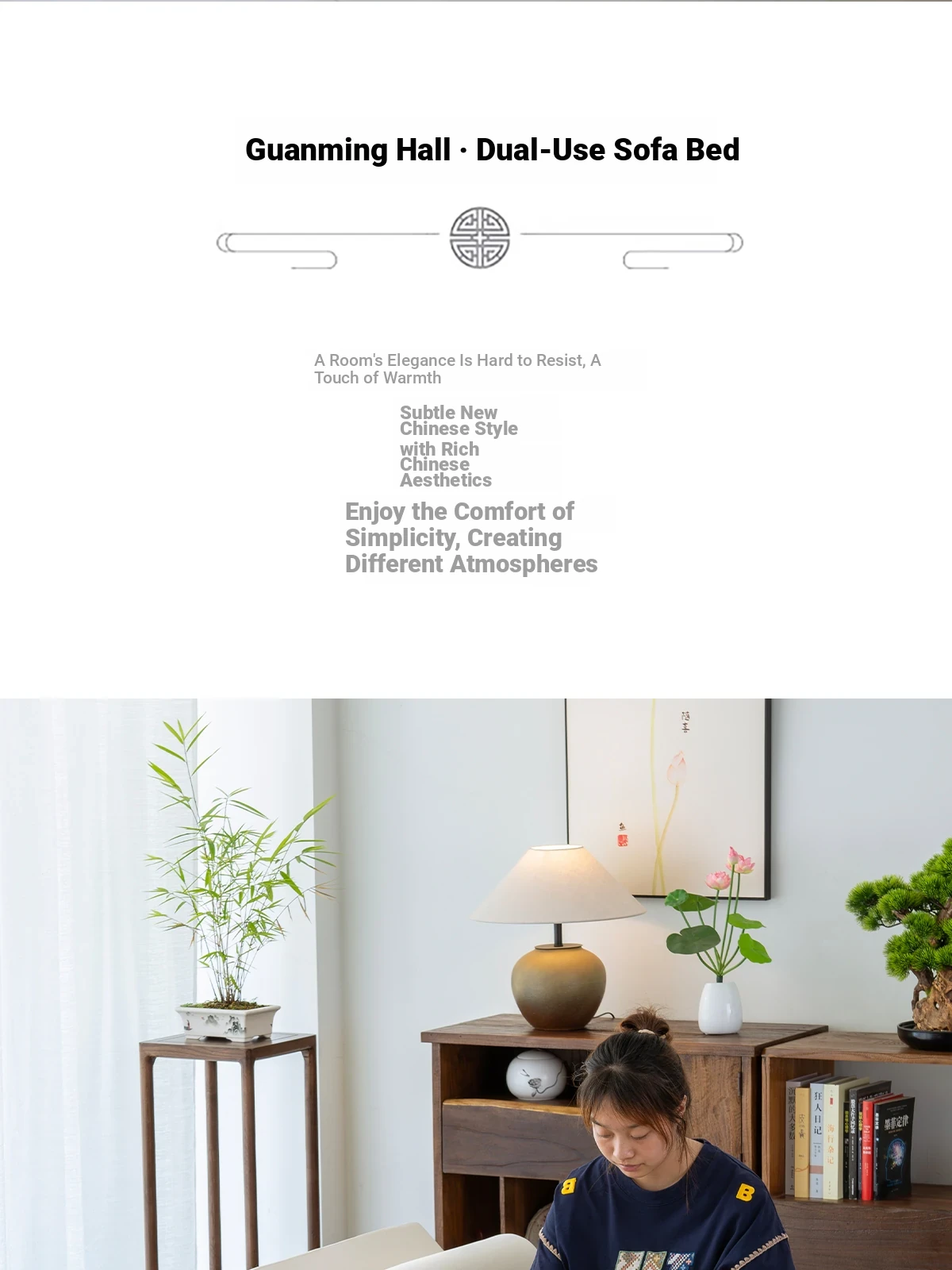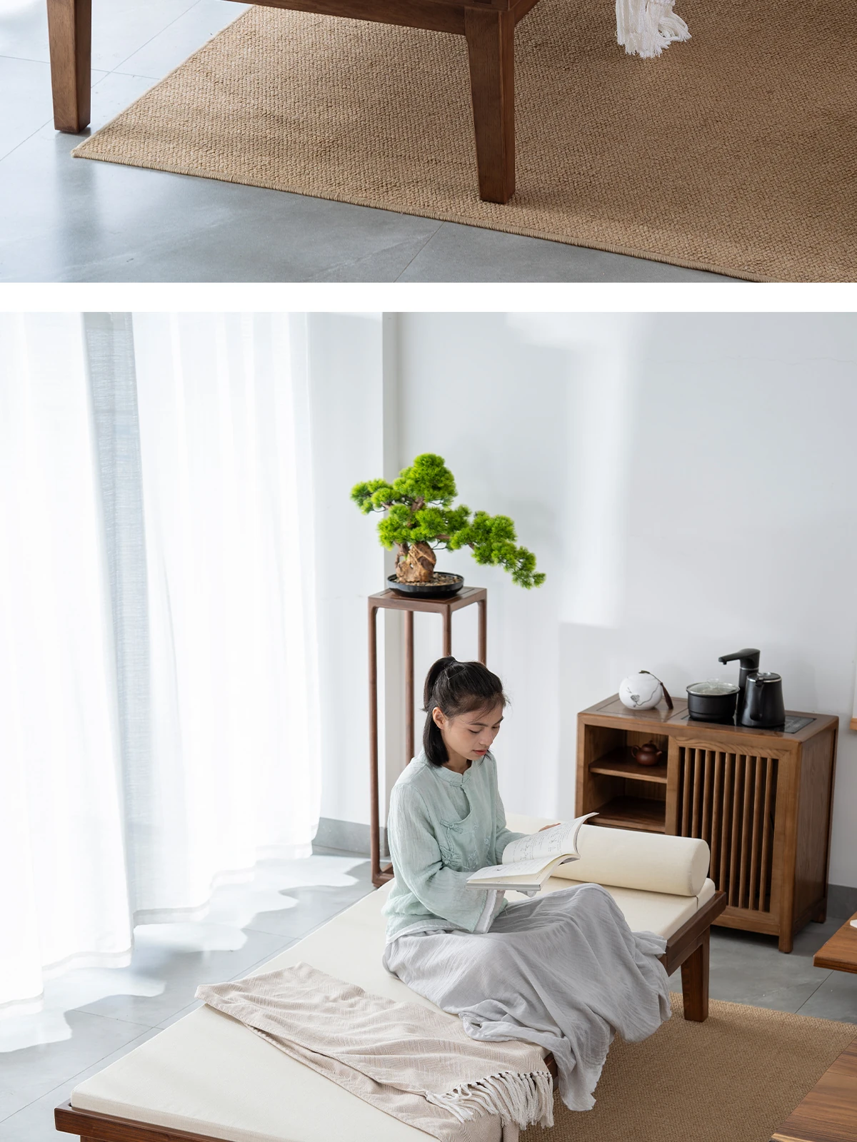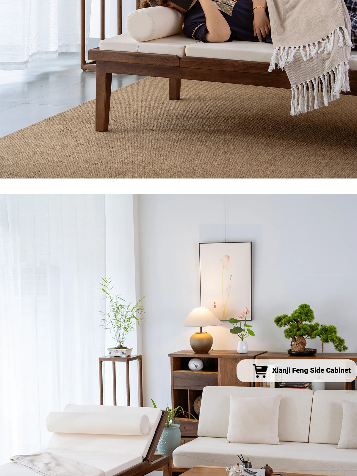 Multi-functional Solid Wood Sofa Bed - Foldable Chinese Style Chaise Lounge for Bedroom and Living Room, Perfect for Sitting or Lying Down, Single Seat Convertible Daybed.